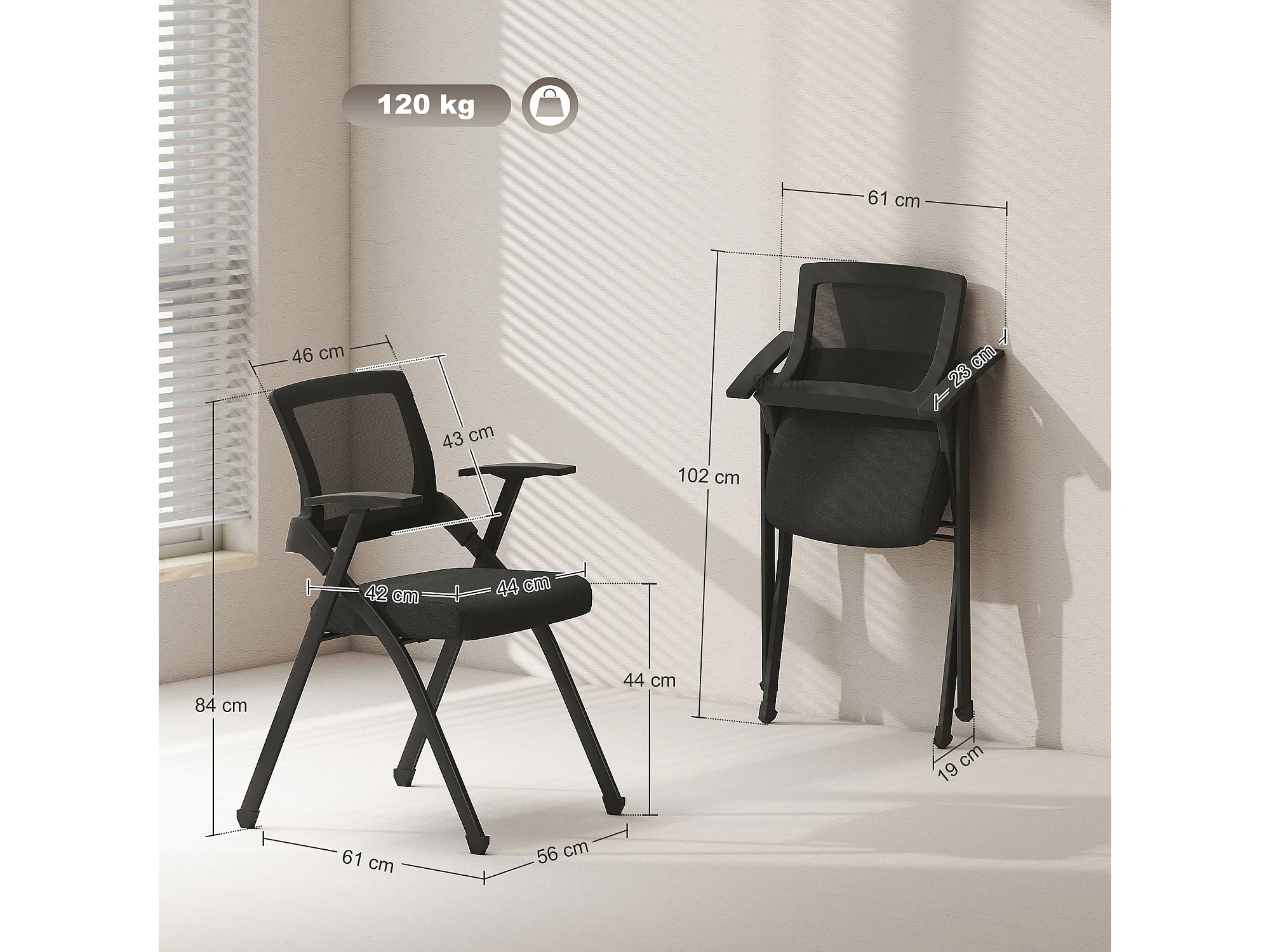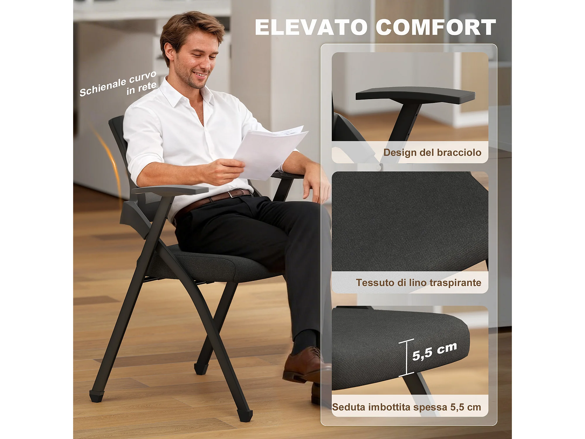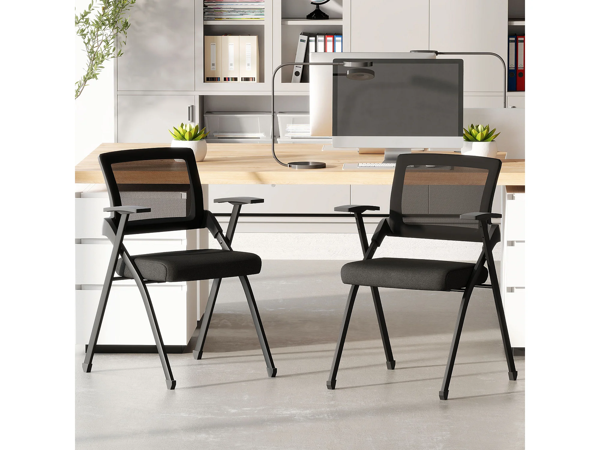 Set 2 sedie pieghevoli con schienale curvo e braccioli nero