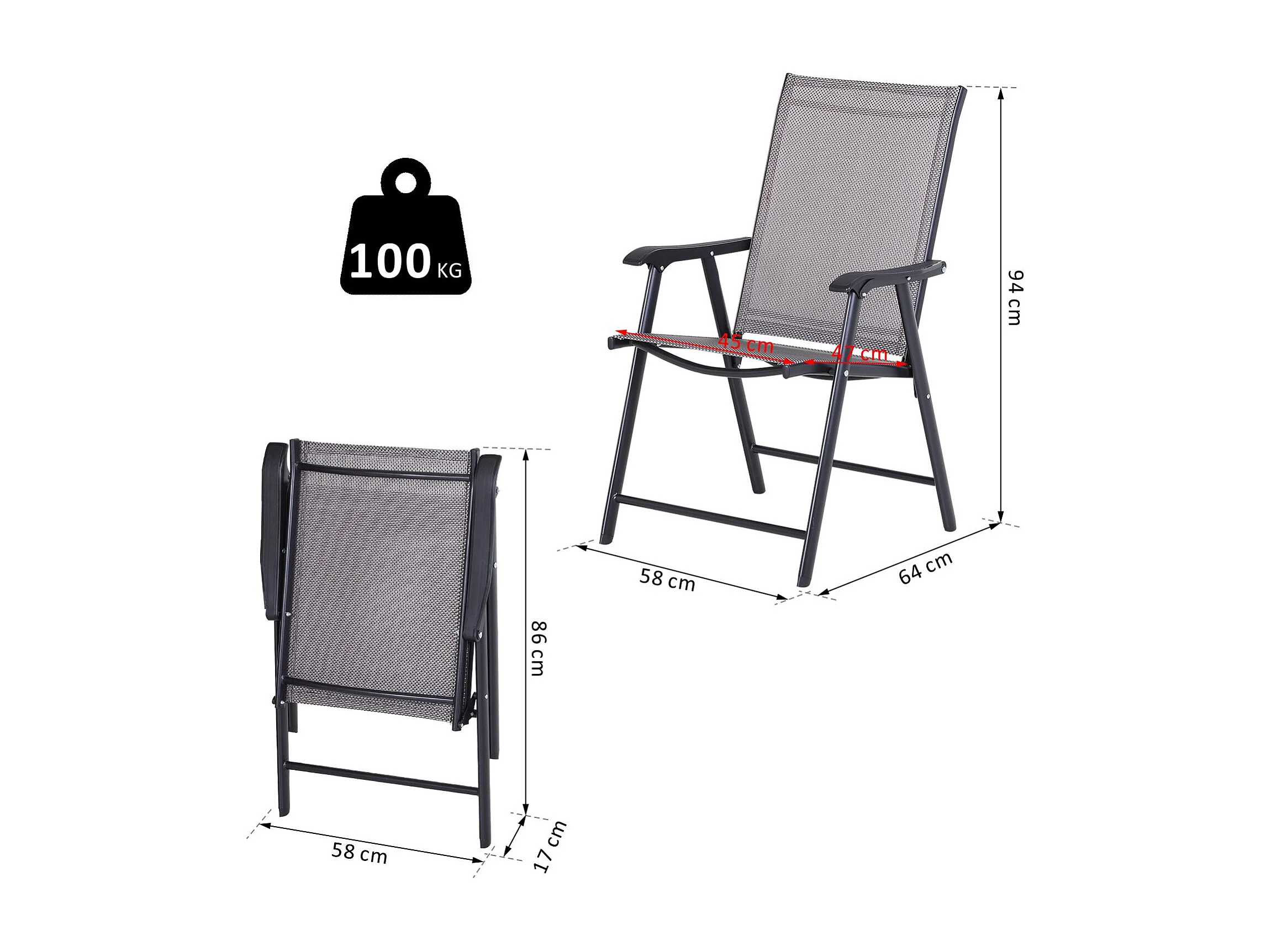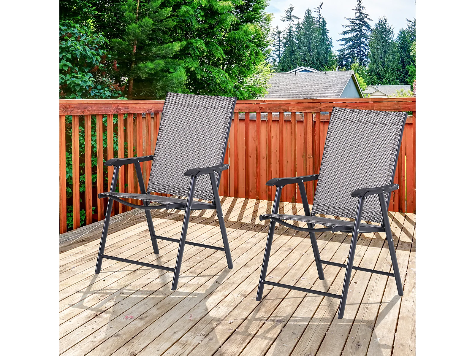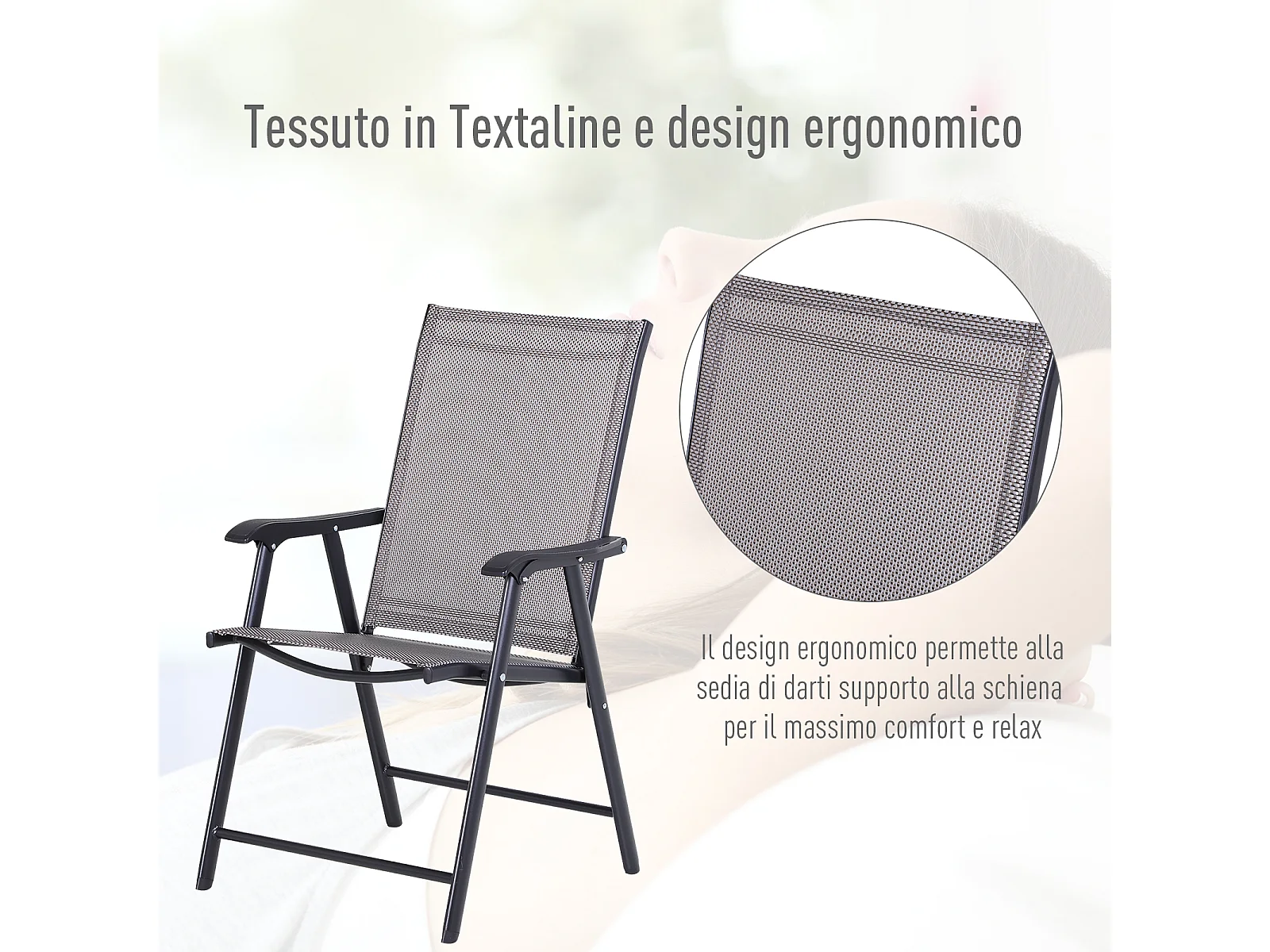 Set 2 Sedie Pieghevoli da Giardino con Braccioli in Metallo e Texteline per Esterno Interno