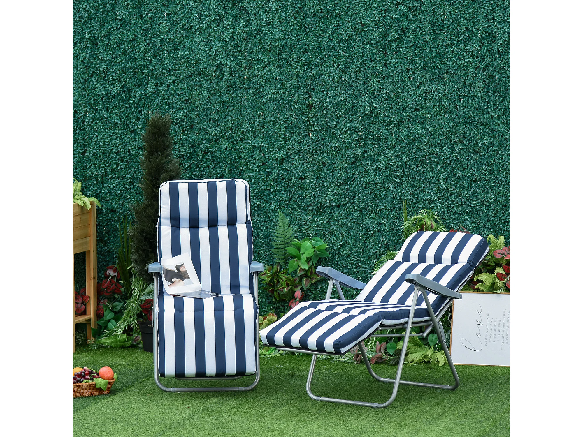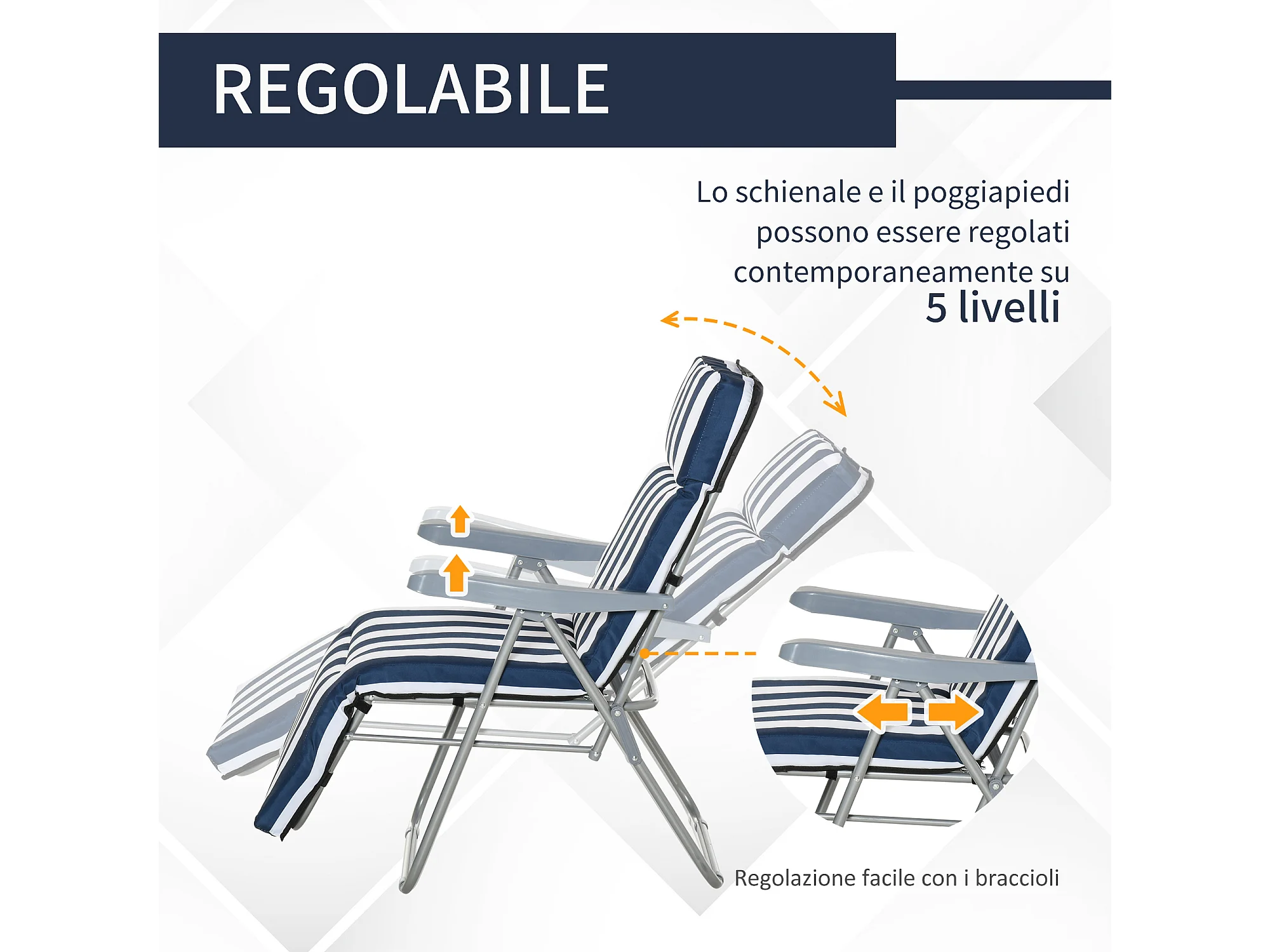 Set 2 sedie sdraio pieghevoli imbottite con braccioli blu e bianco
