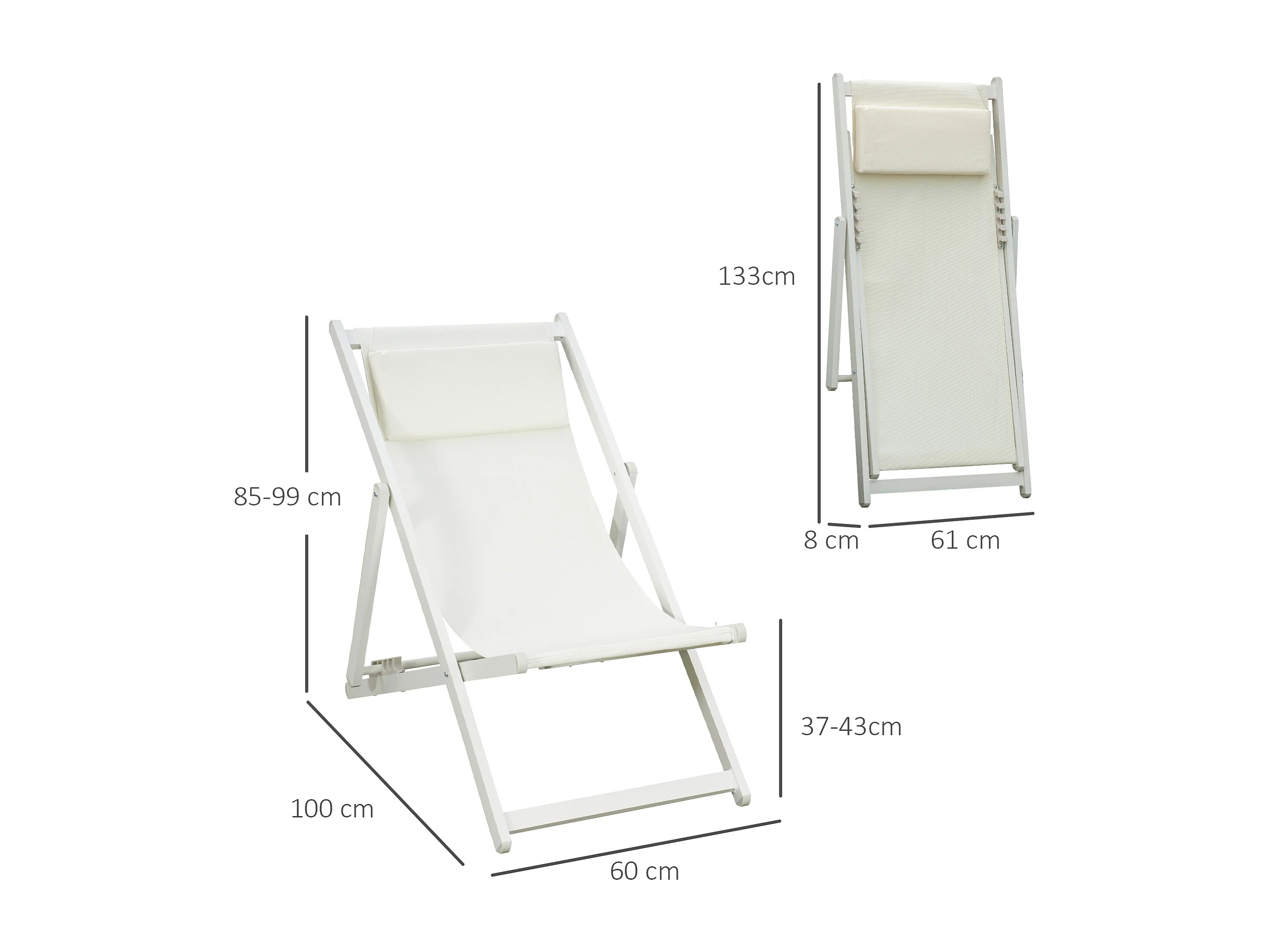 Set 2 sedie sdraio pieghevoli in alluminio 100x60x85 cm