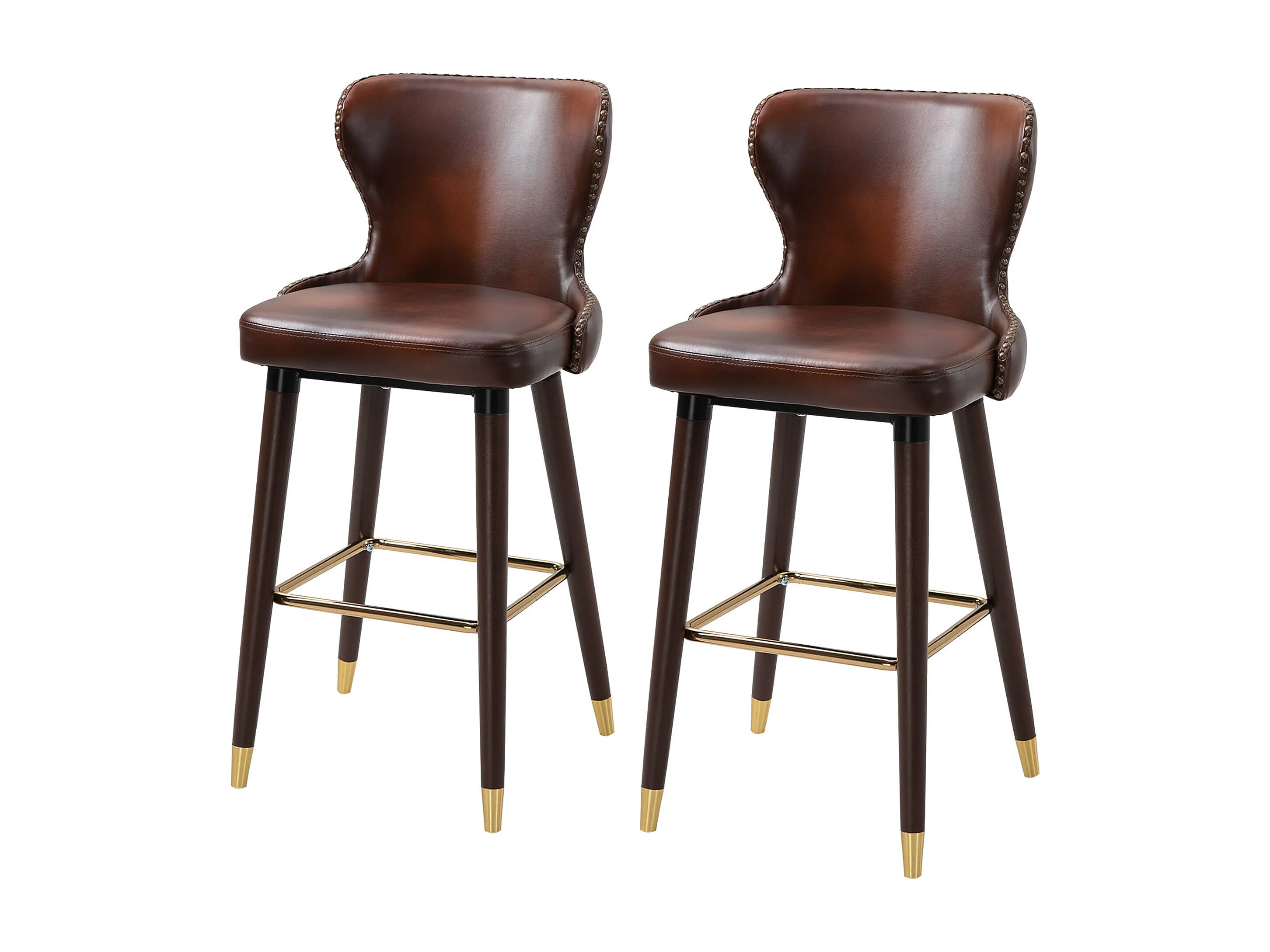 Set di 2 sgabelli da bar, elegante sedia da bistrot con poggiapiedi e schienale, PU marrone