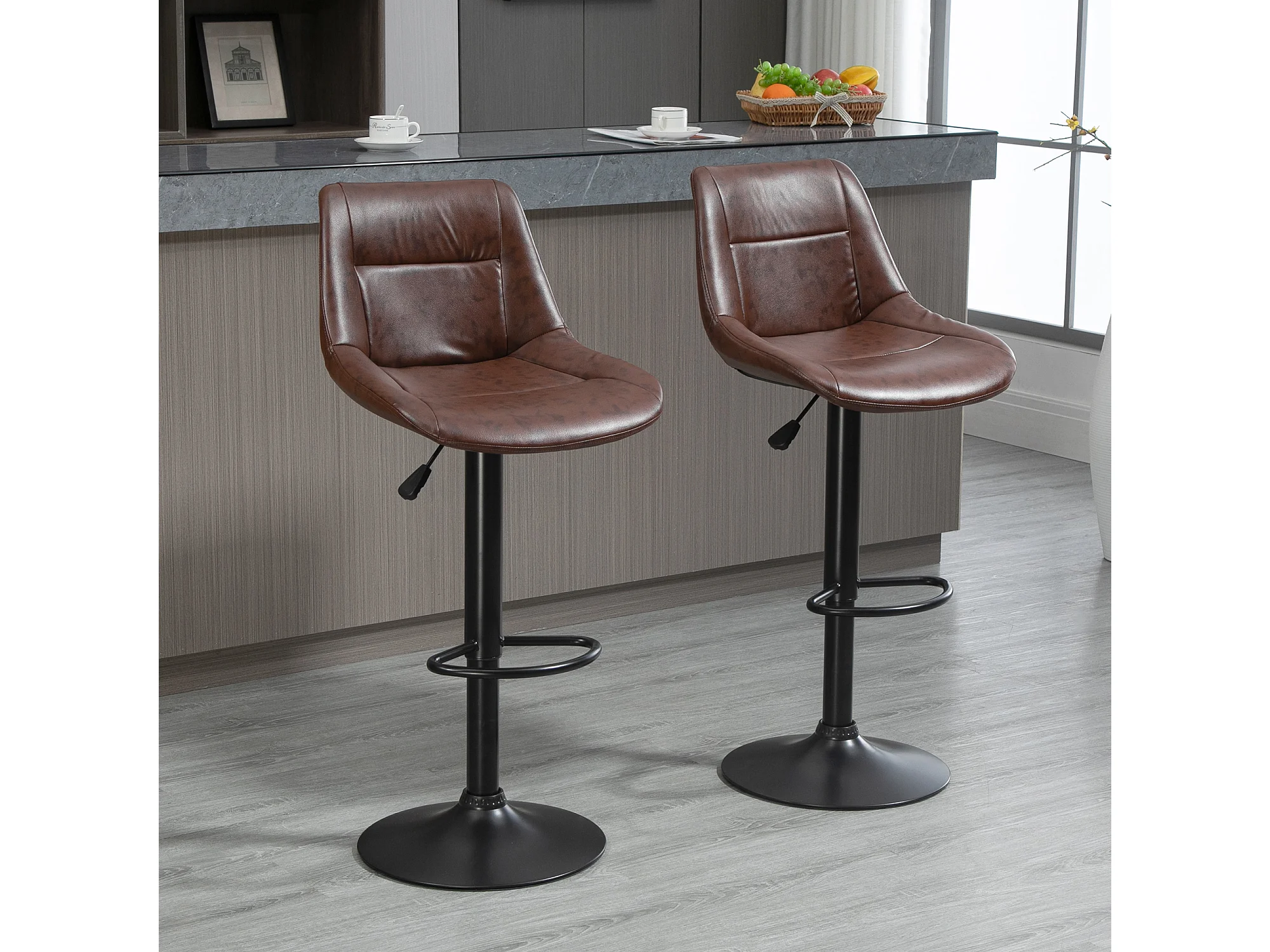 Set 2 sgabelli bar girevoli con altezza regolabile finta pelle marrone