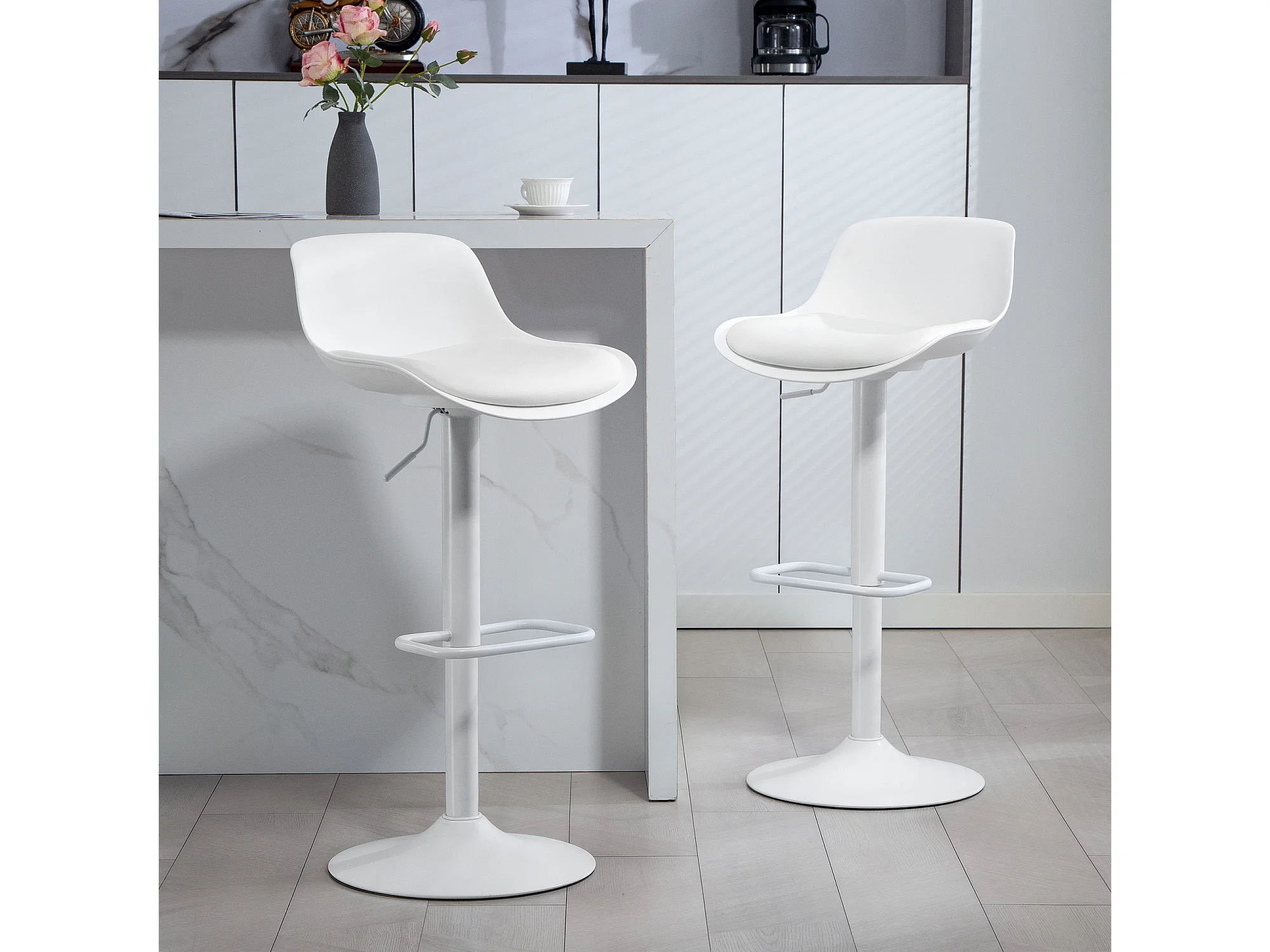 Set 2 sgabelli da bar con seduta ergonomica e poggiapiedi bianco
