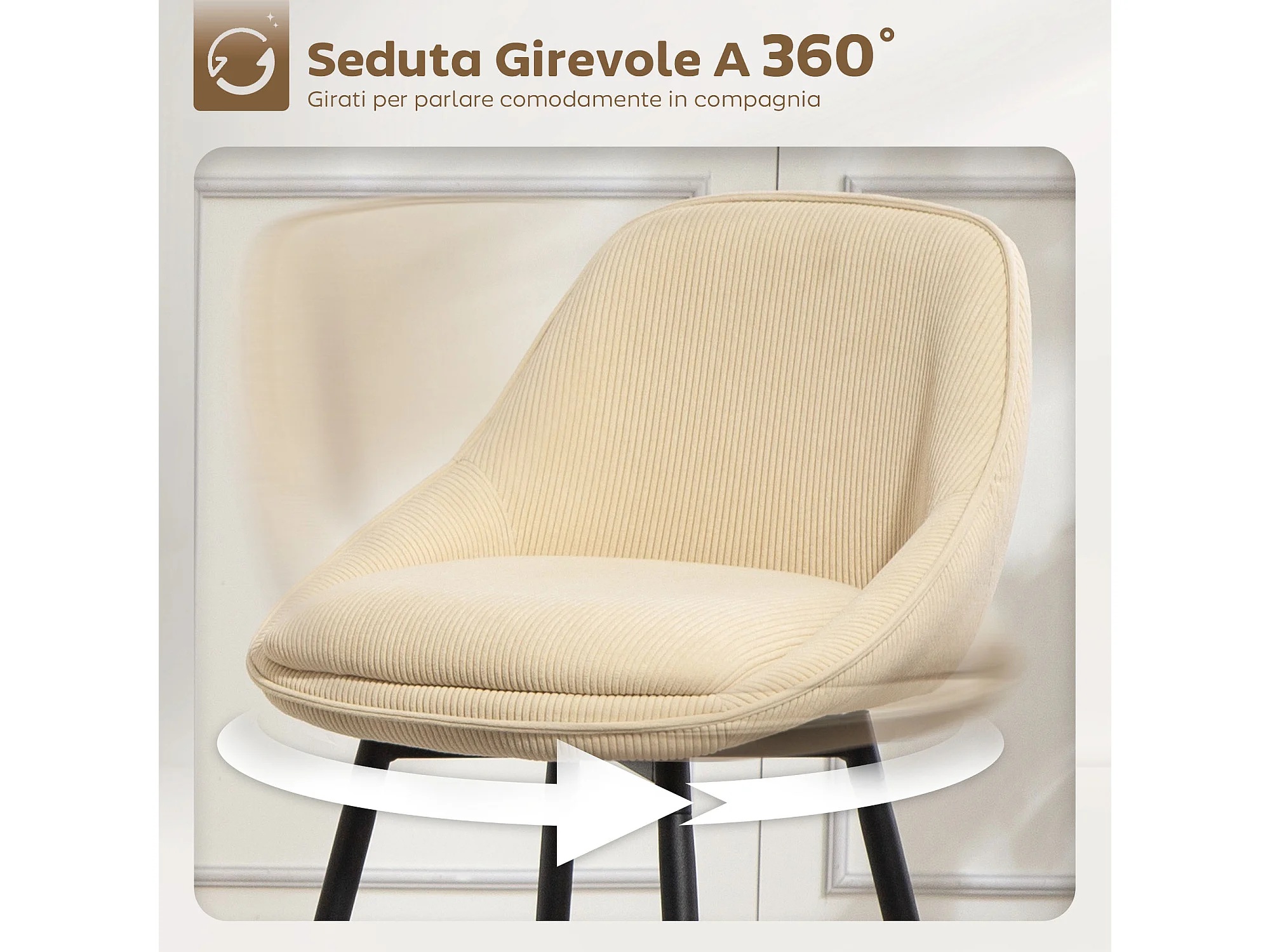 Set di 2 sgabelli da bar, regolabili in altezza e girevoli, imbottiti con schienale, effetto ciniglia, poggiapiedi, beige