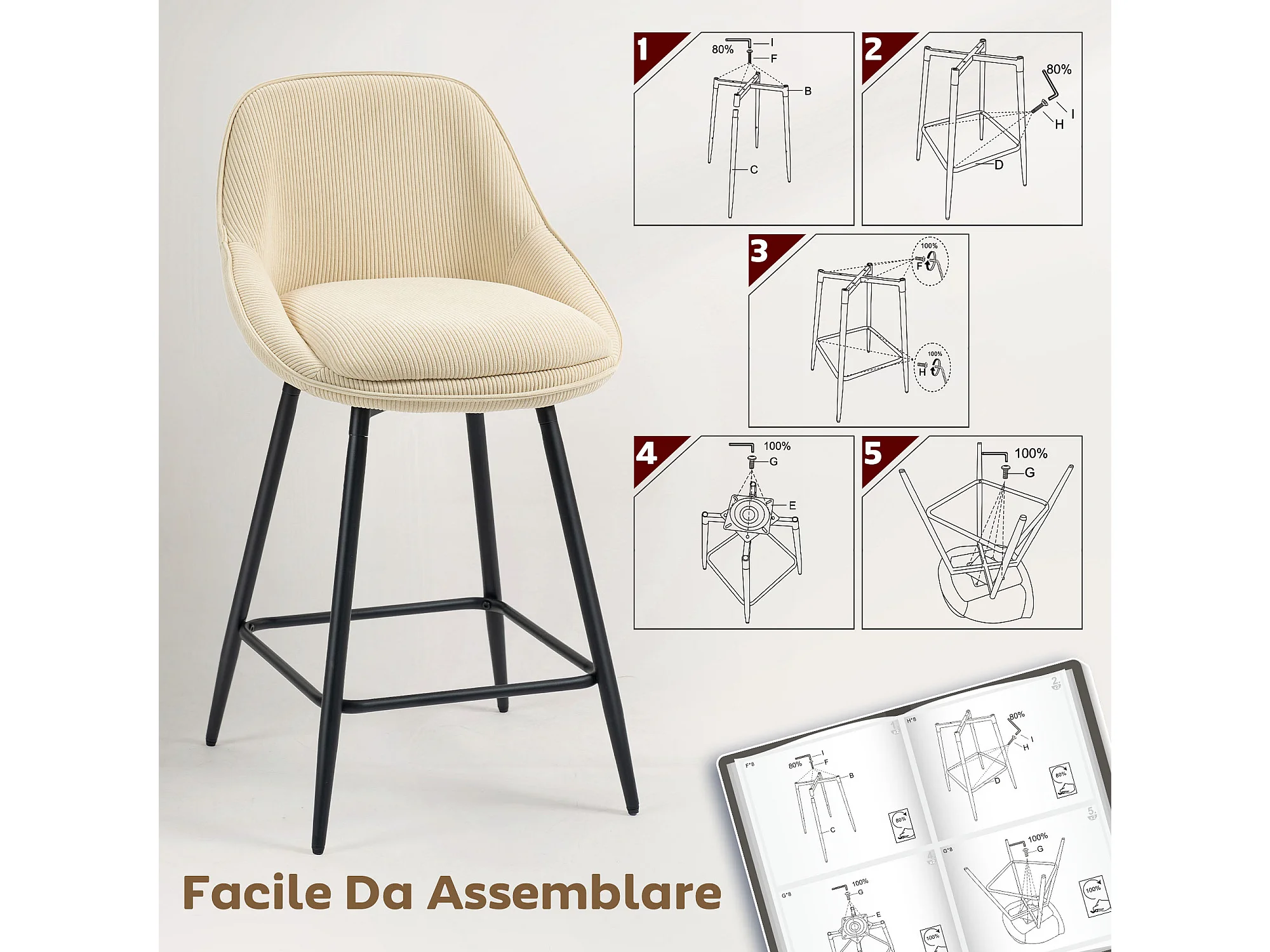 Set 2 sgabelli da bar in velluto con schienale e poggiapiedi