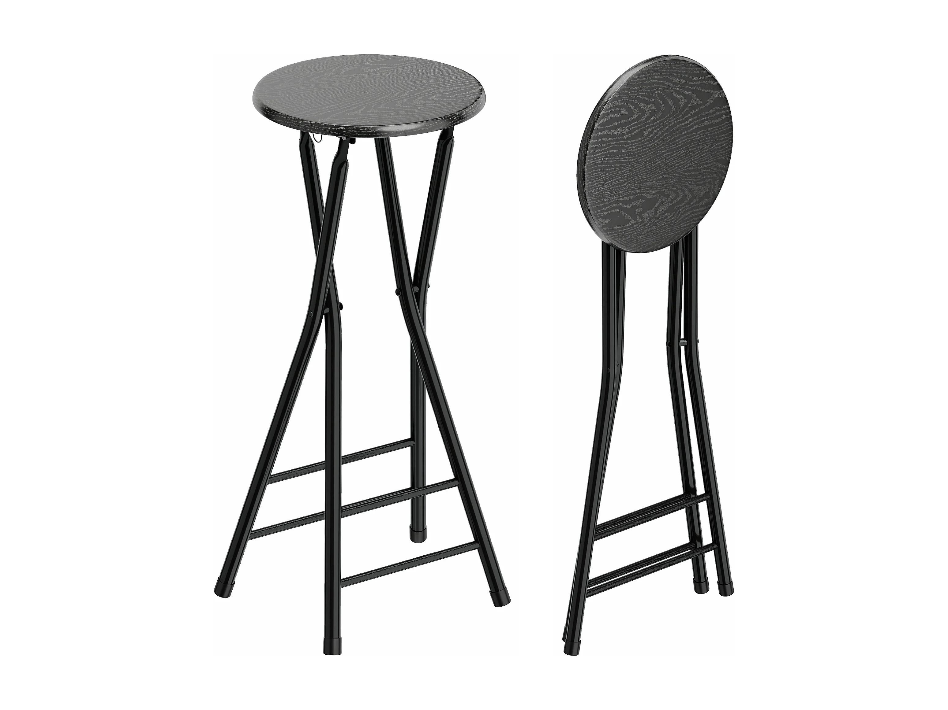 Set 2 sgabelli bar pieghevoli con doppio poggiapiedi 34x30x70 cm nero