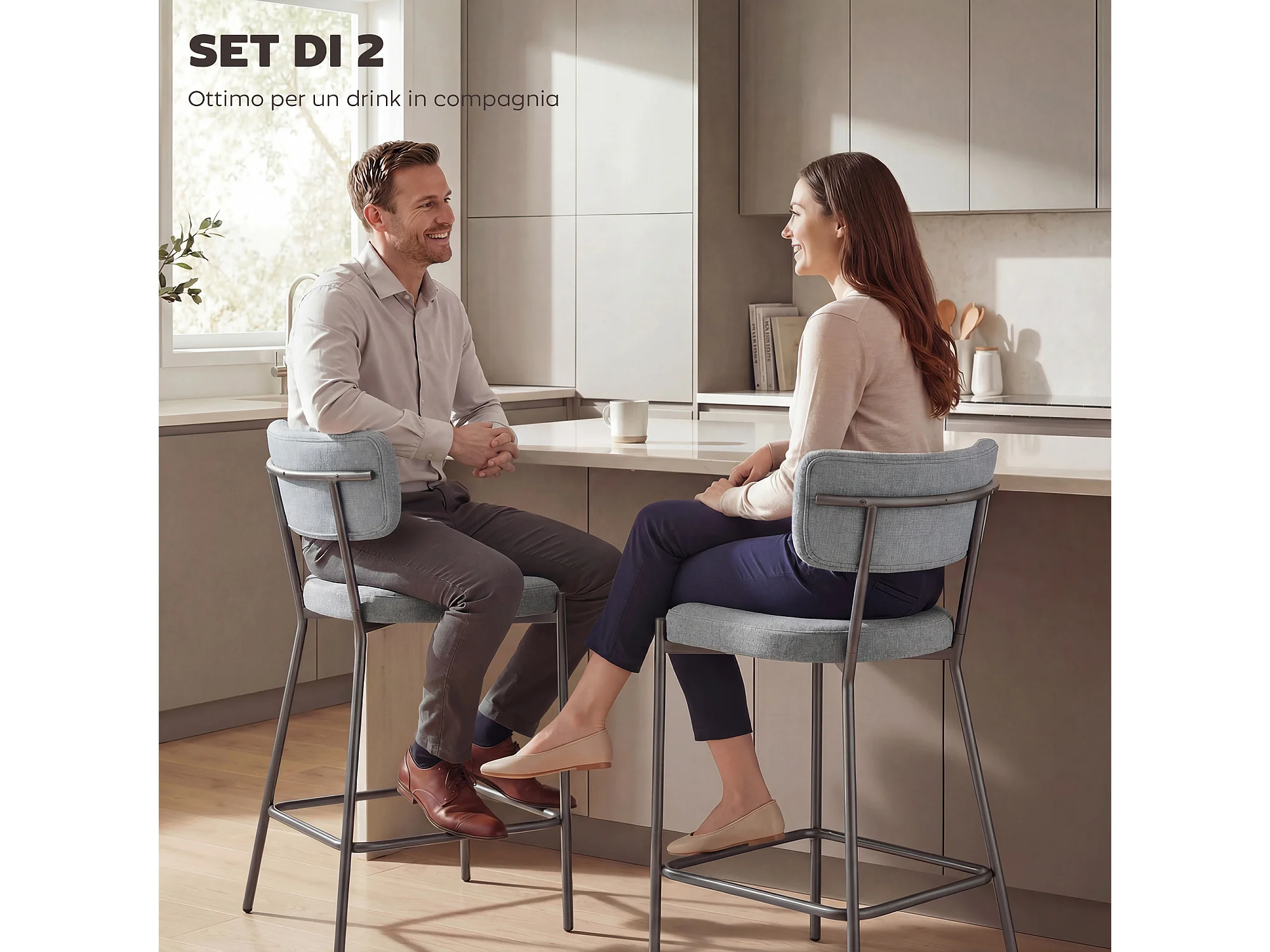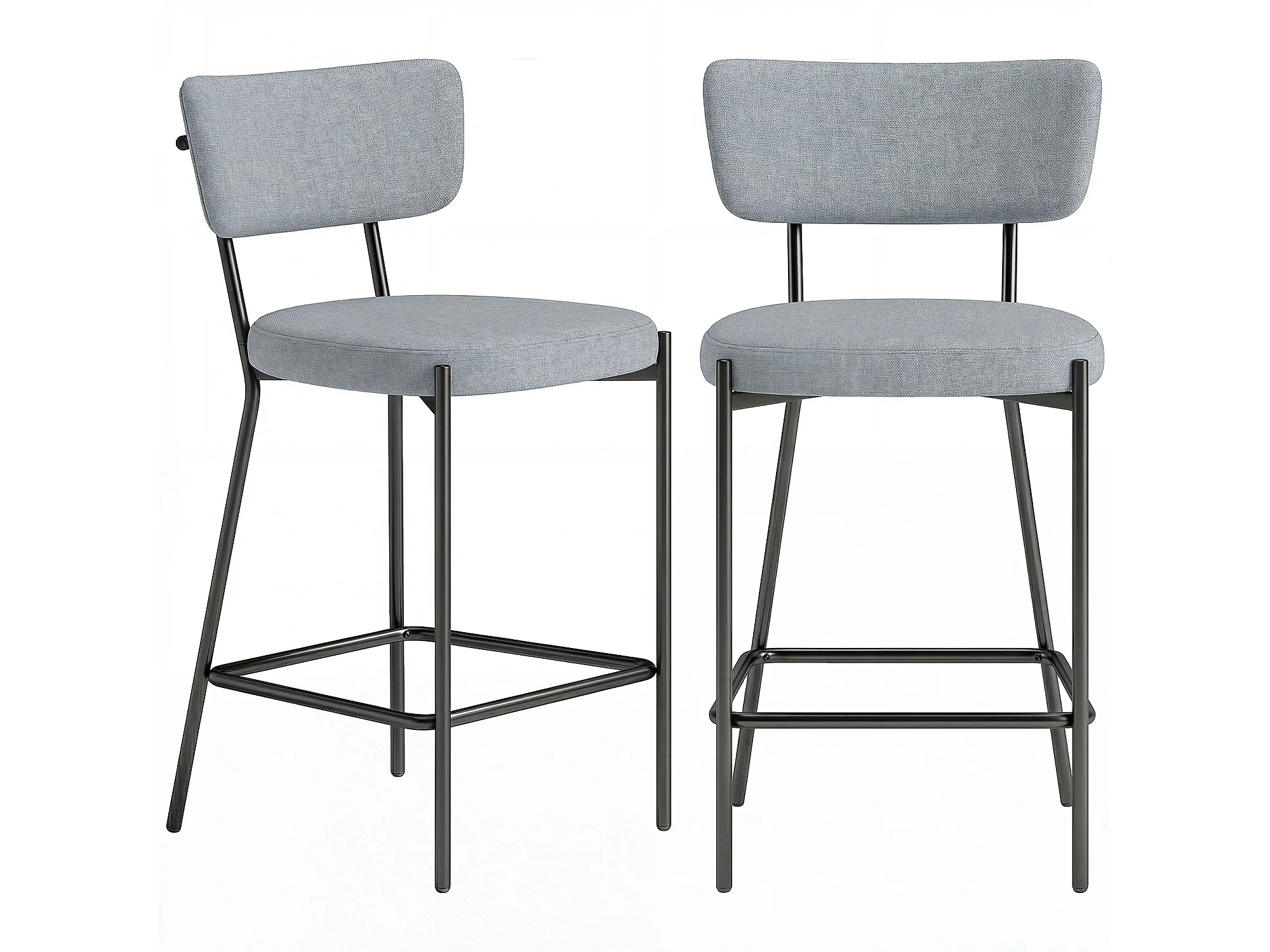 Set 2 sgabelli da bar con schienale e poggiapiedi in tessuto grigio
