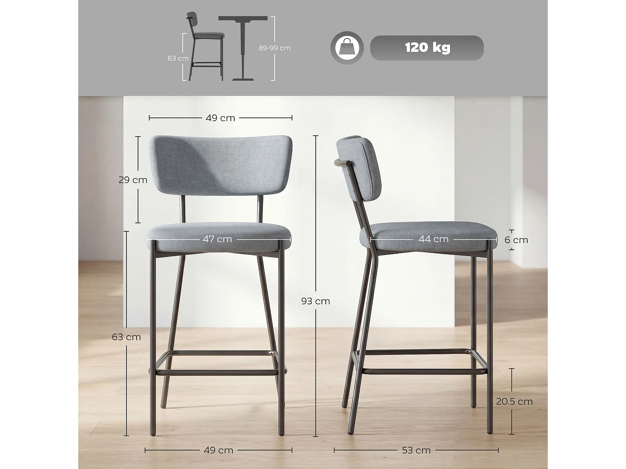 Sgabello da bar in tessuto grigio