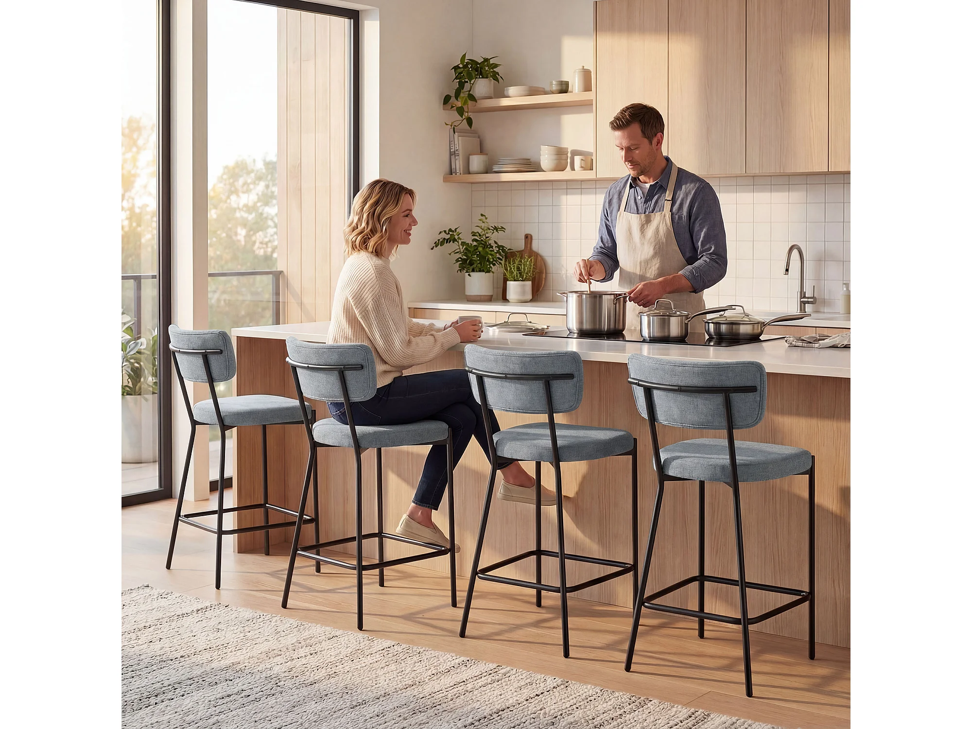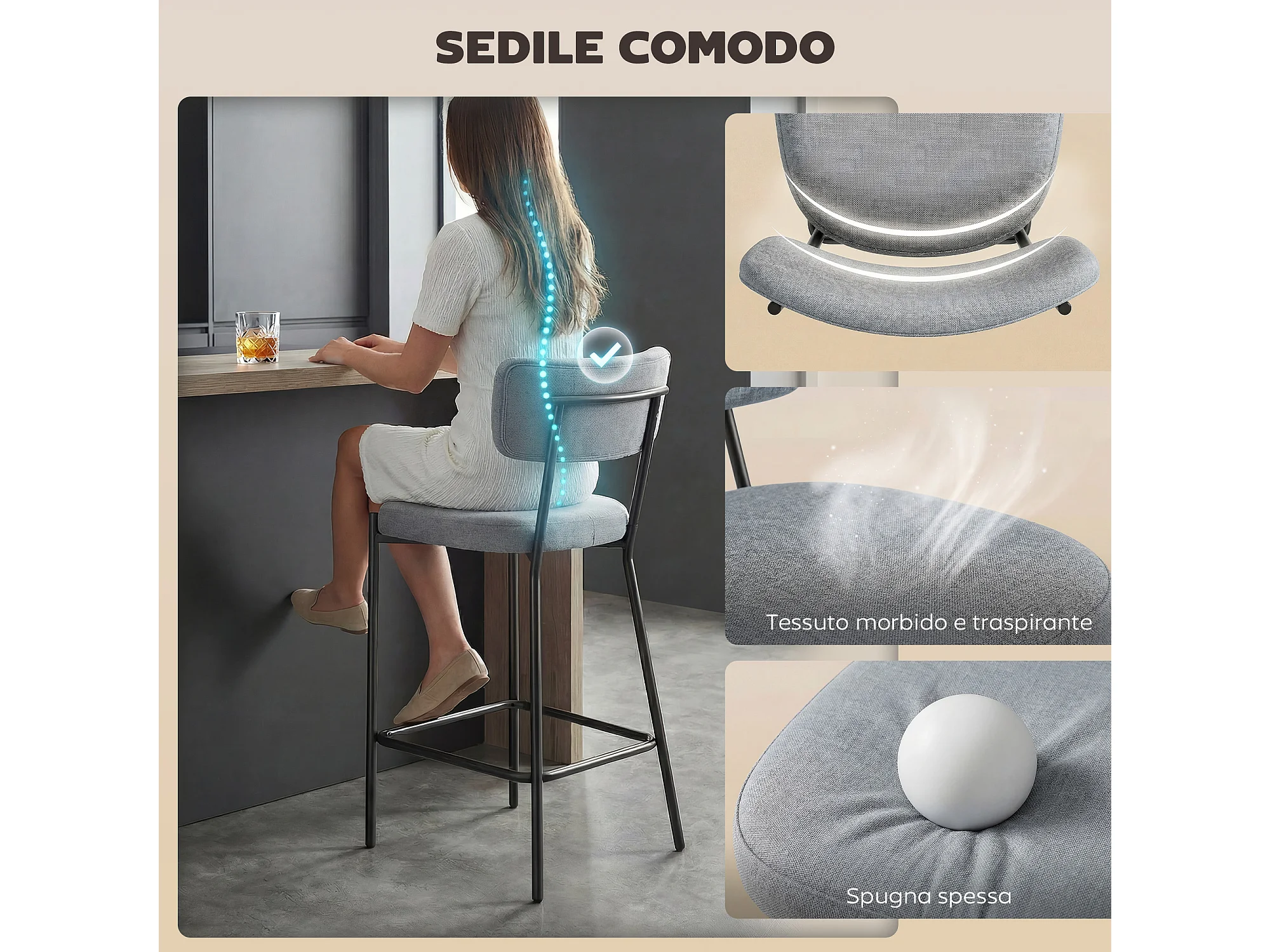Sgabello da bar in tessuto altezza regolabile