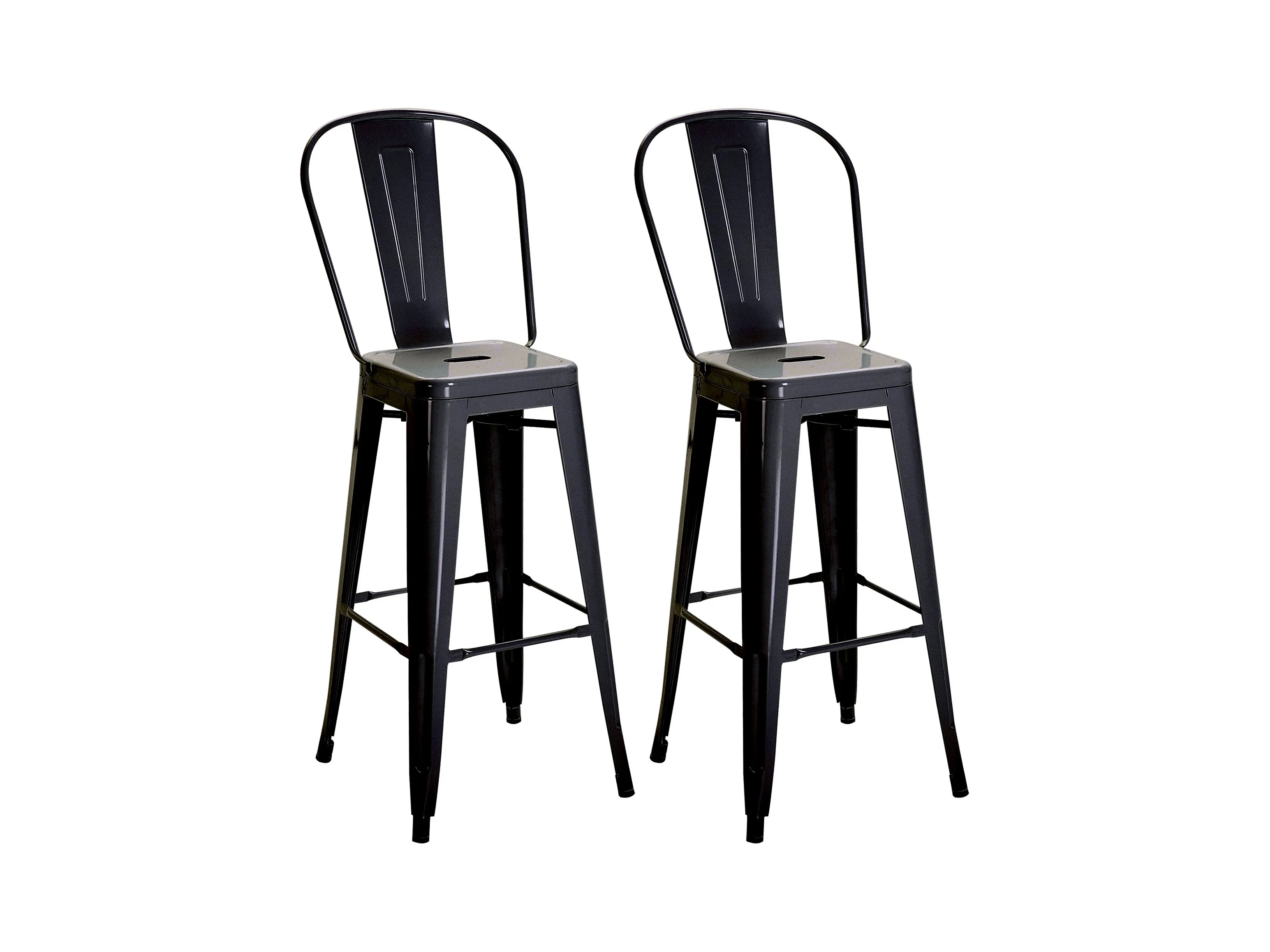 Set 2 sgabelli da bar con schienale rimovibile e poggiapiedi nero