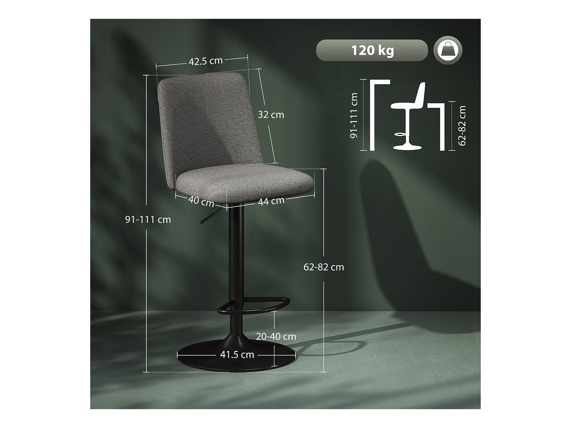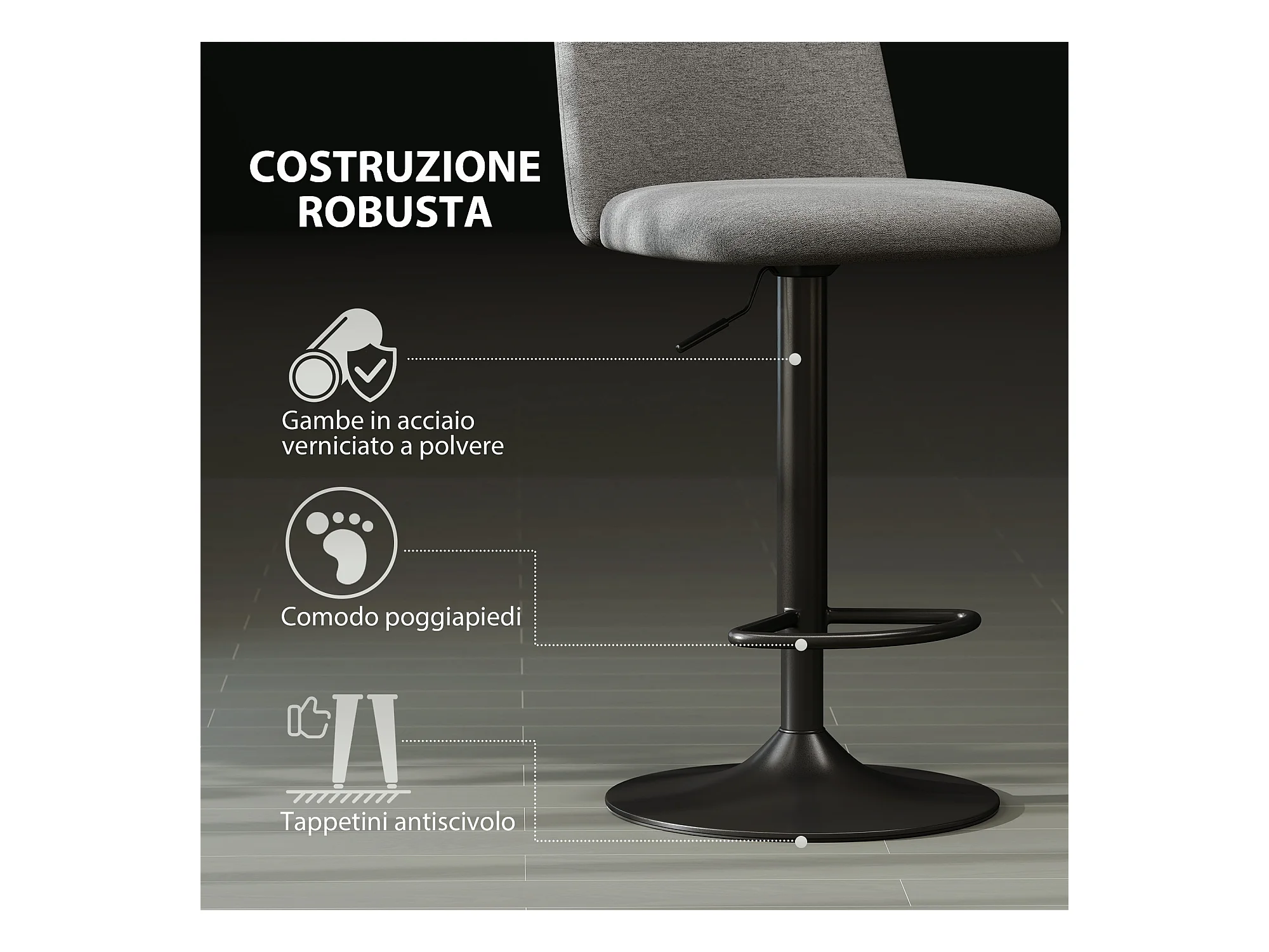 Set 2 sgabelli da bar girevoli ad altezza regolabile grigio scuro