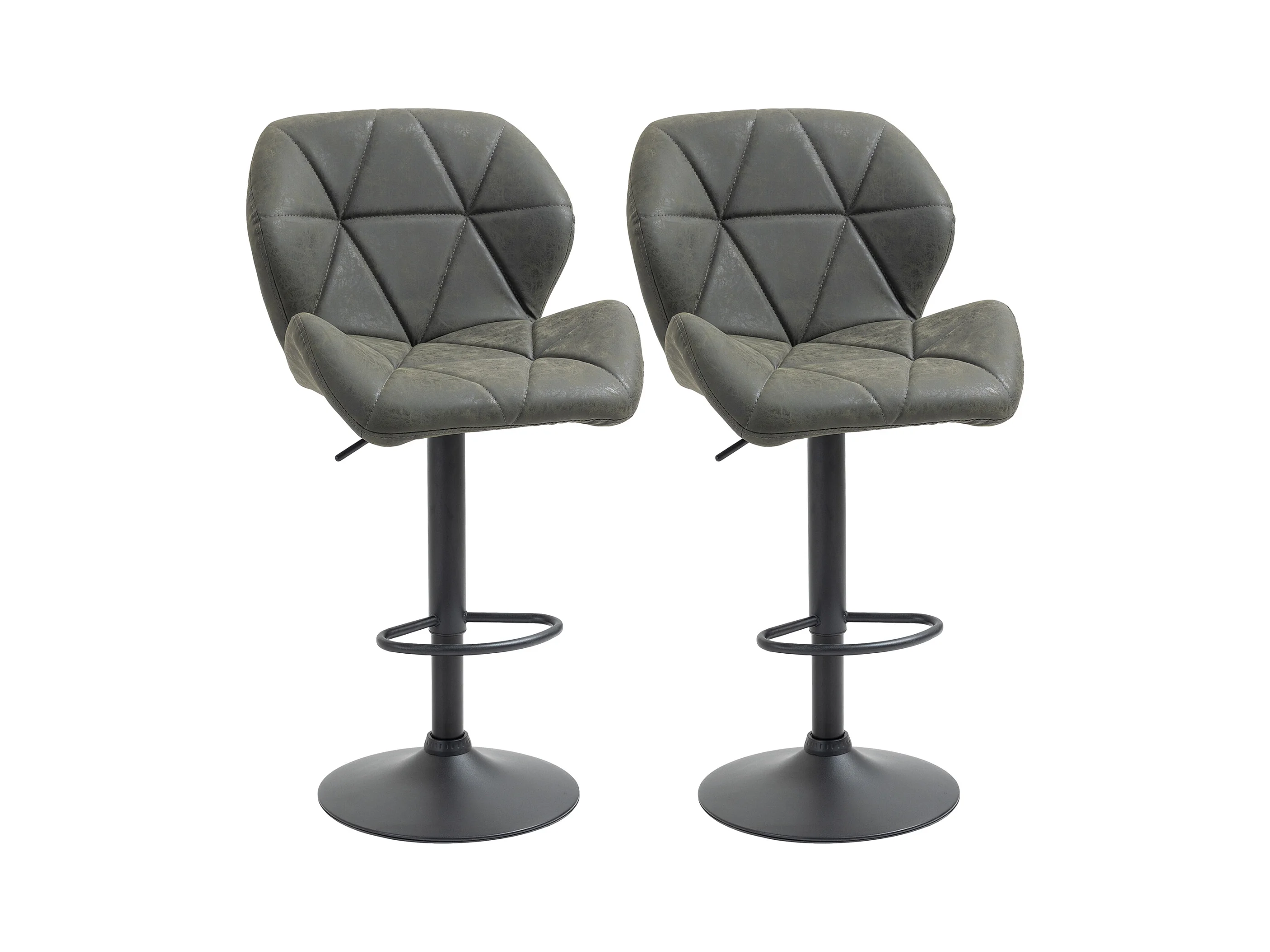 Set di 2 sgabelli da bar regolabili in altezza 77-97 cm - Seduta in similpelle PU grigia, piede in metallo grigio, diametro 40 cm