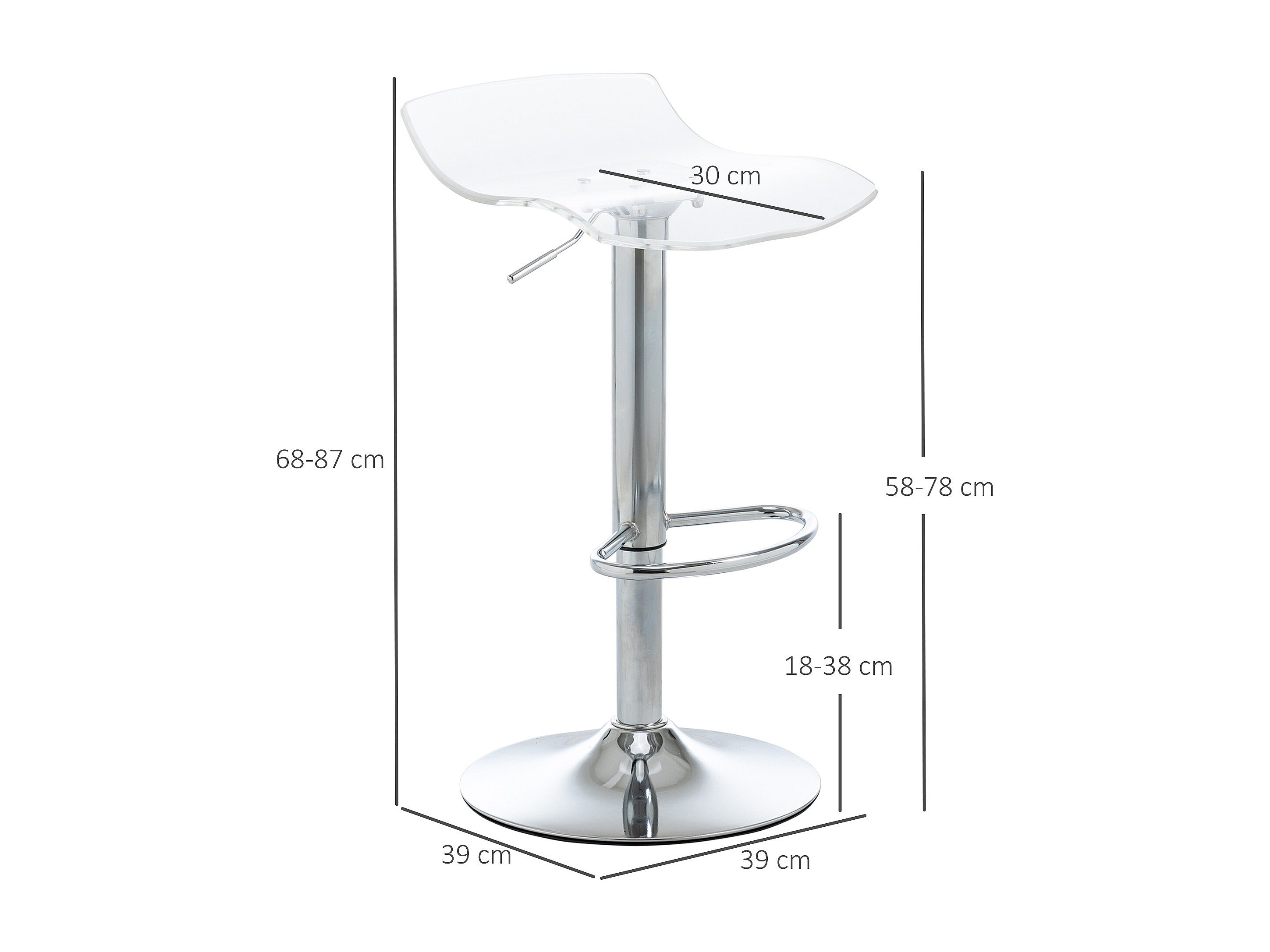 Set 2 sgabelli da bar girevoli con altezza regolabile trasparenti