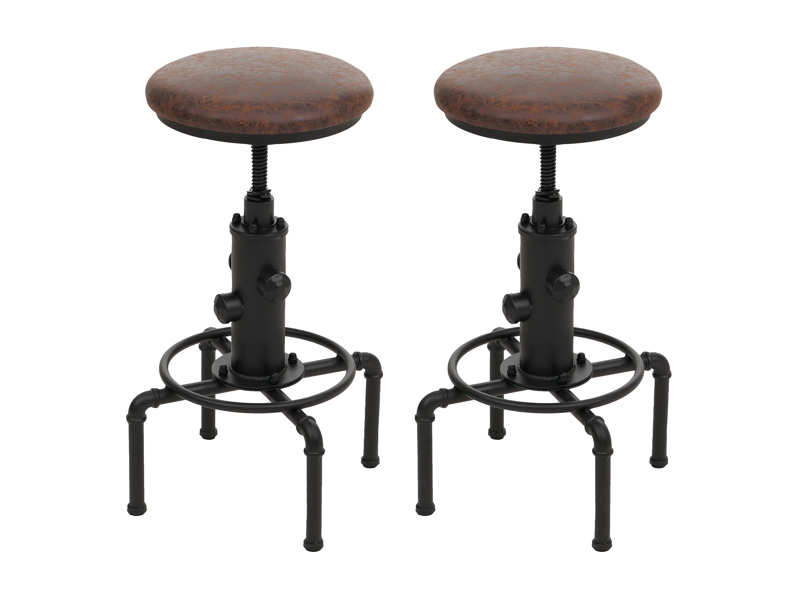 Set 2 sgabelli da bar MCW-O84, sedia bar girevole industriale regolabile in altezza, ecopelle metallo ~ marrone-nero