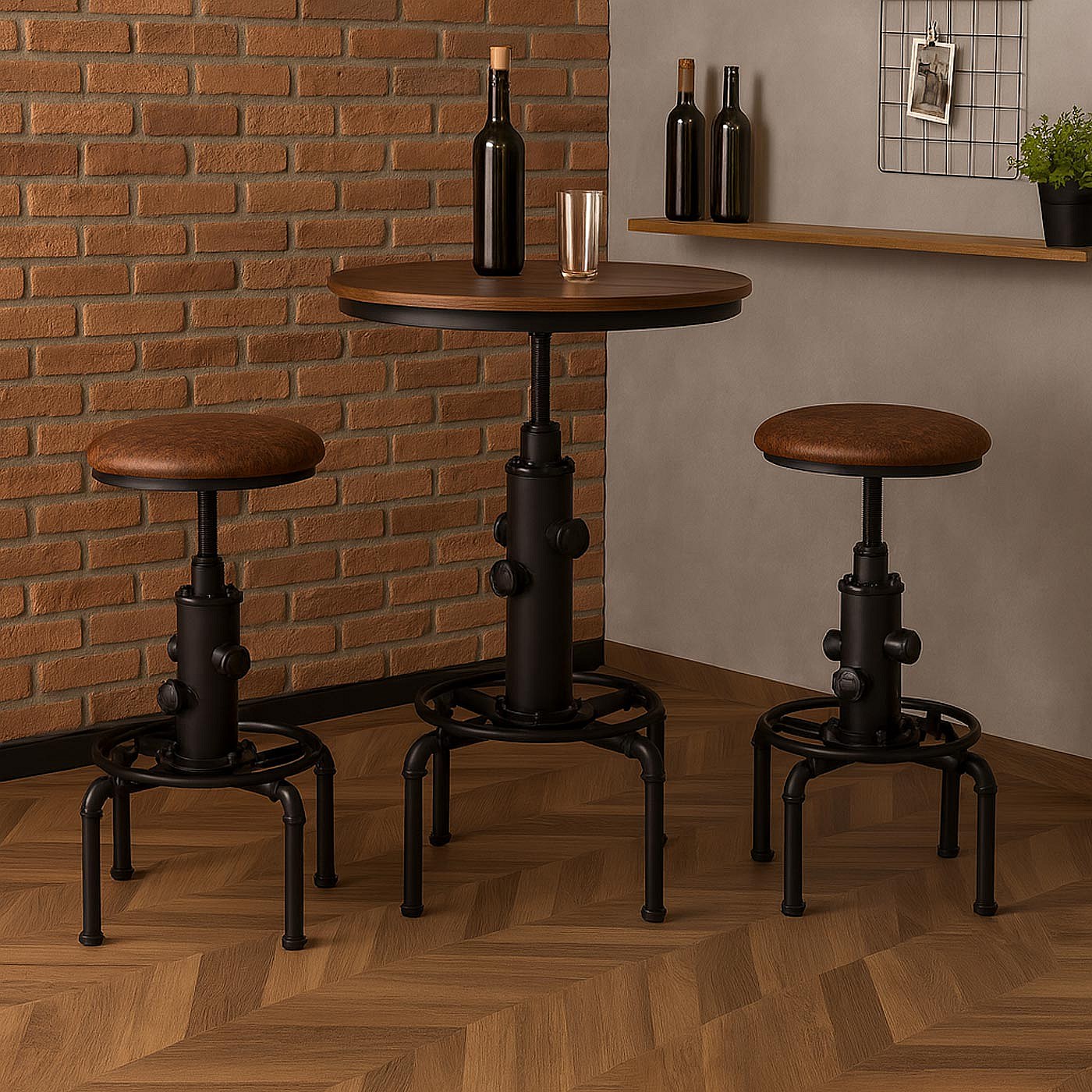 Set 2 sgabelli da bar MCW-N23, regolabile in altezza poggiapiedi girevole acciaio industriale ecopelle ~ marrone