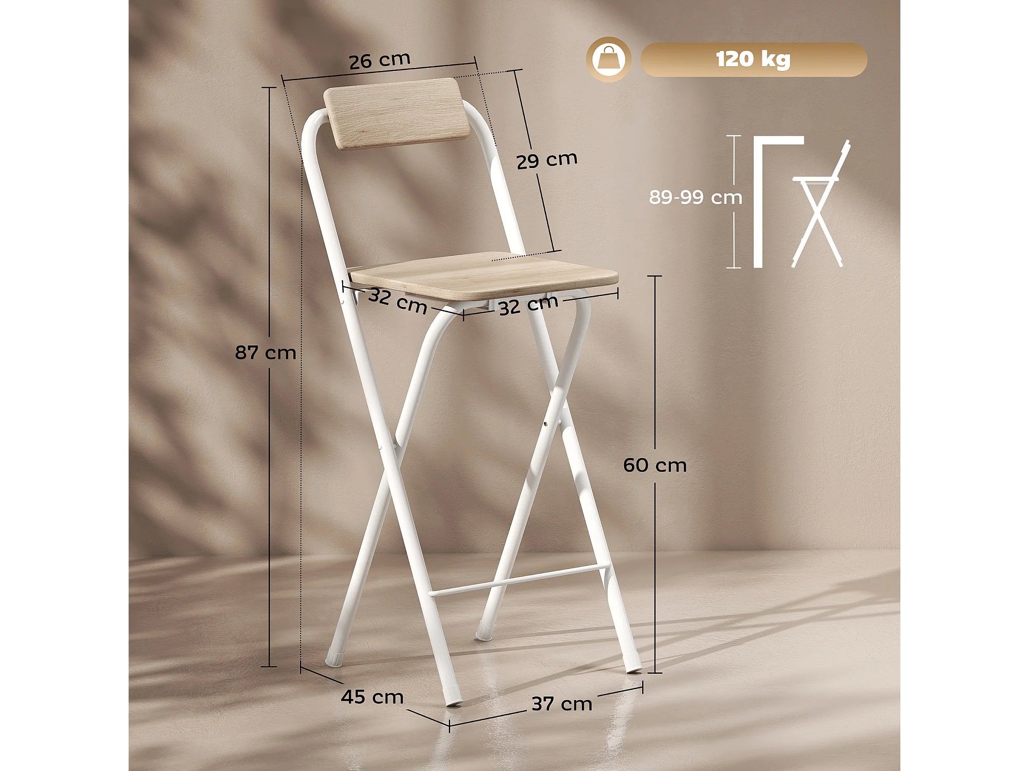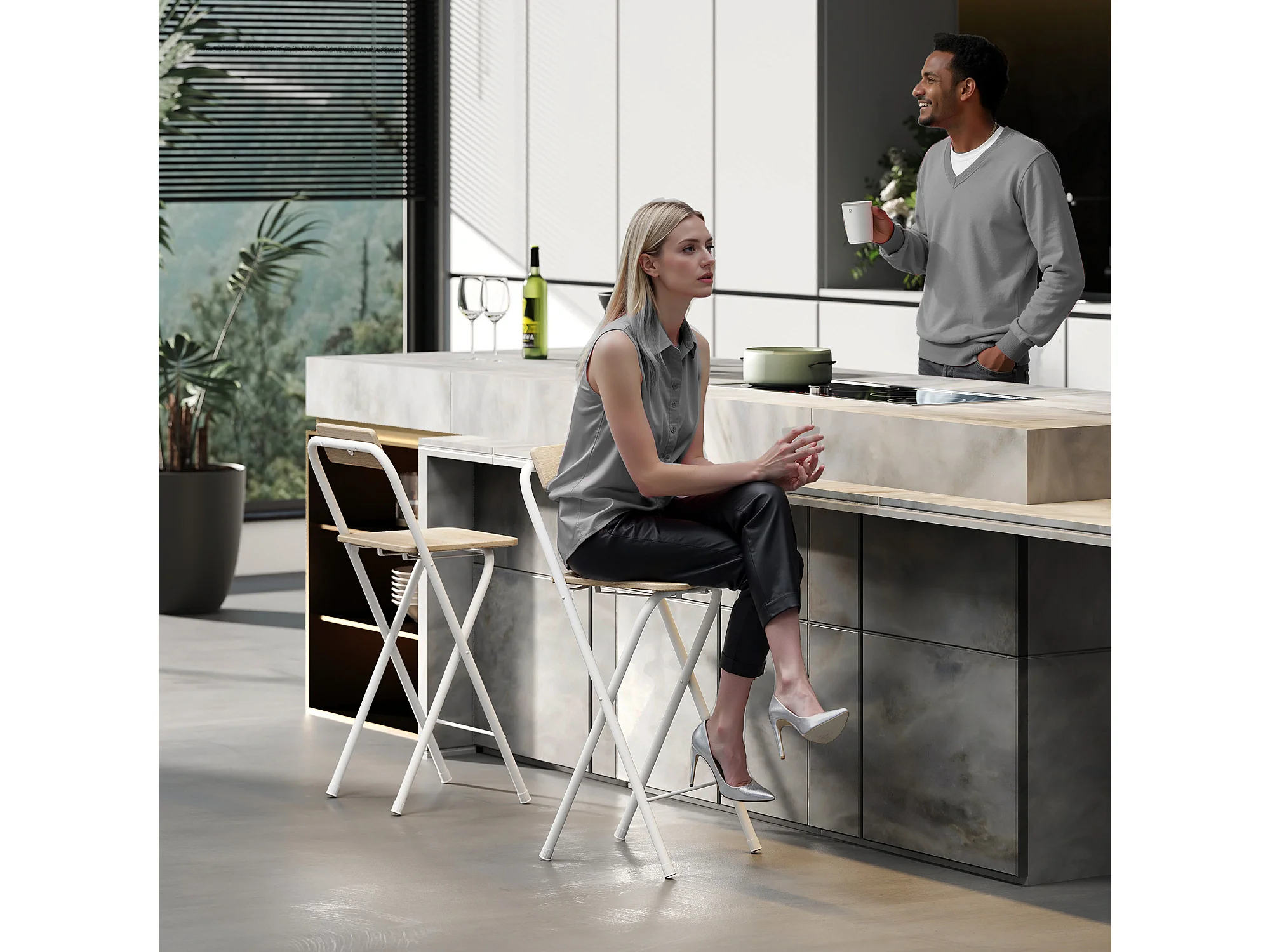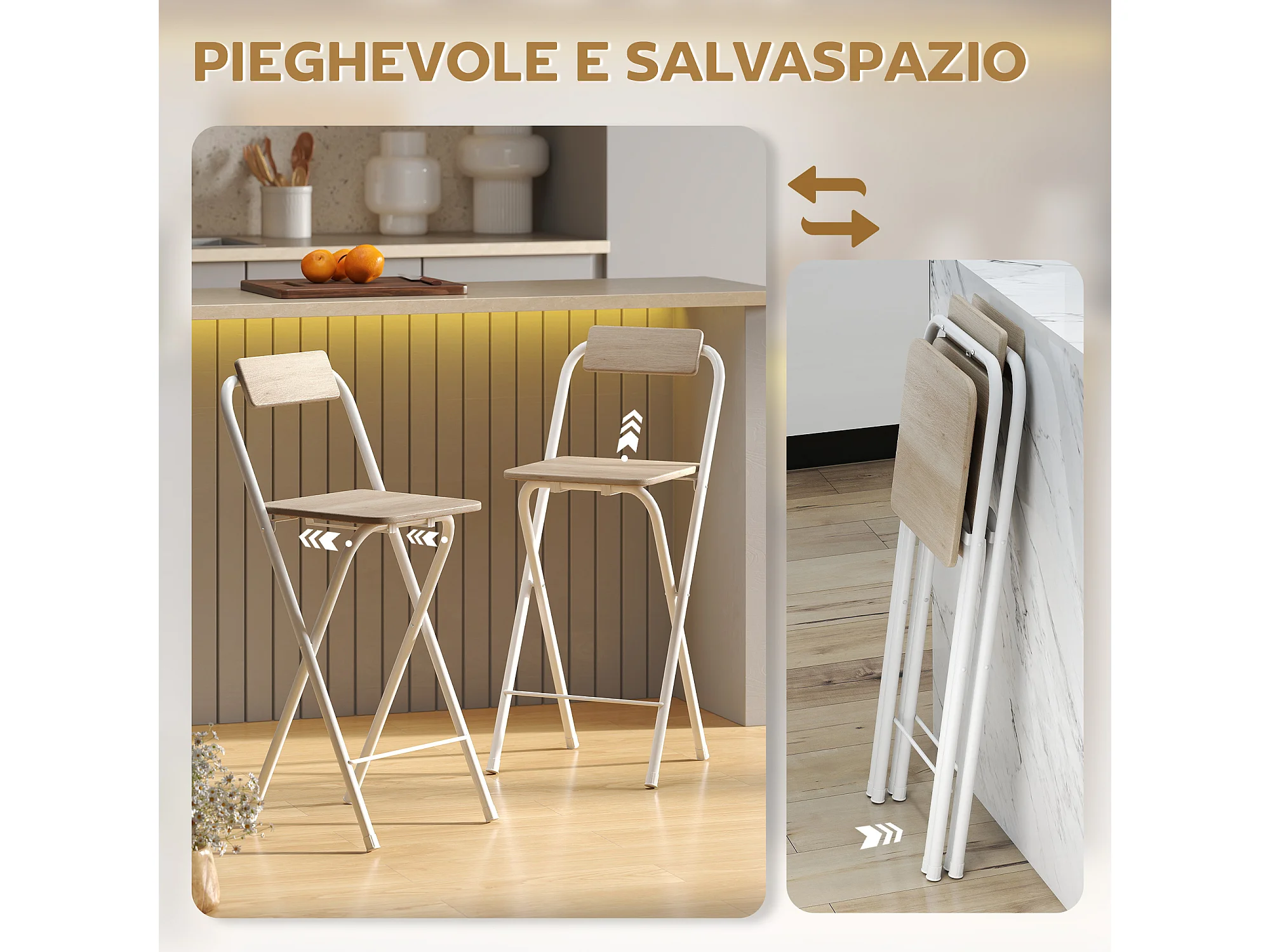 Set 2 sgabelli da bar pieghevoli con poggiapiedi colore legno