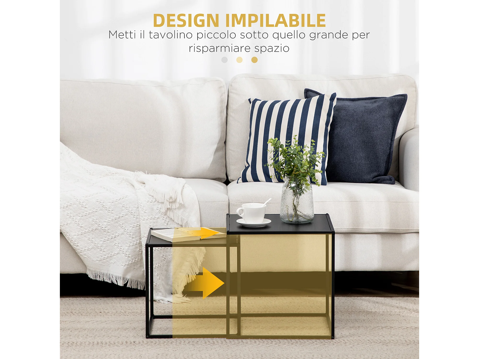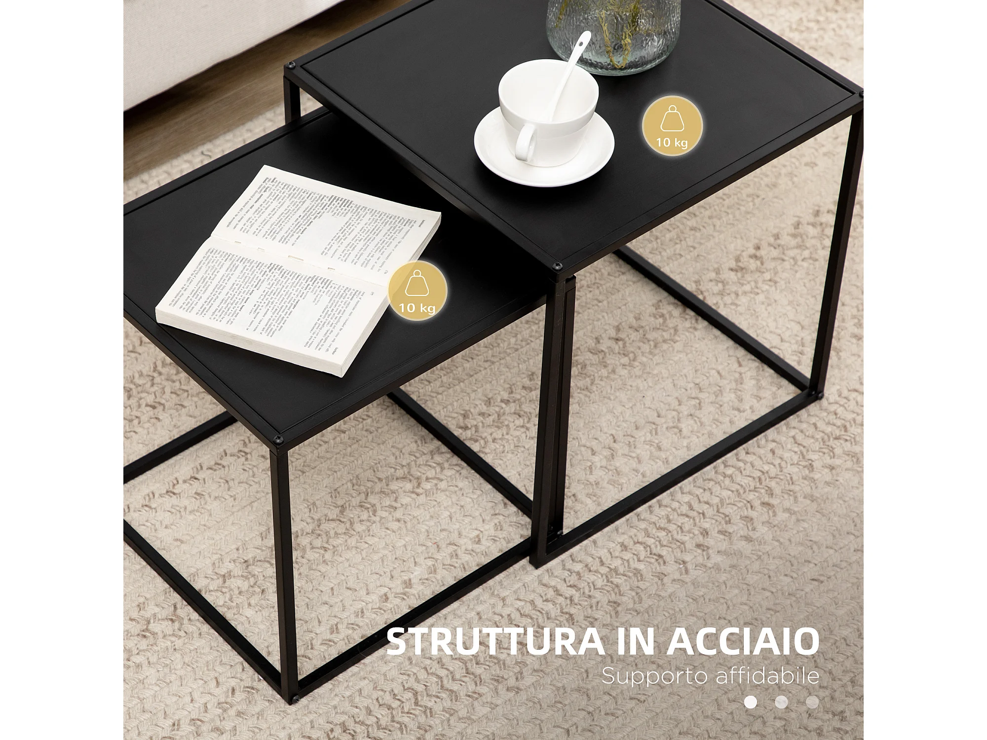 Set 2 tavolini da caffè impilabili quadrati tavolini da salotto