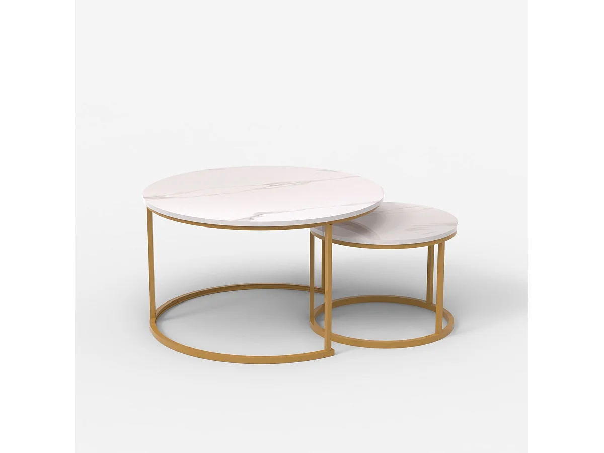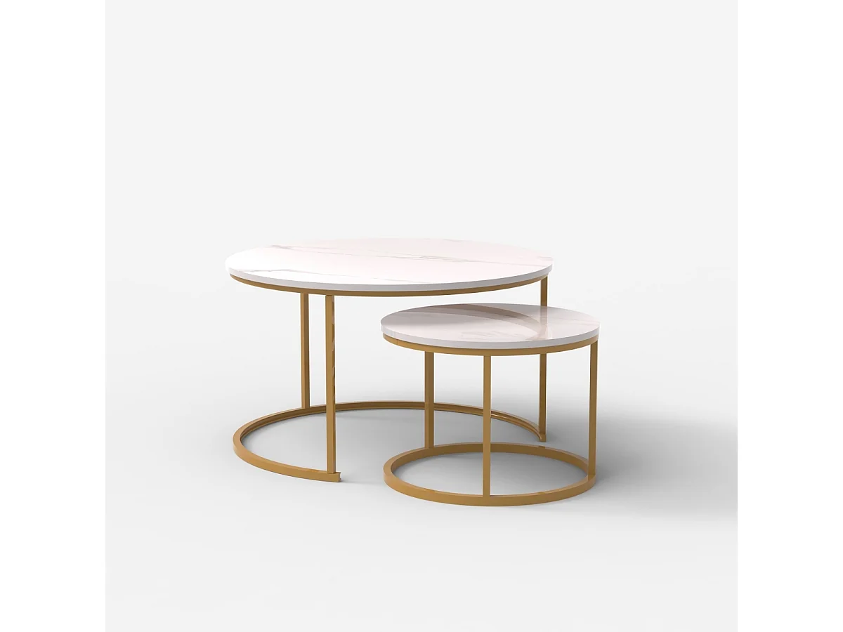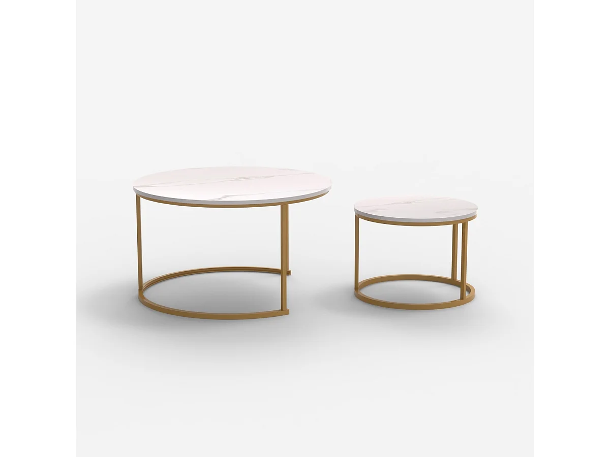 Set 2 tavolini da salotto effetto marmo bianco e metallo dorato Malachite