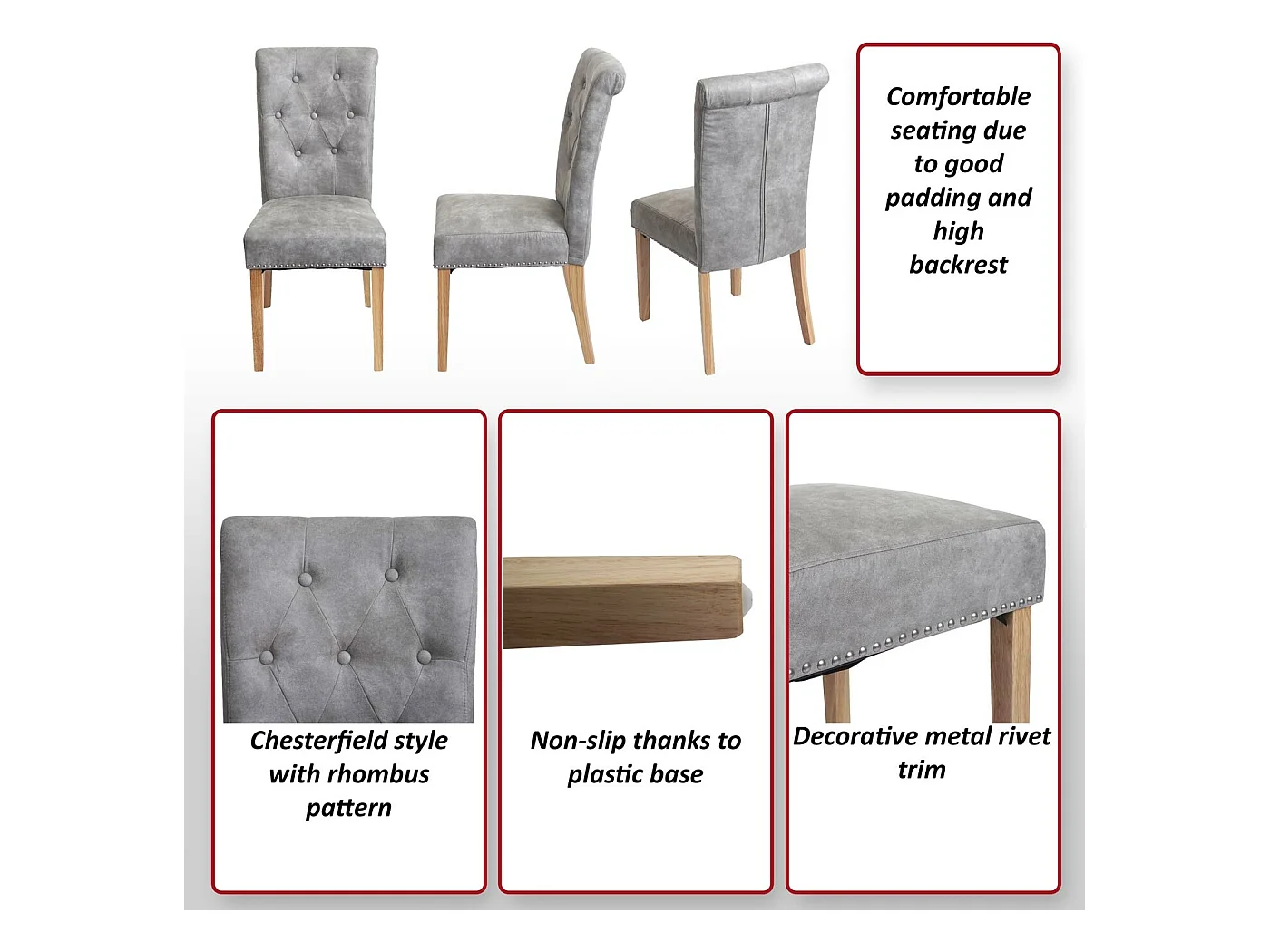 Set 2x sedie vintage retrò inglesi sala pranzo Chesterfield II ecopelle marrone piedi scuri