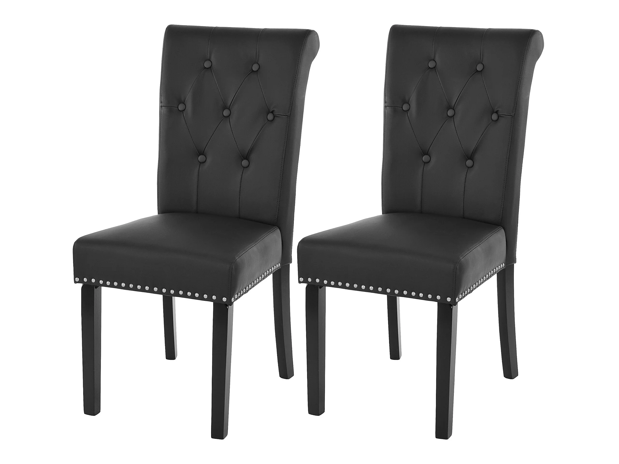 Set 2x sedie retrò eleganti Chesterfield ecopelle sala pranzo 62x50x93cm nero piedi scuri