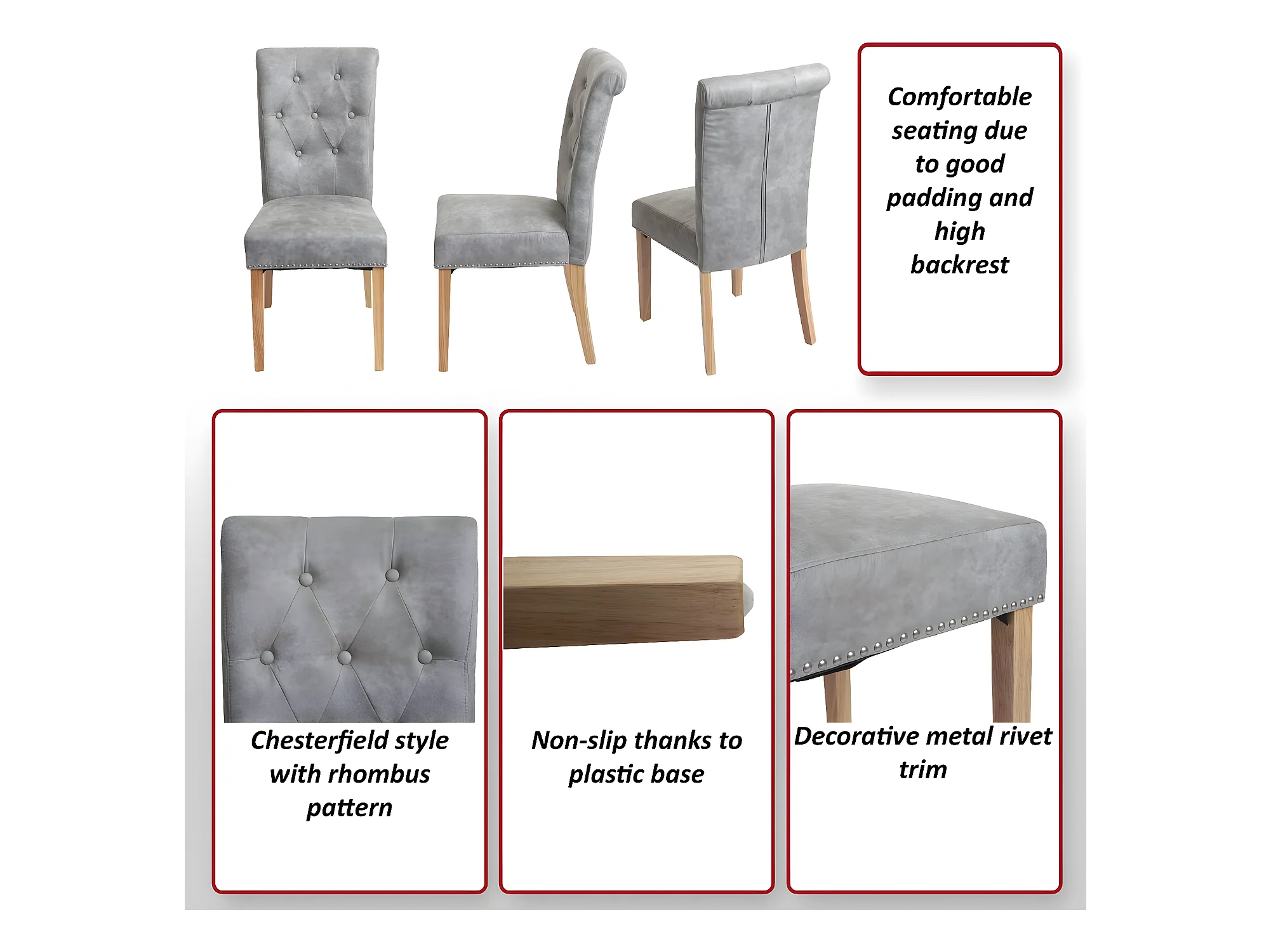 Set 2x sedie vintage retrò inglesi sala pranzo Chesterfield II ecopelle nero piedi scuri
