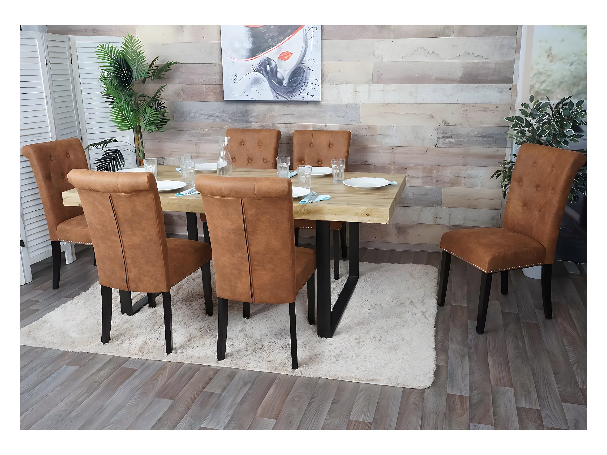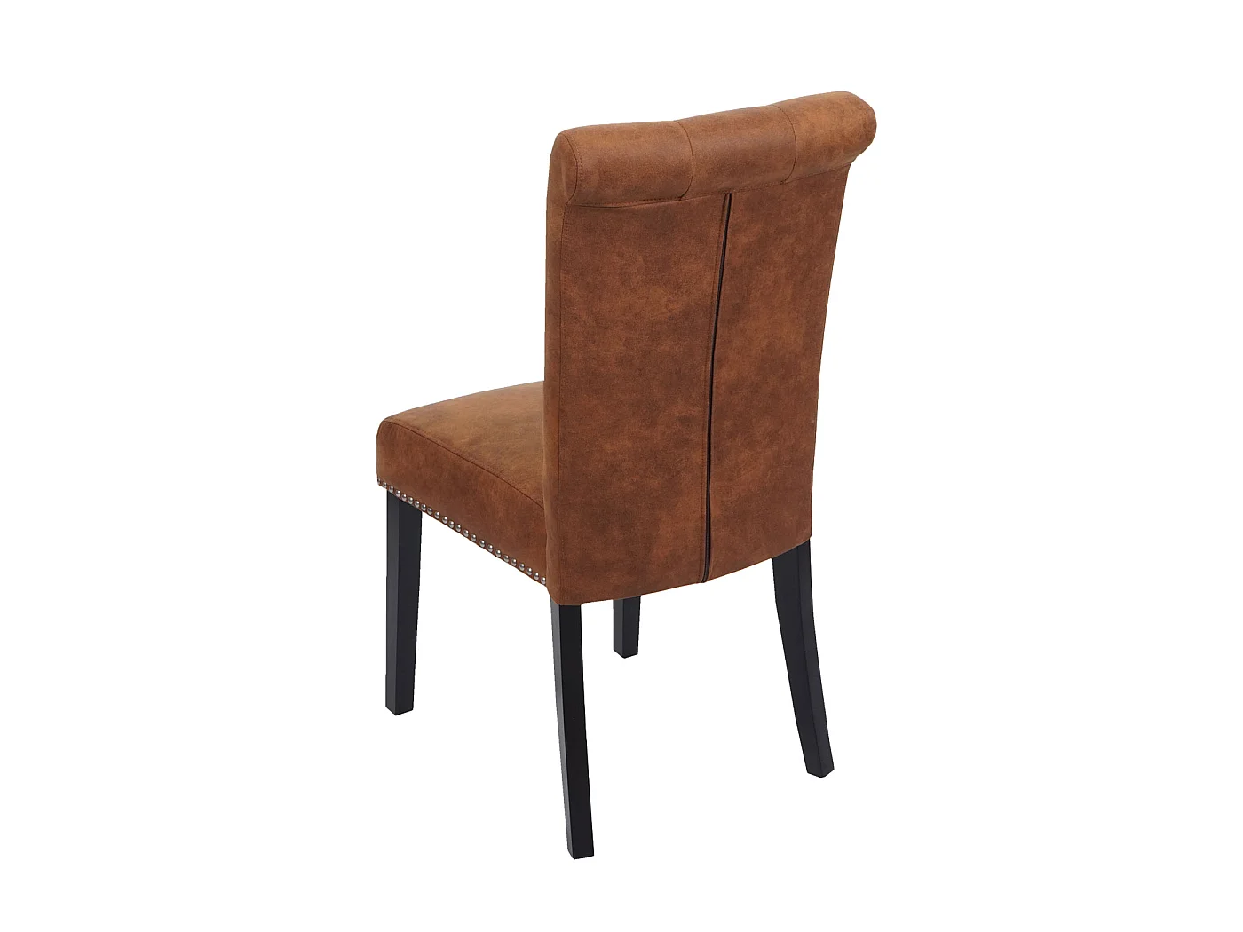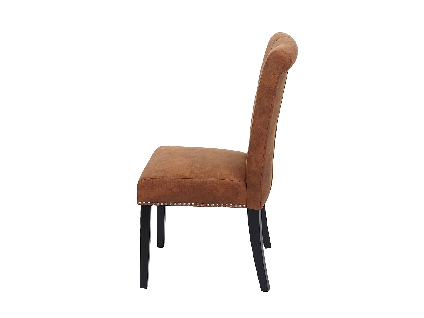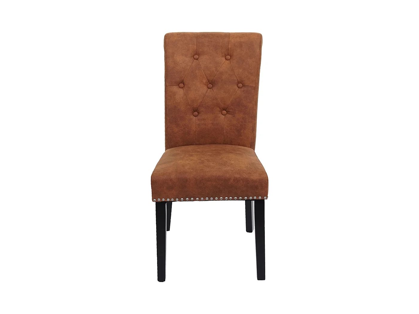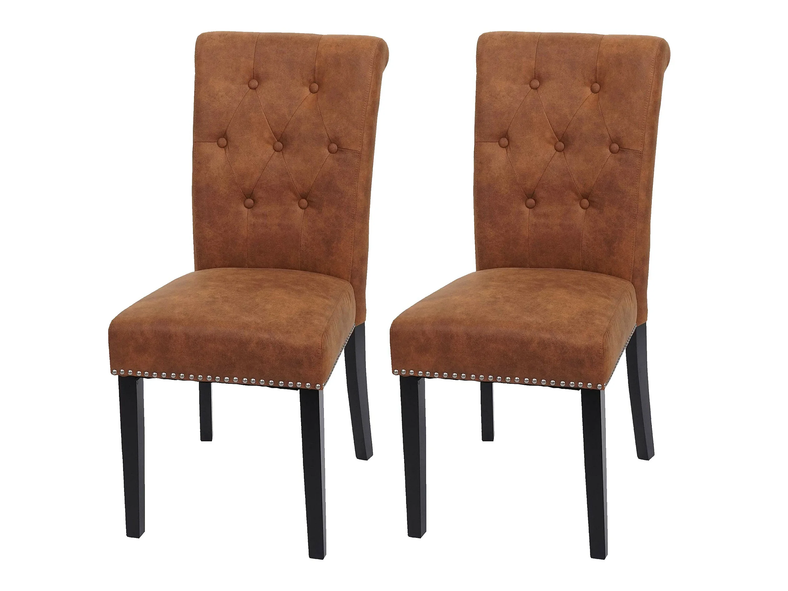 Set 2x sedie vintage retrò inglesi sala pranzo Chesterfield II tessuto effetto scamosciato marrone piedi scuri