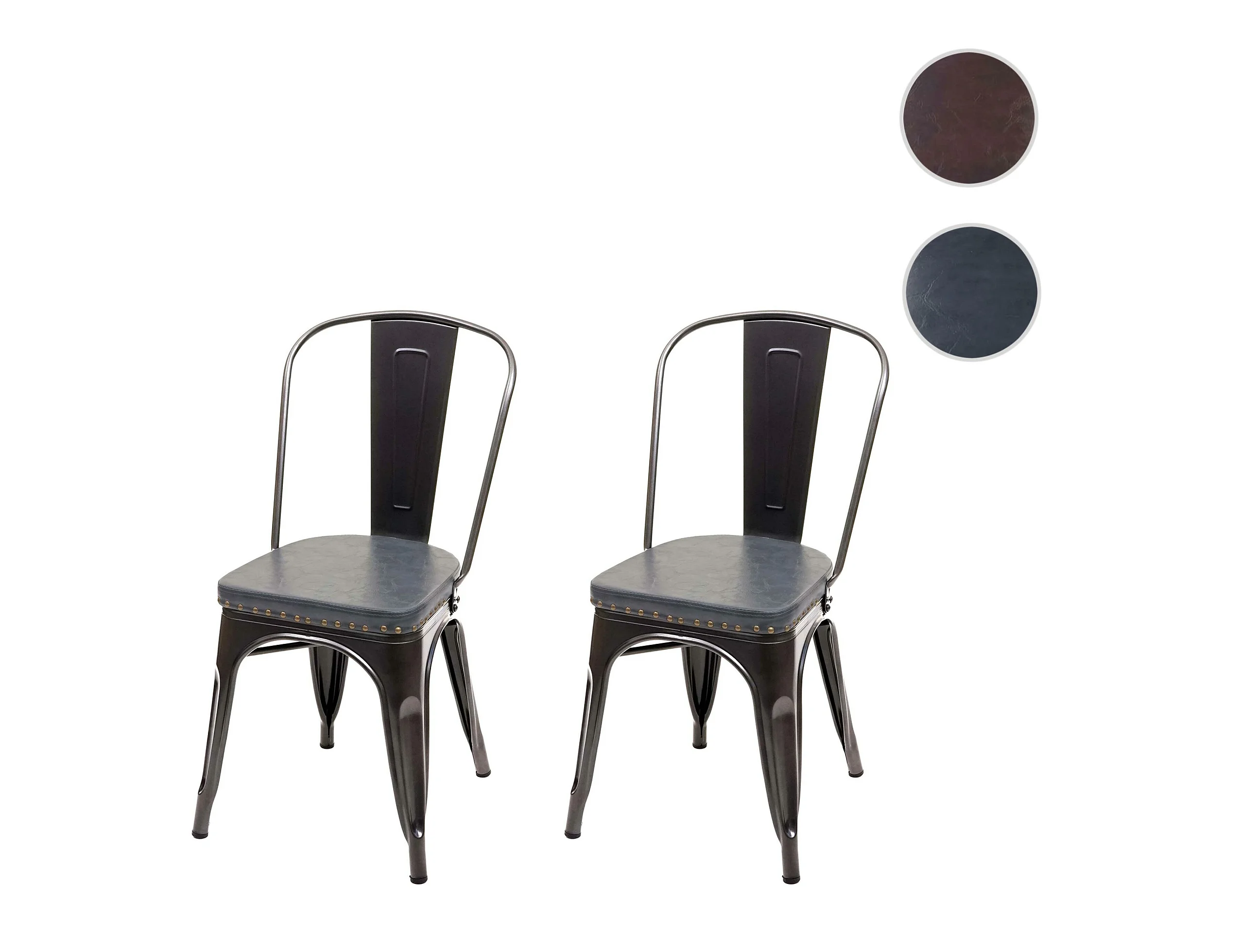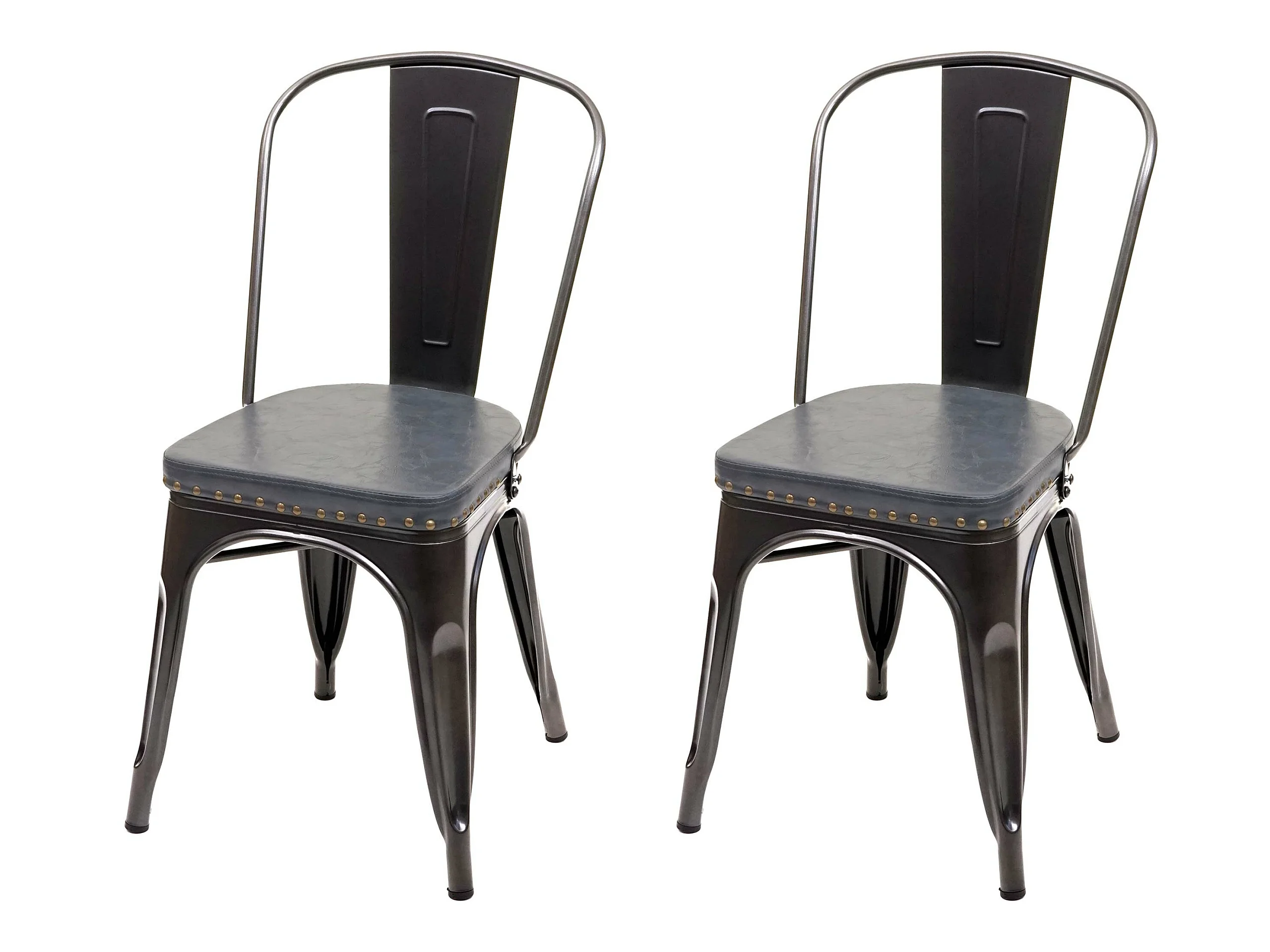 Set 2x sedie impilabili design industriale MCW-H10e acciaio verniciato ecopelle nero e grigio