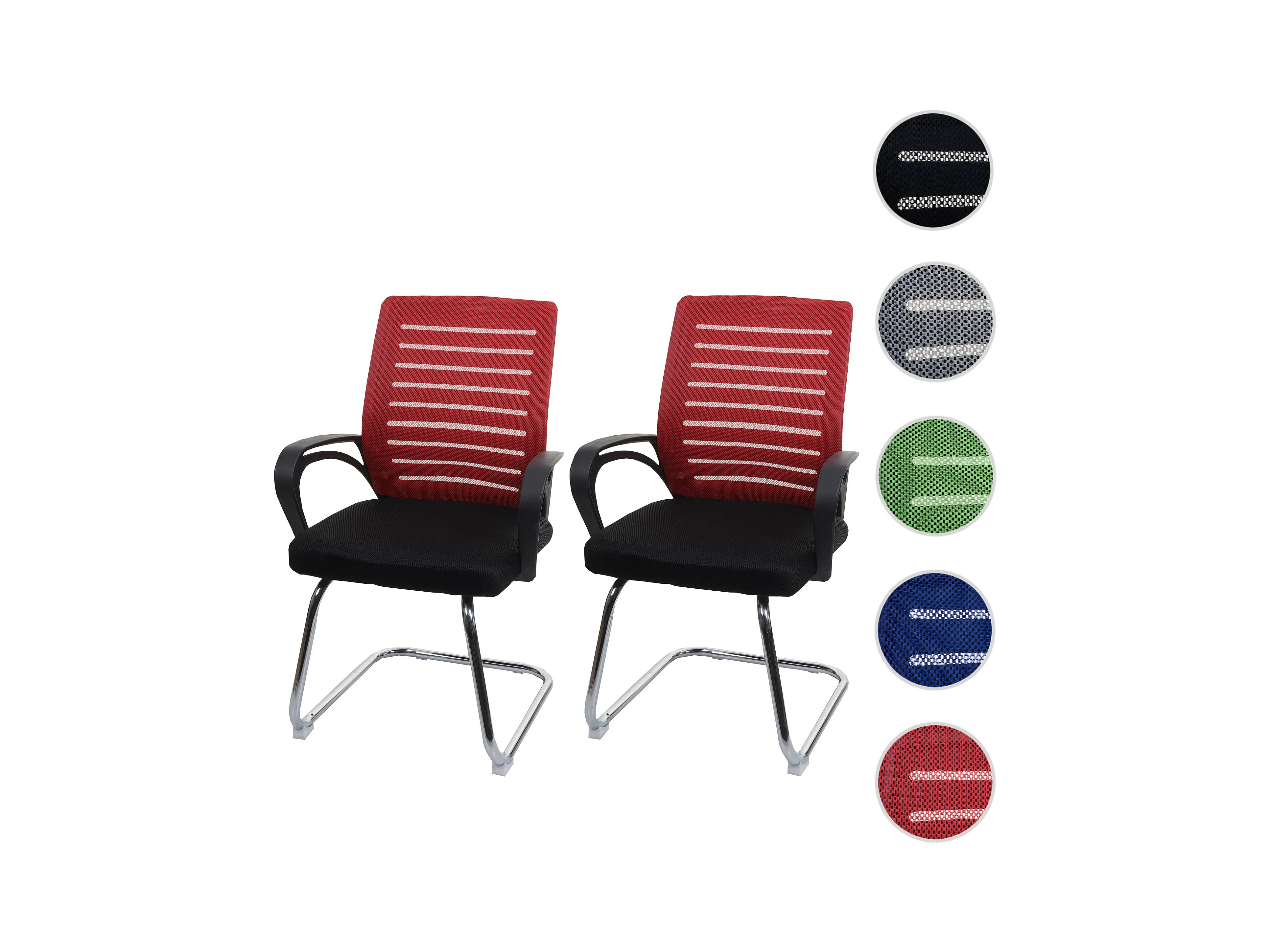 Set 2x sedie ufficio studio conferenza 150kg MCW-K51 94x60x49cm tessuto a rete rosso