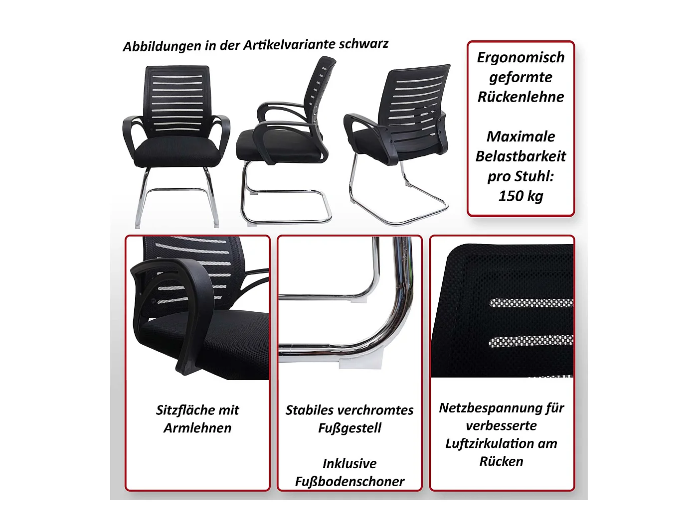Set 4x sedie ufficio conferenza sala attesa impilabili Tulsa tessuto struttura cromata nero