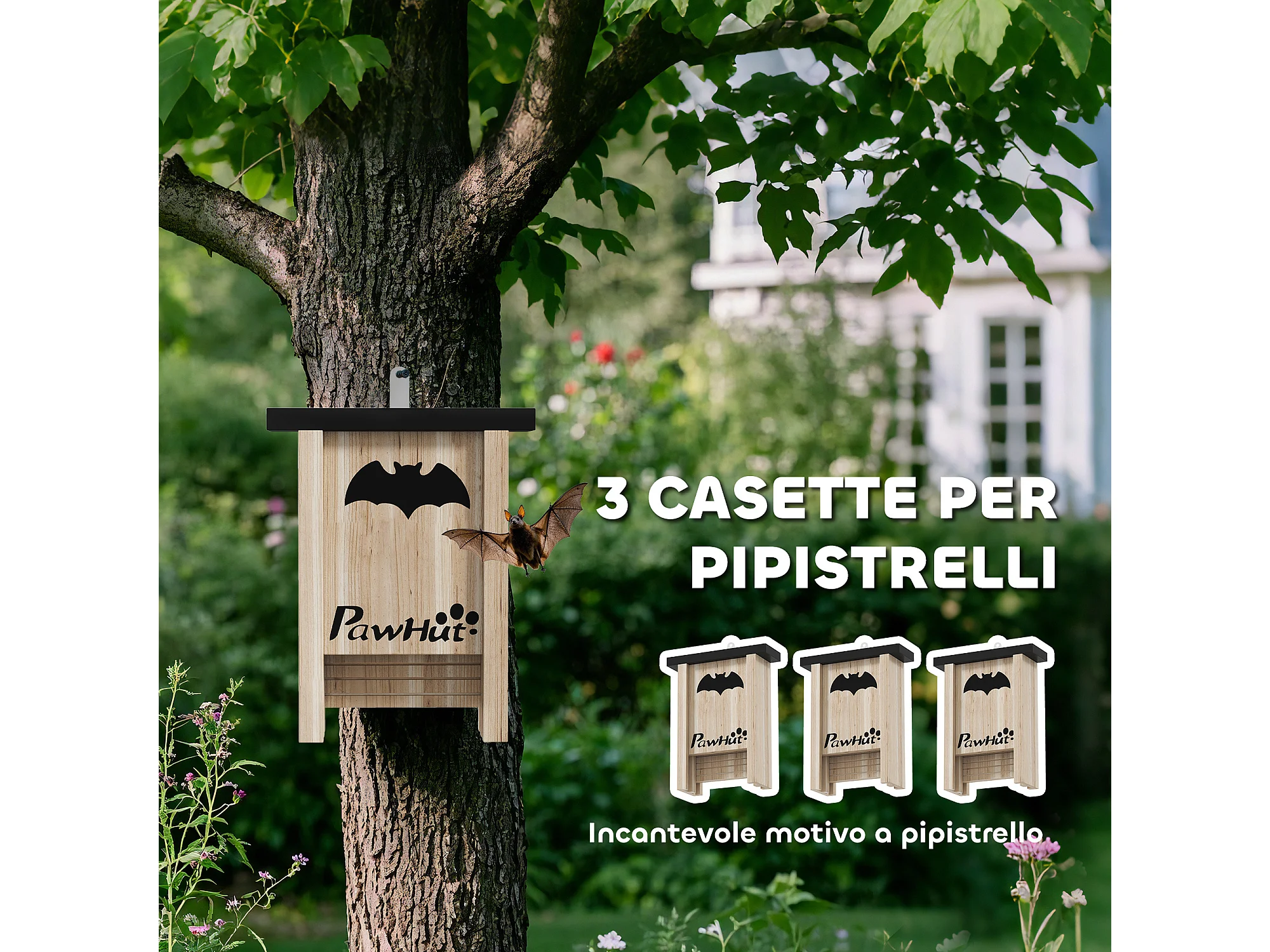 Set 3 casette per pipistrelli 18x6x22.5 cm in legno di abete