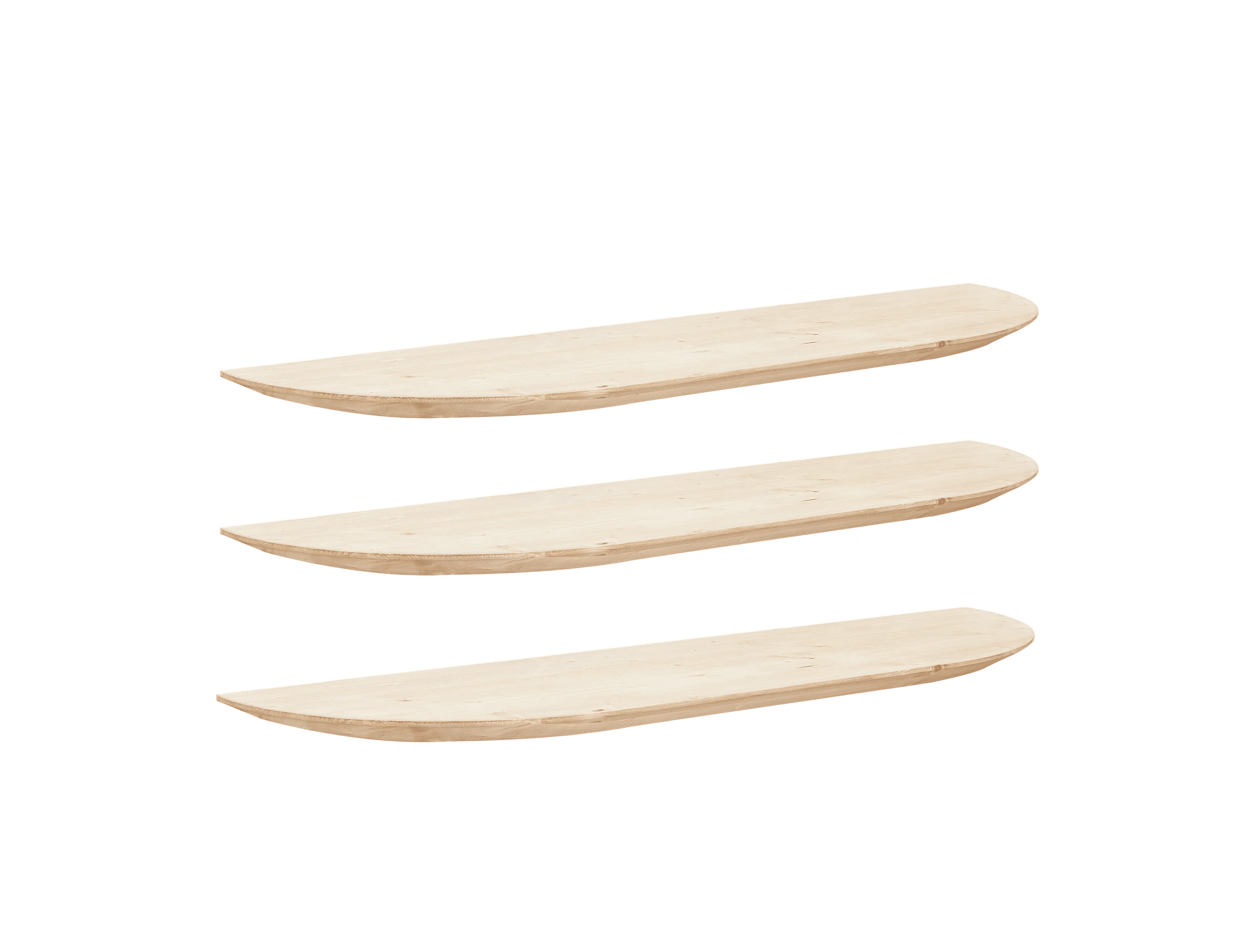 Set 3 ripiani arrotondati in legno massello in tono naturale 100x3,2x19,65cm - BLOOM - DECOWOOD
