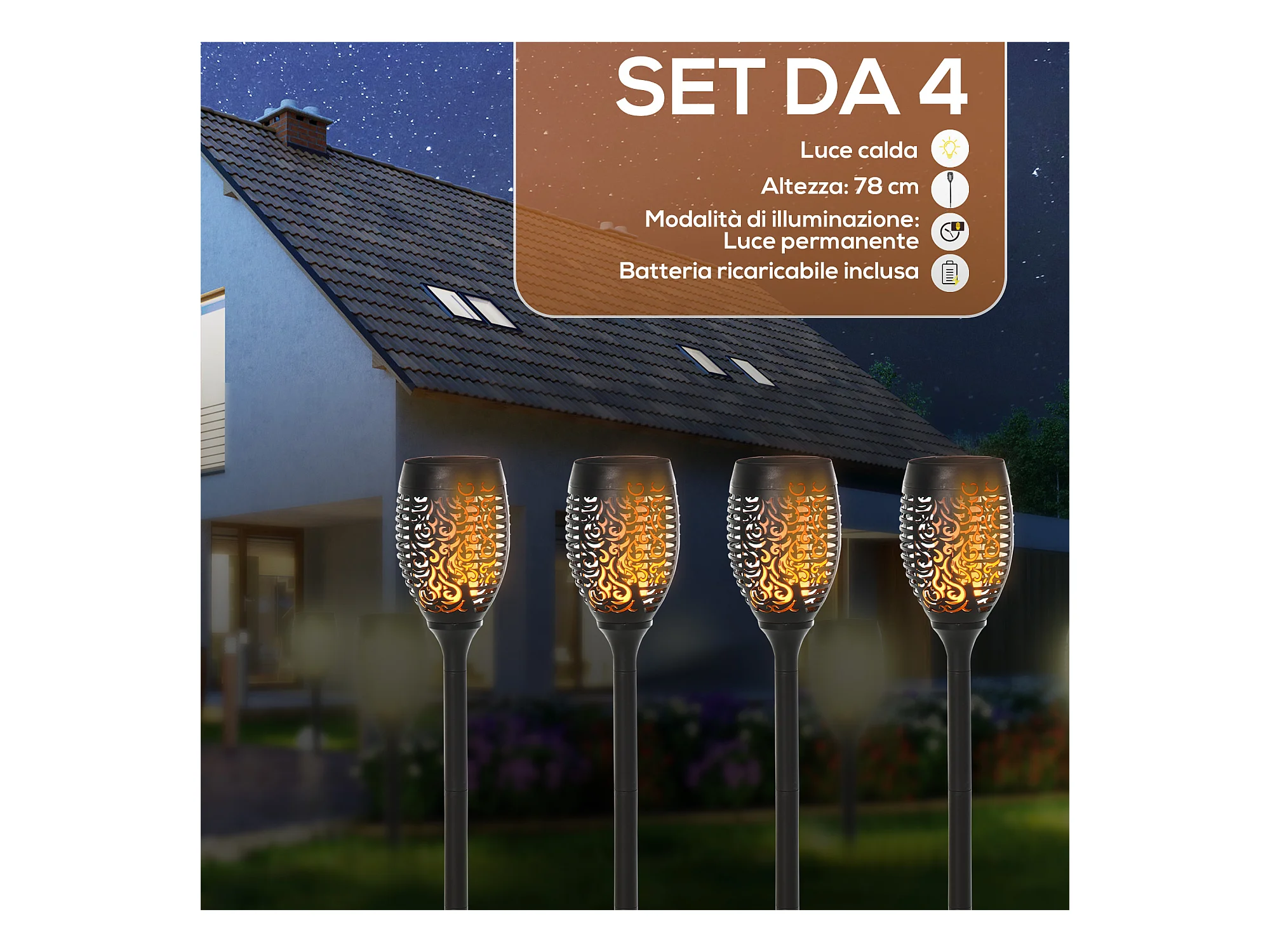 Set 4 faretti da esterno led a energia solare ø12x72 cm nero