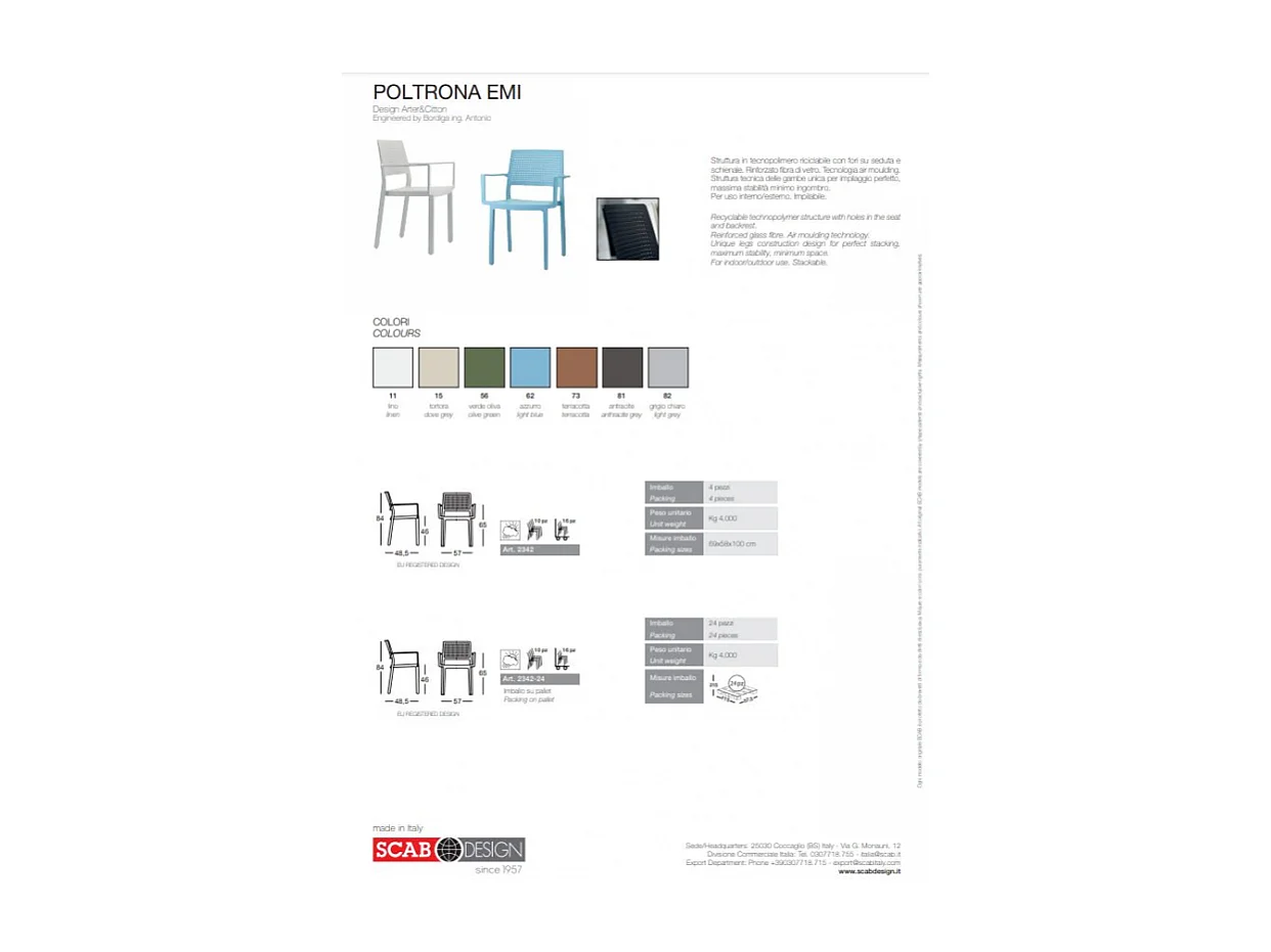 SET 4 PEZZI SEDIA EMI CON BRACCIOLI TECNOPOLIMERO MADE IN ITALY SCAB DESIGN - Verde oliva 56