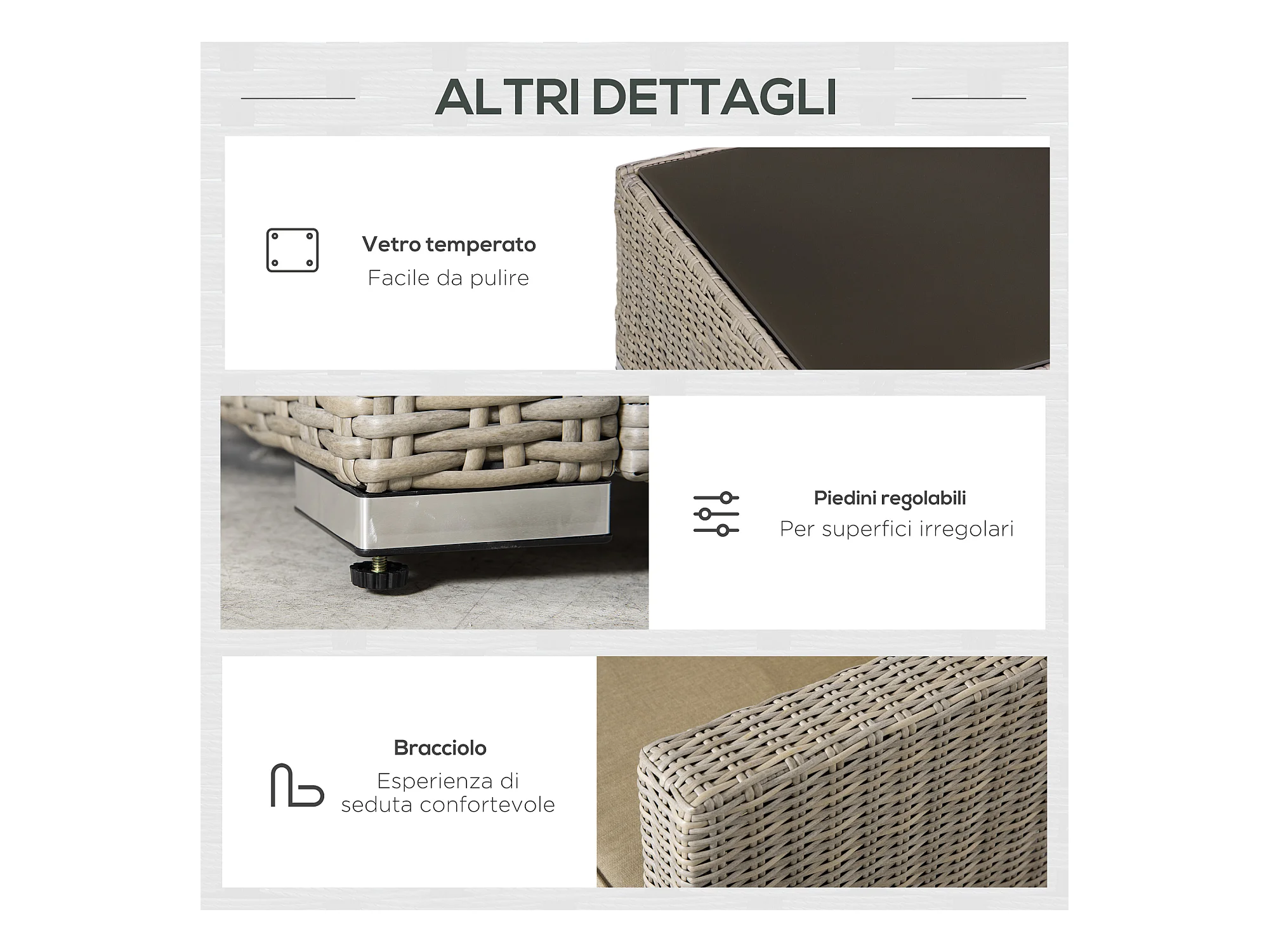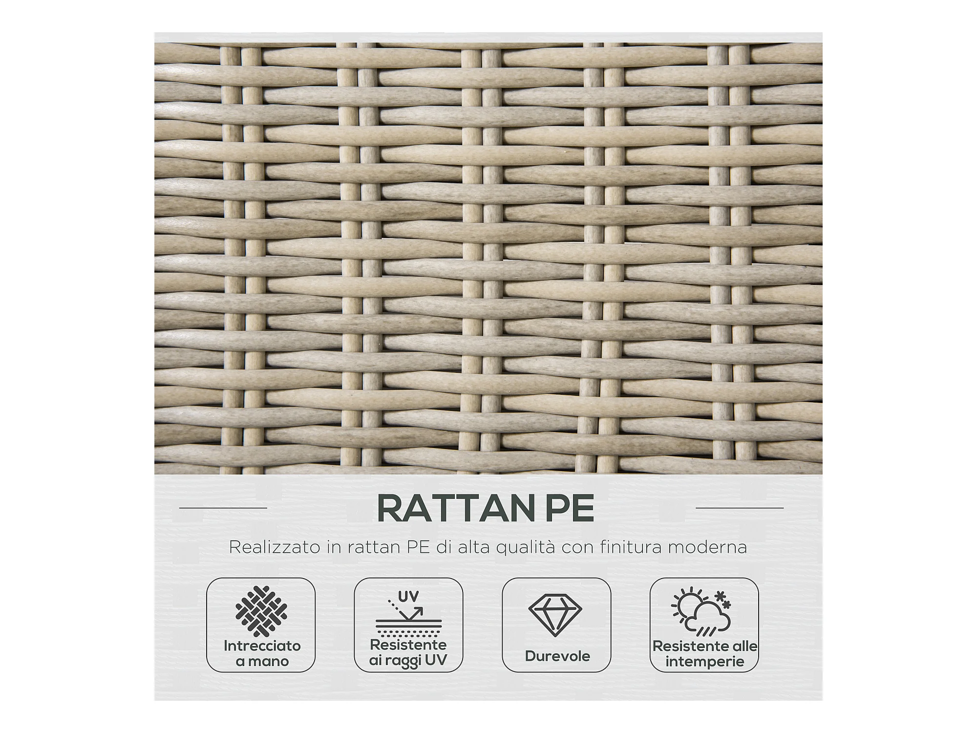 Set 4 pz salotto da esterni in rattan kaki e beige