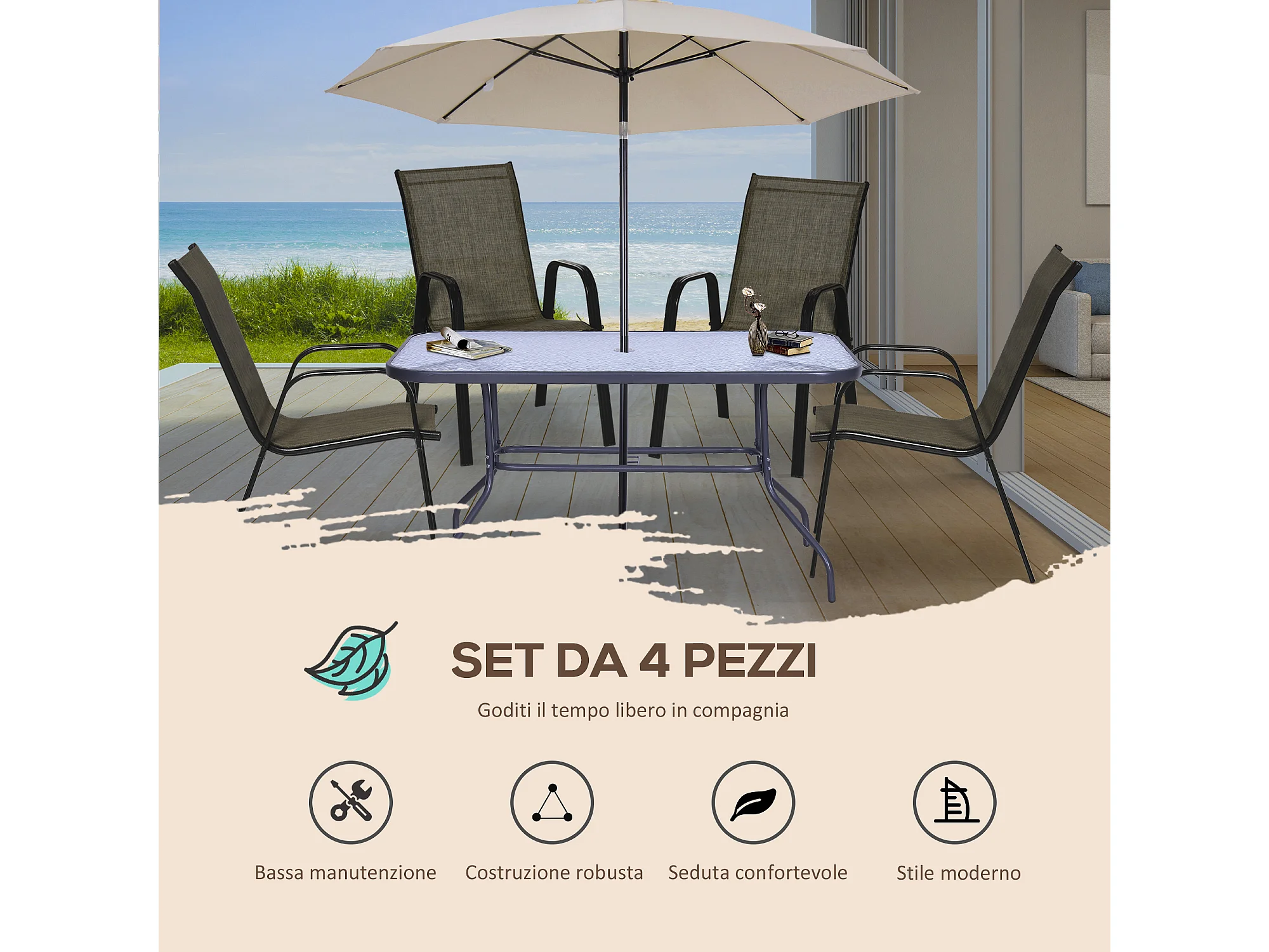 Set di tavolo e sedie da giardino