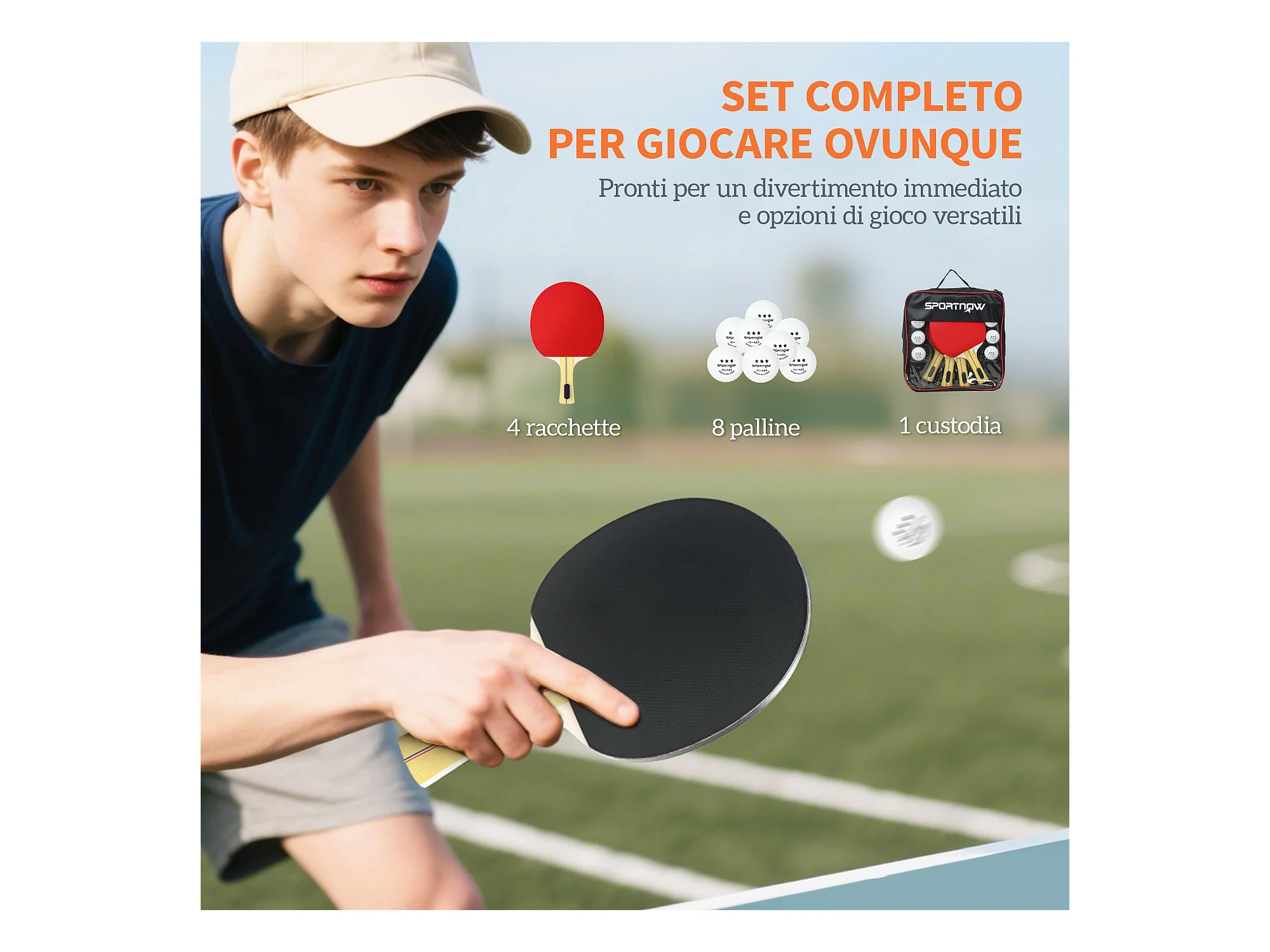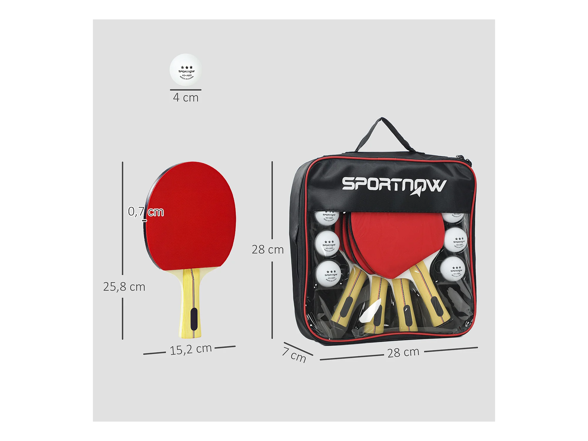 Set 4 racchette ping pong e 8 palline con custodia rosso e nero