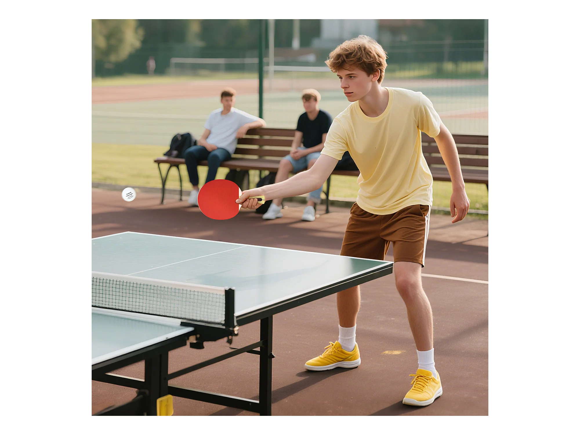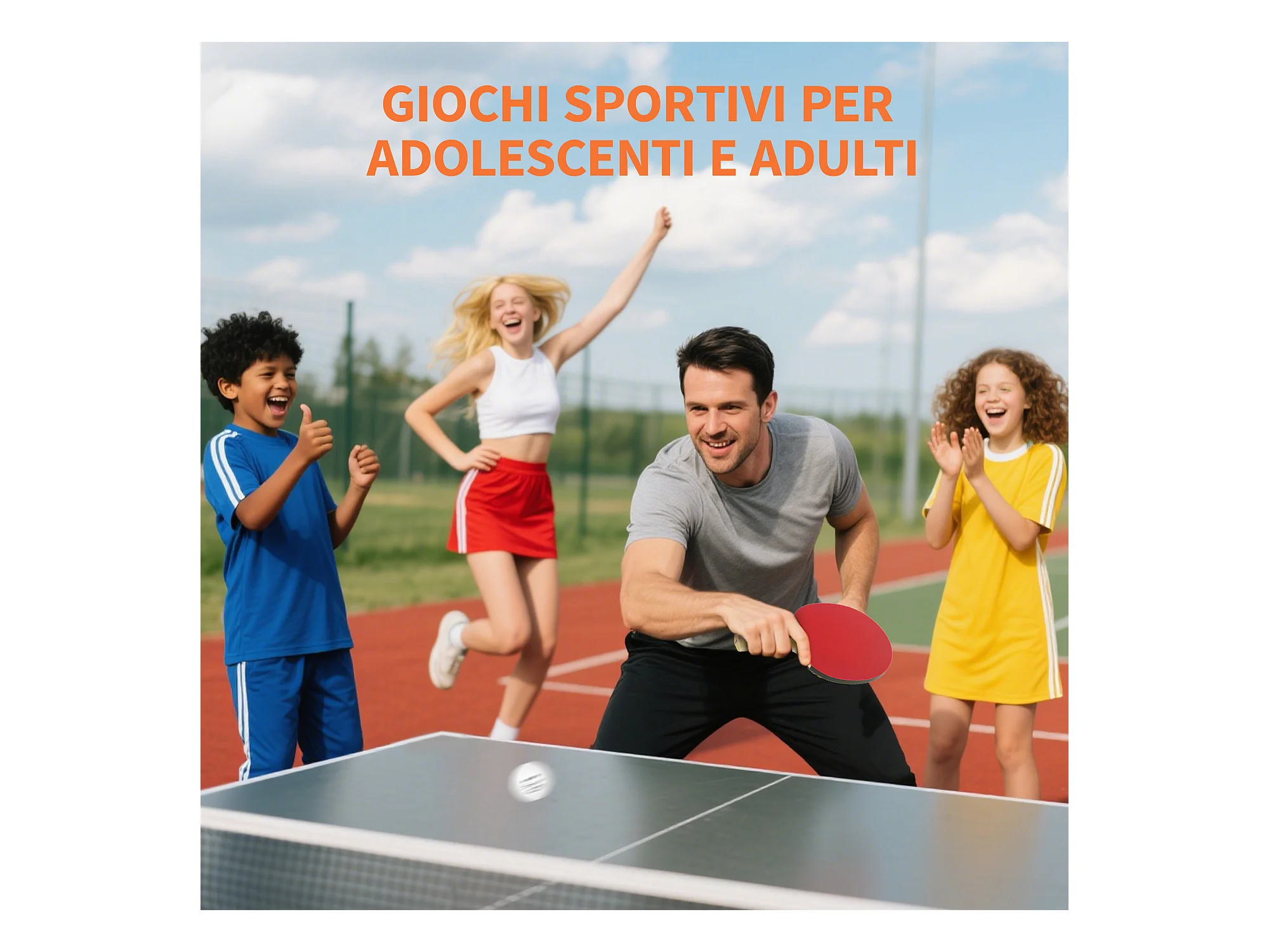 Tavolo da ping pong pieghevole per esterni con 4 racchette e 6