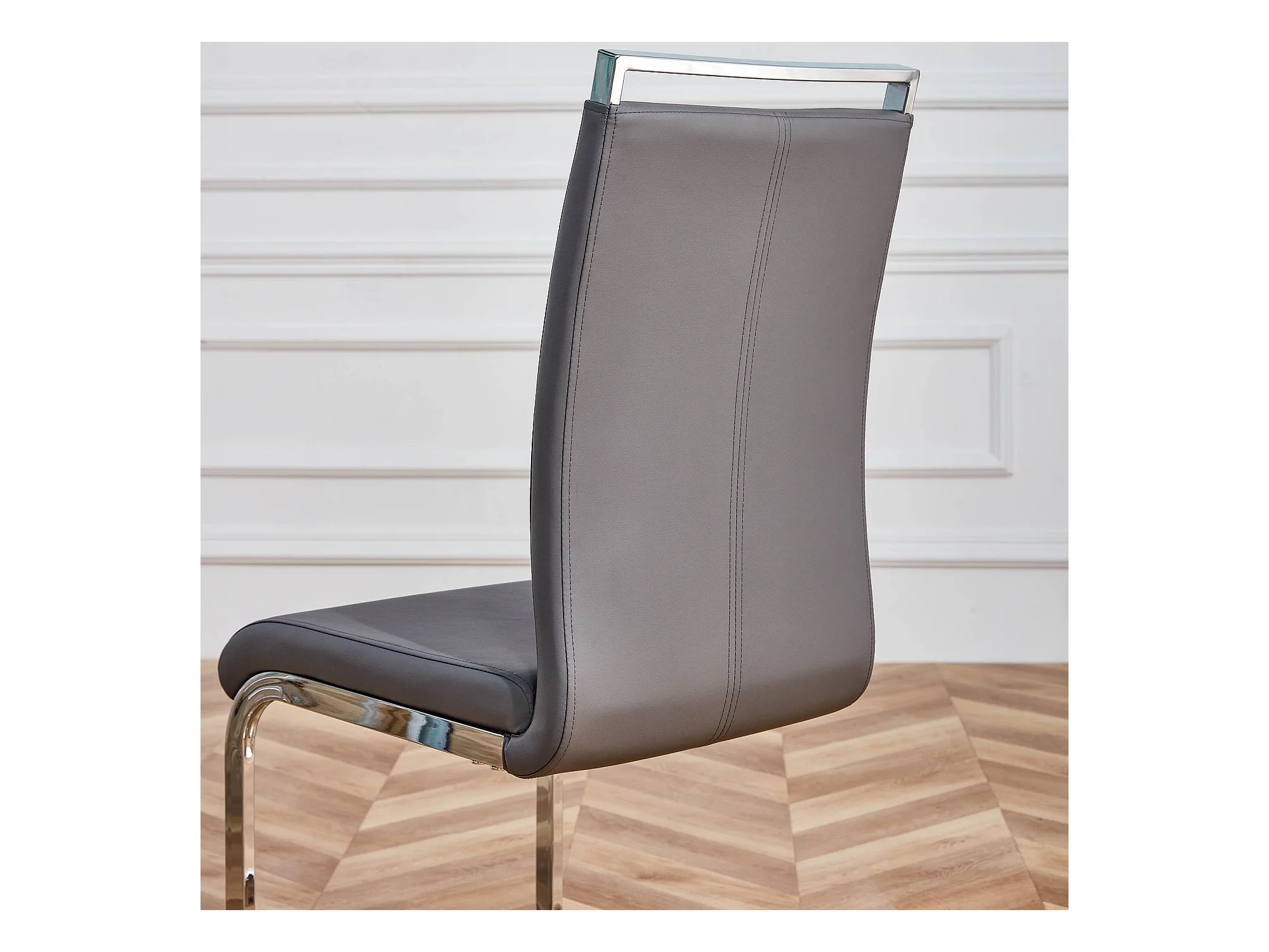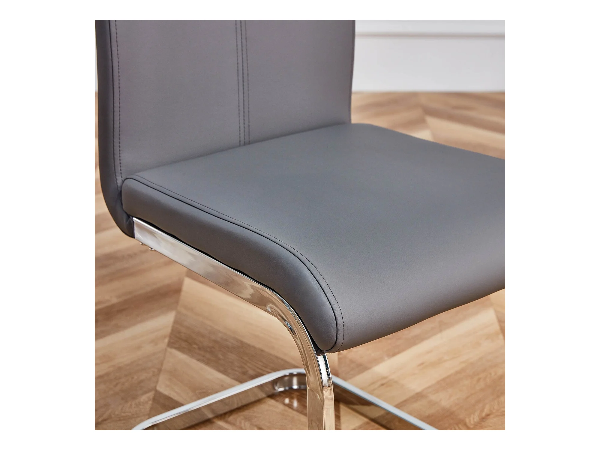 Set di 4 sedie a sbalzo in PU grigio con struttura in metallo argentato