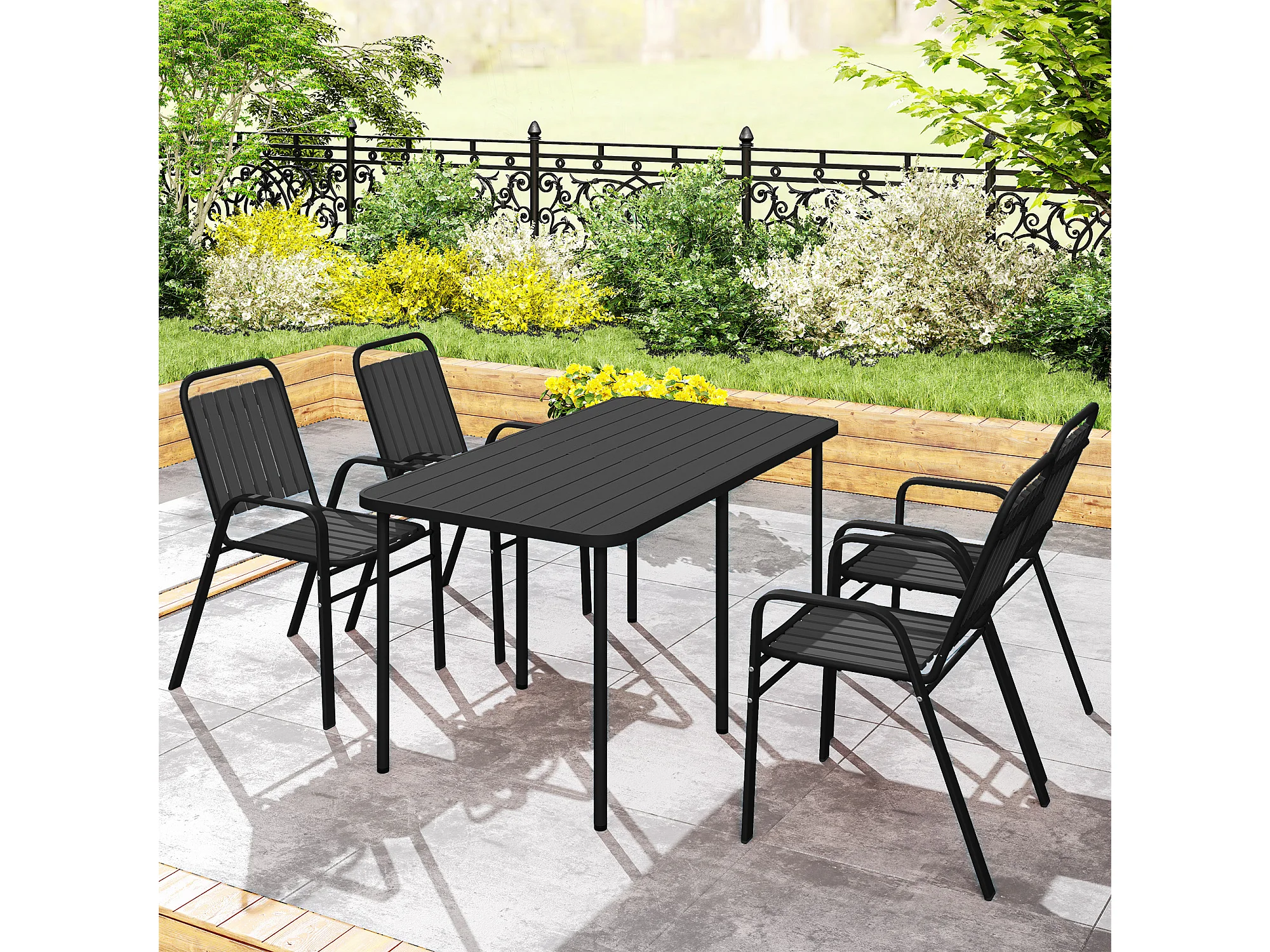 Set 4 sedie da giardino impilabili 56x66x91 cm nero