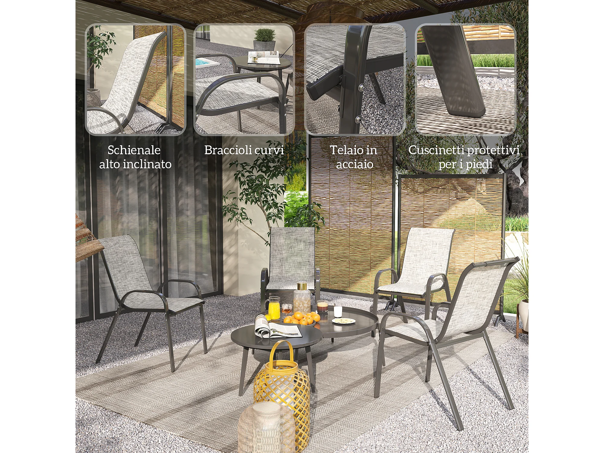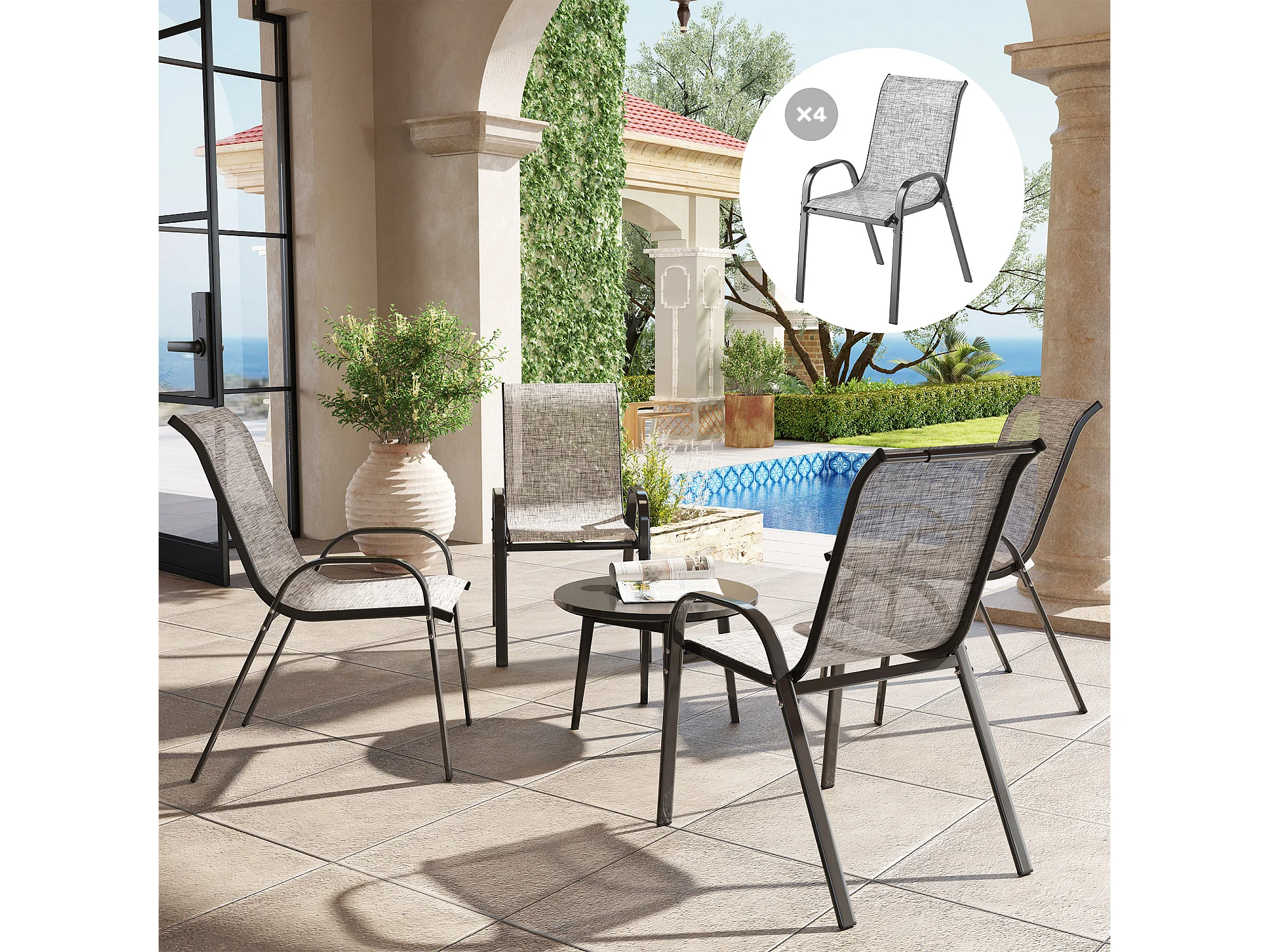 Set 4 sedie da giardino impilabili e traspiranti 54x71x93 cm grigio