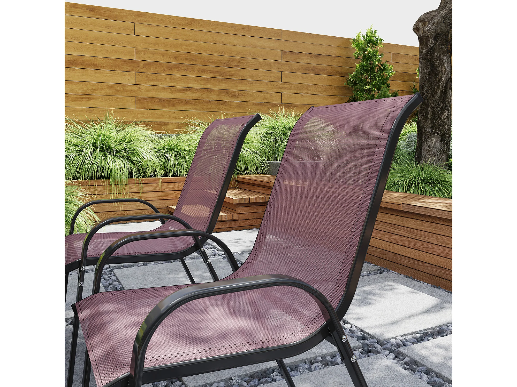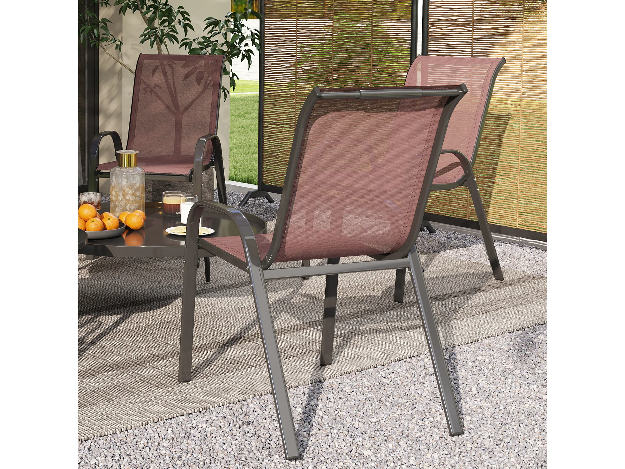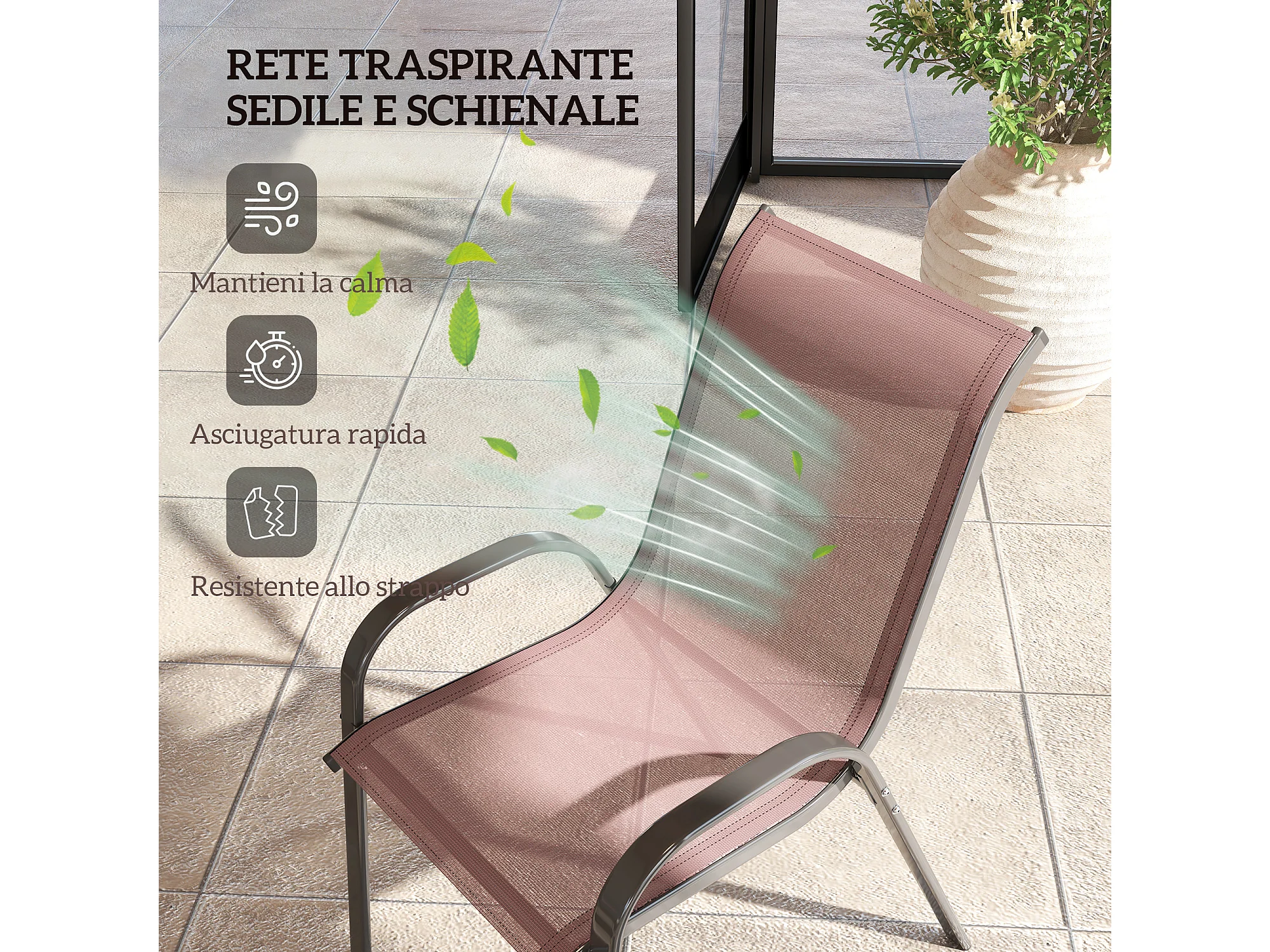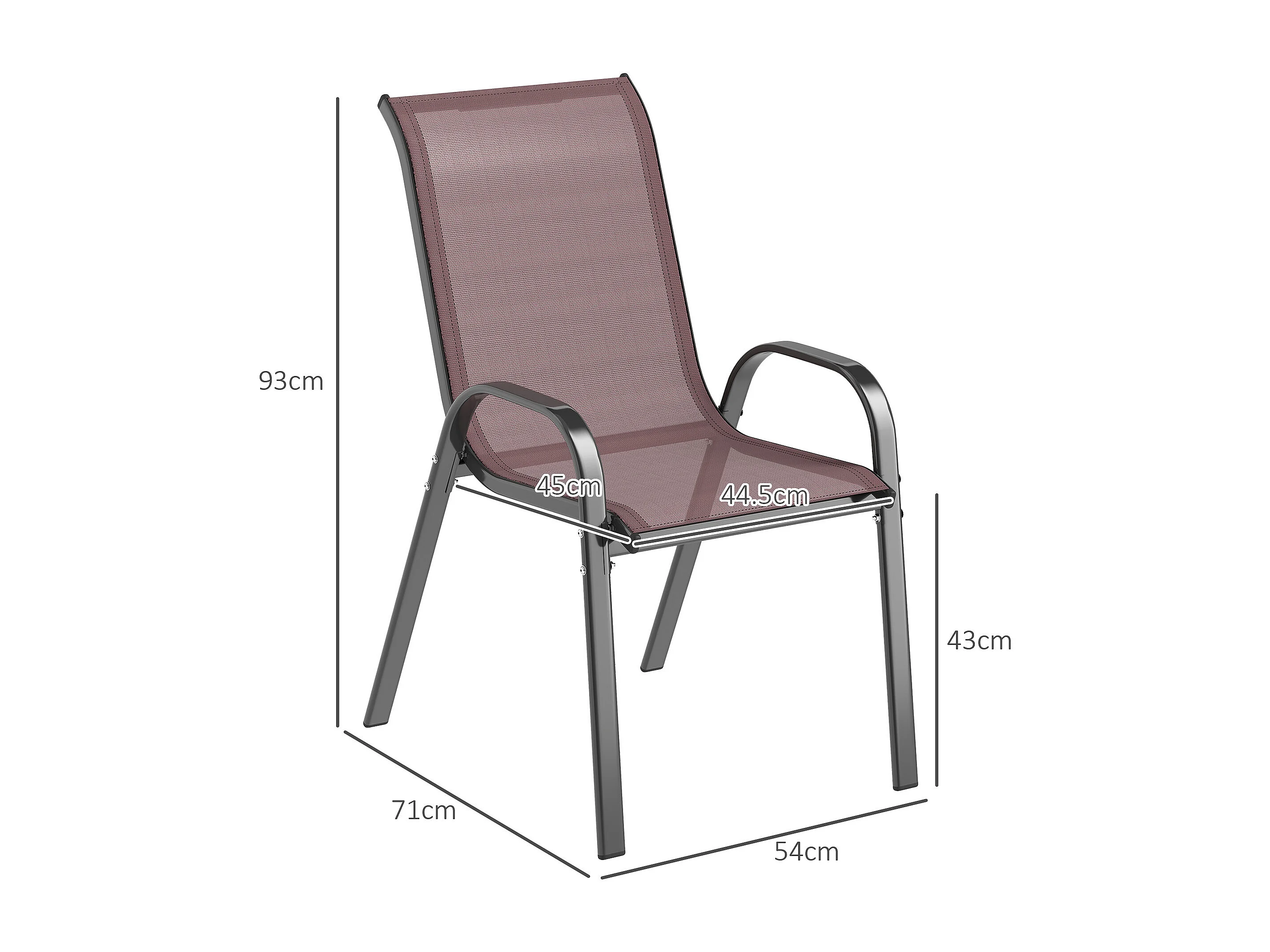 Set 4 sedie da giardino impilabili e traspiranti 54x71x93 cm marrone