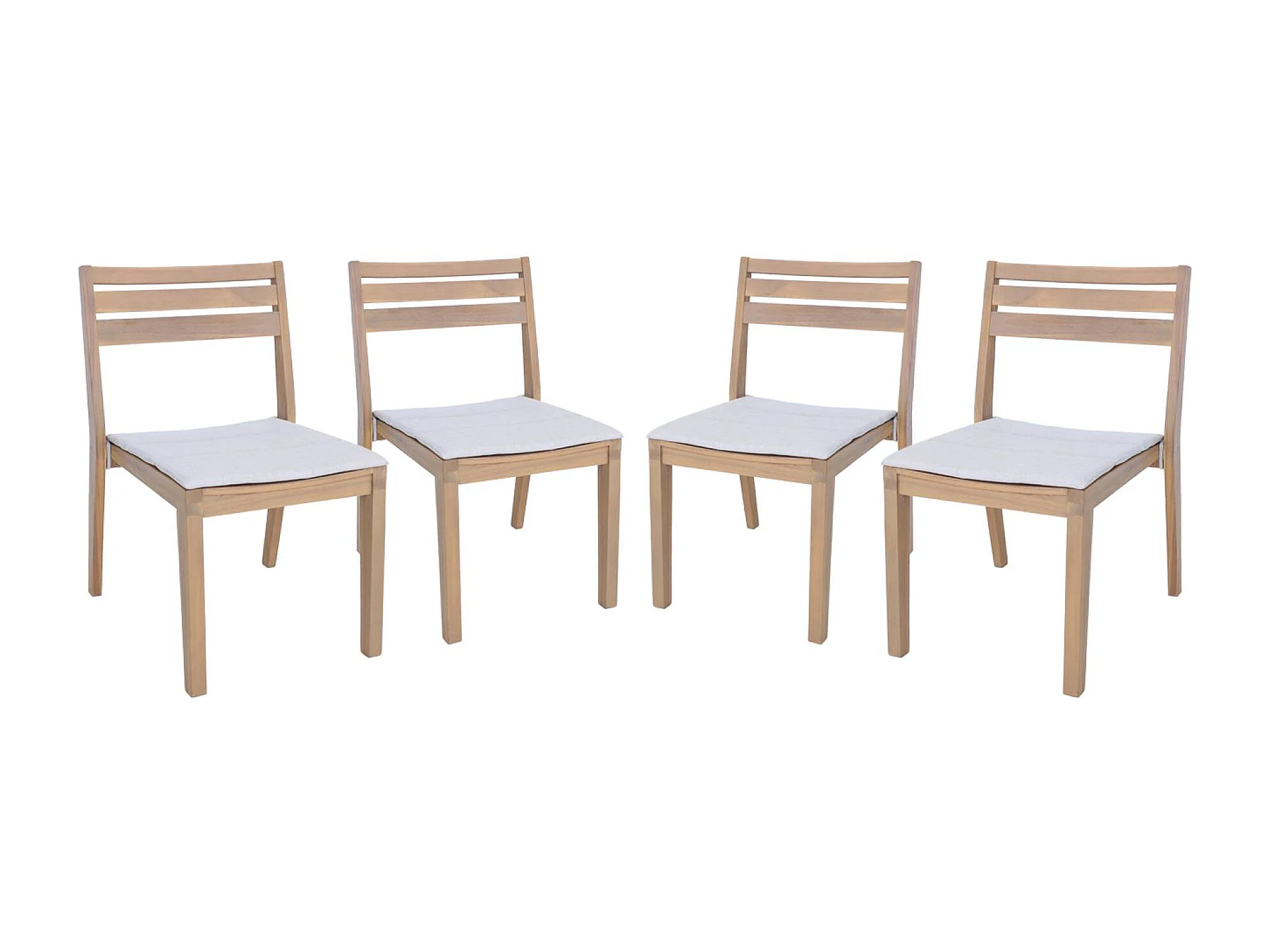 Set 4 sedie da giardino in legno di acacia con cuscino, beige