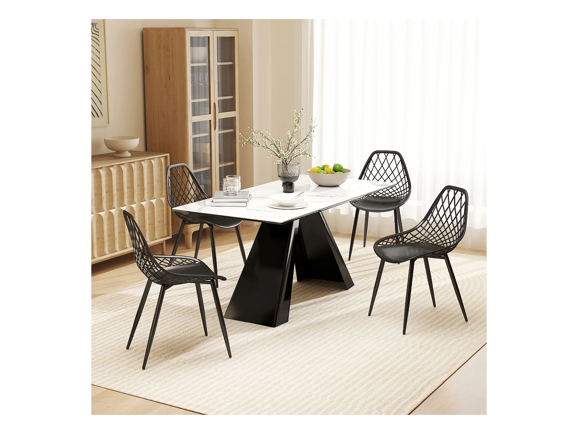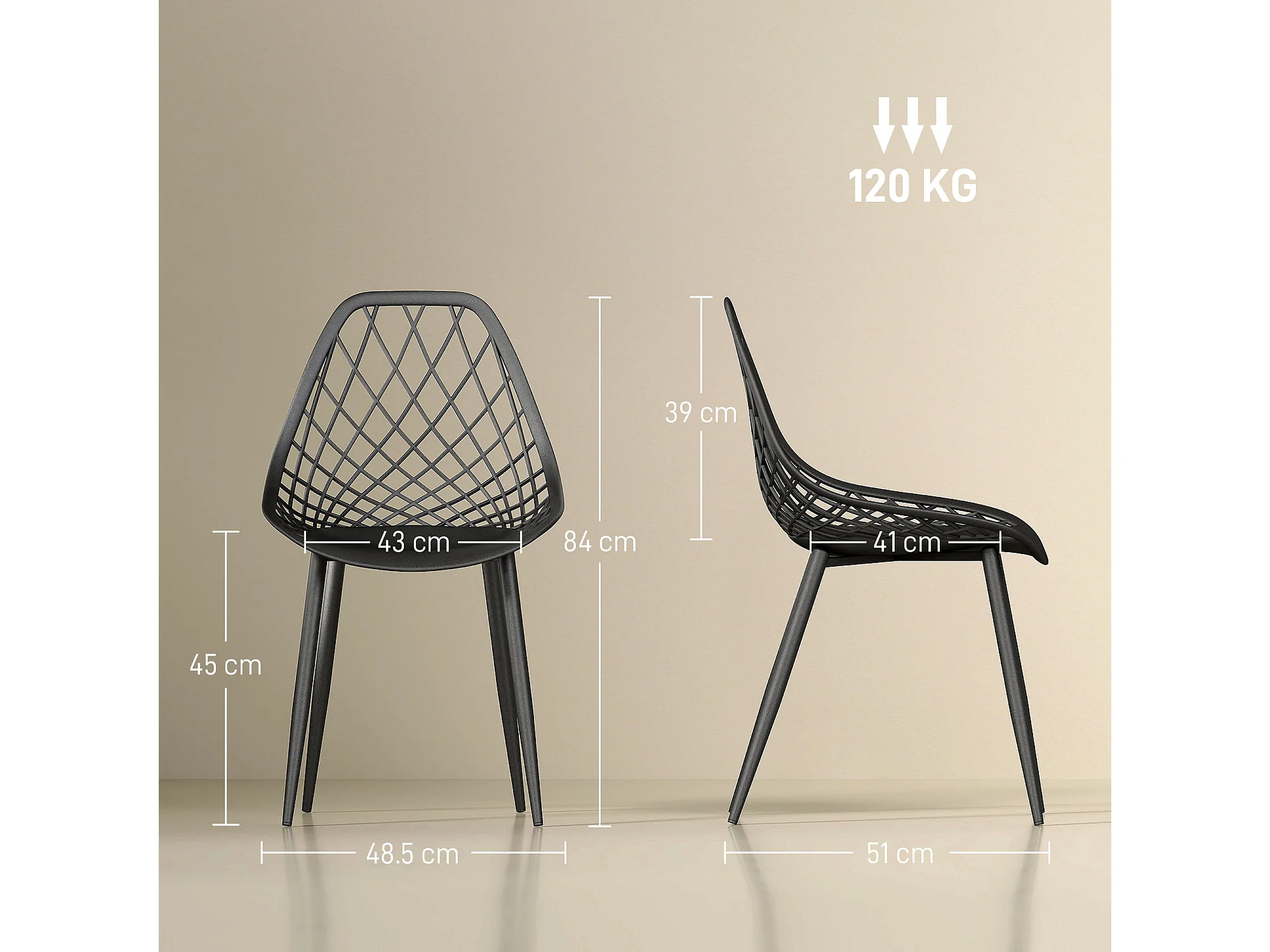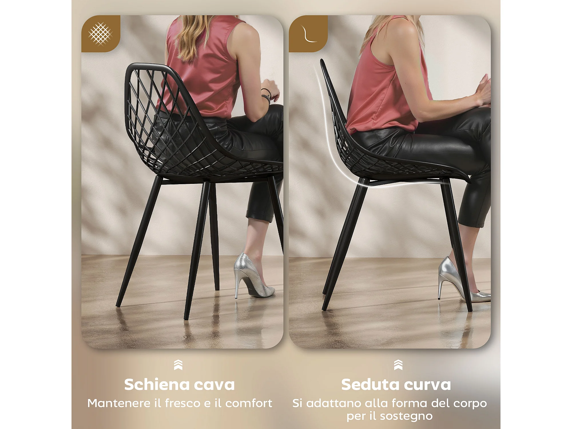 Set 4 sedie da pranzo moderne in plastica e metallo nero