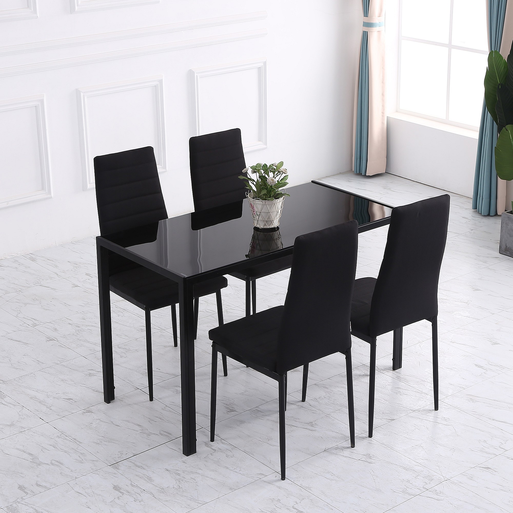 Set 4 Sedie Imbottite per Soggiorno in Metallo e Tessuto Nero