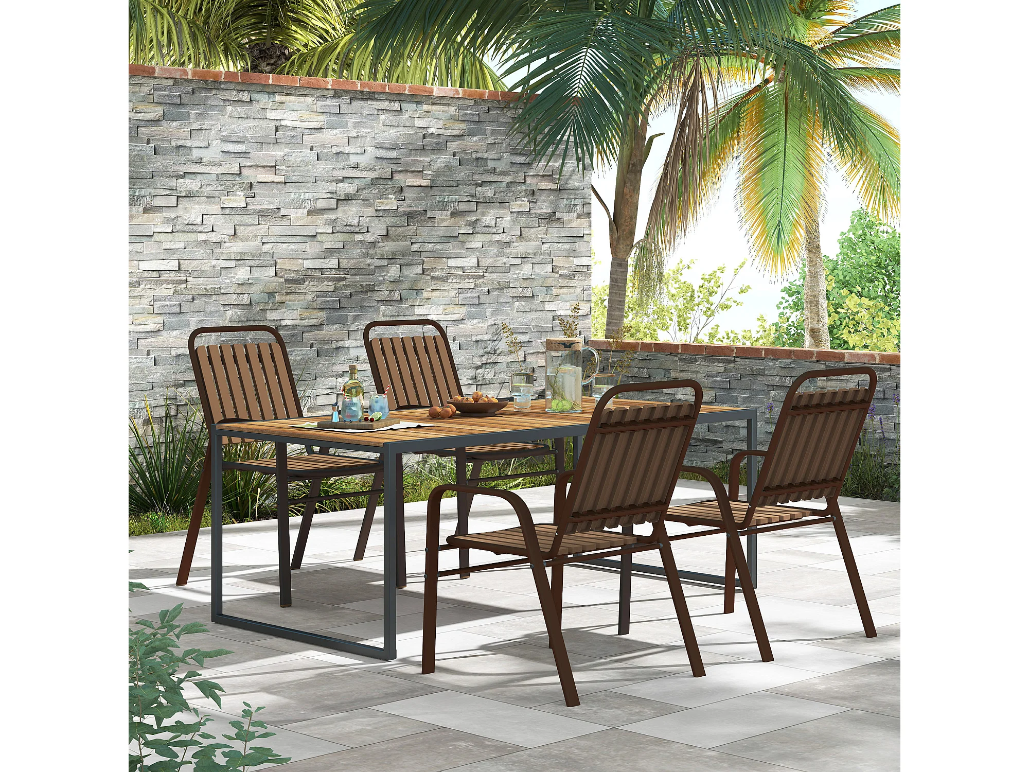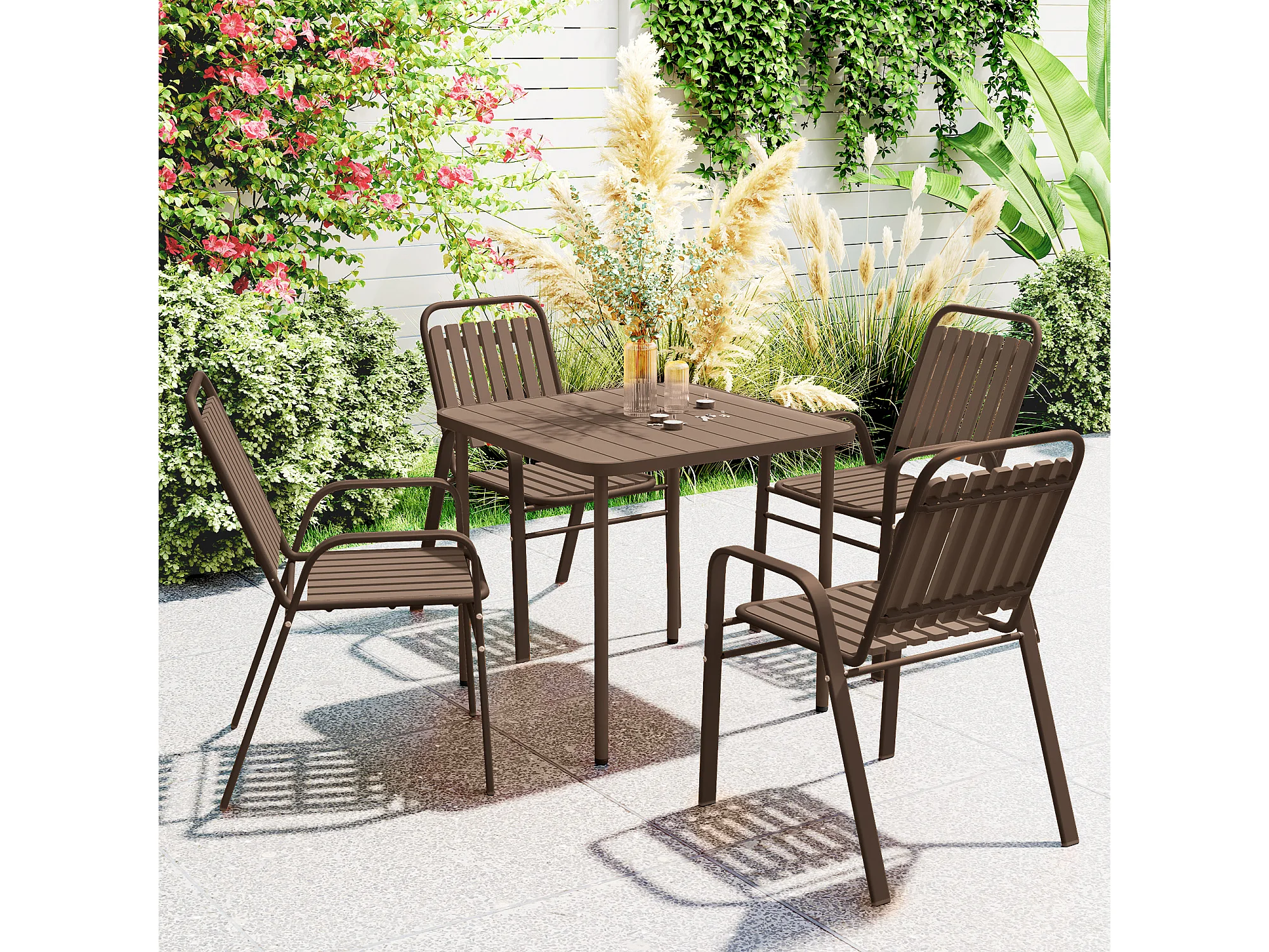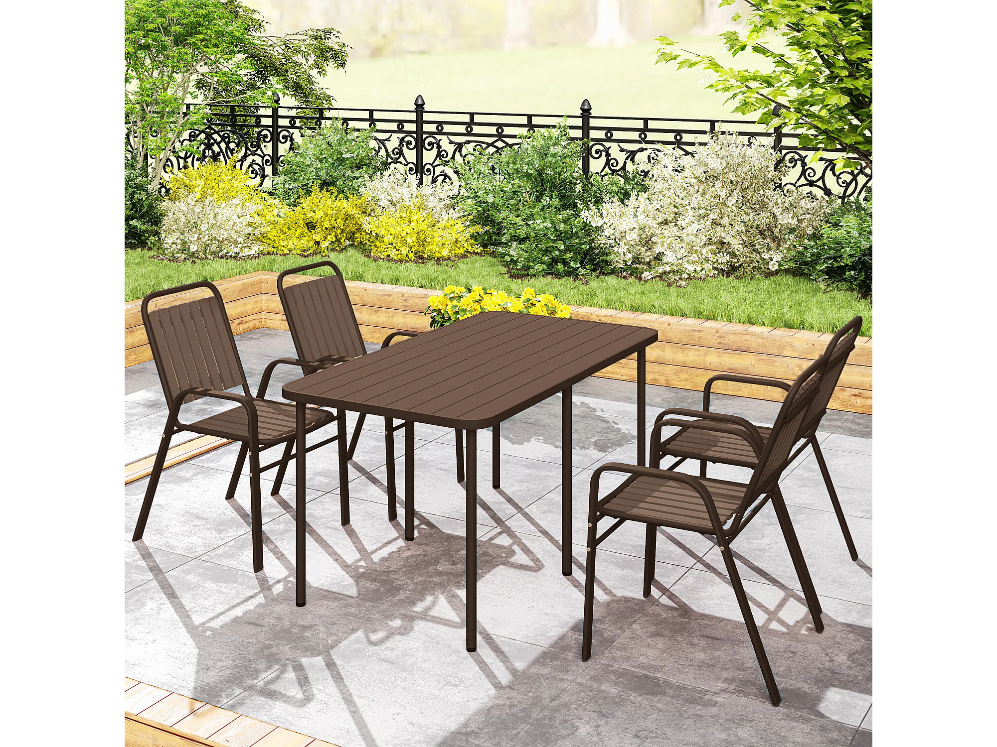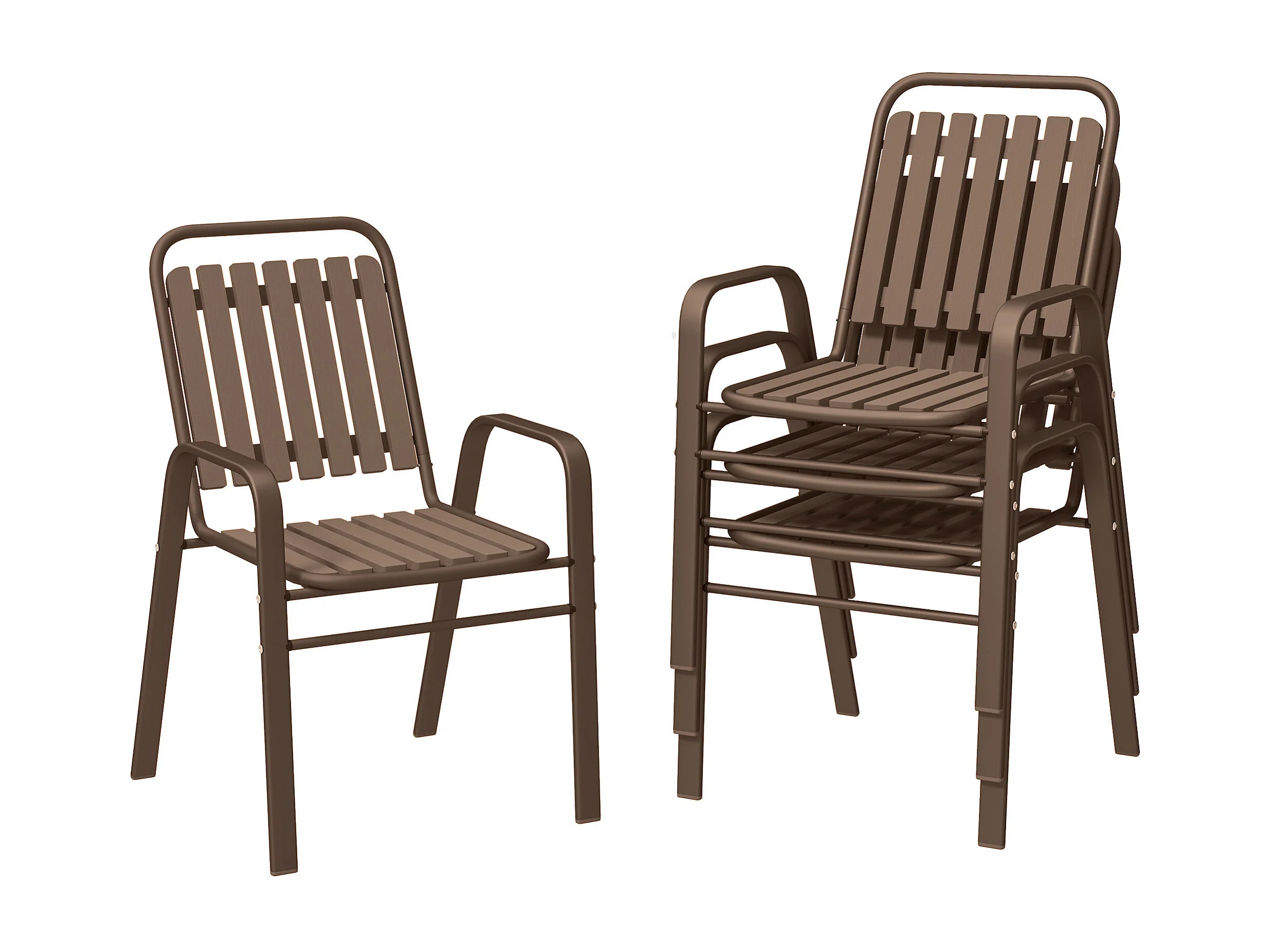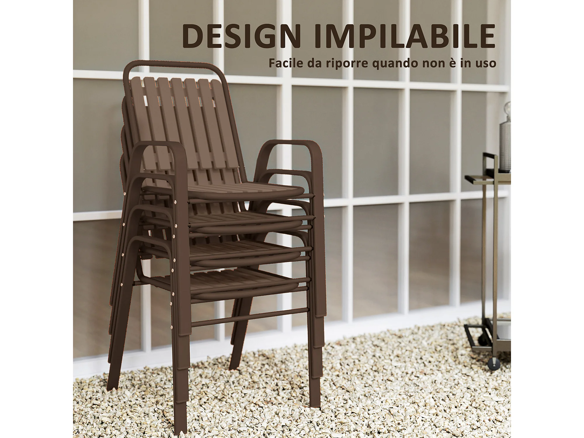Set 4 sedie per esterno impilabili con braccioli marrone scuro