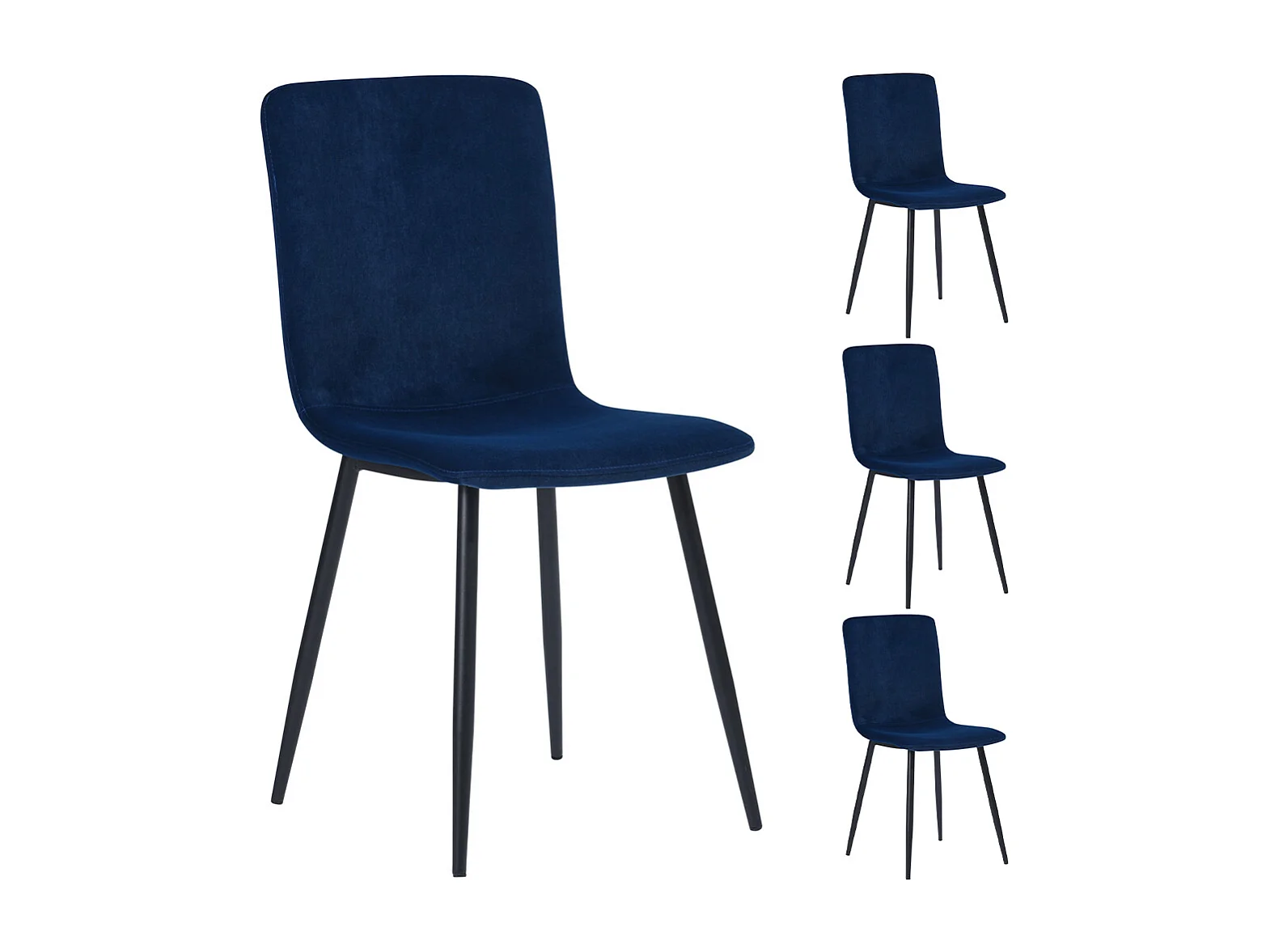 Set 4 Sedie per Sala da Pranzo in Velluto Blu con Gambe Nere Seduta Ergonomica