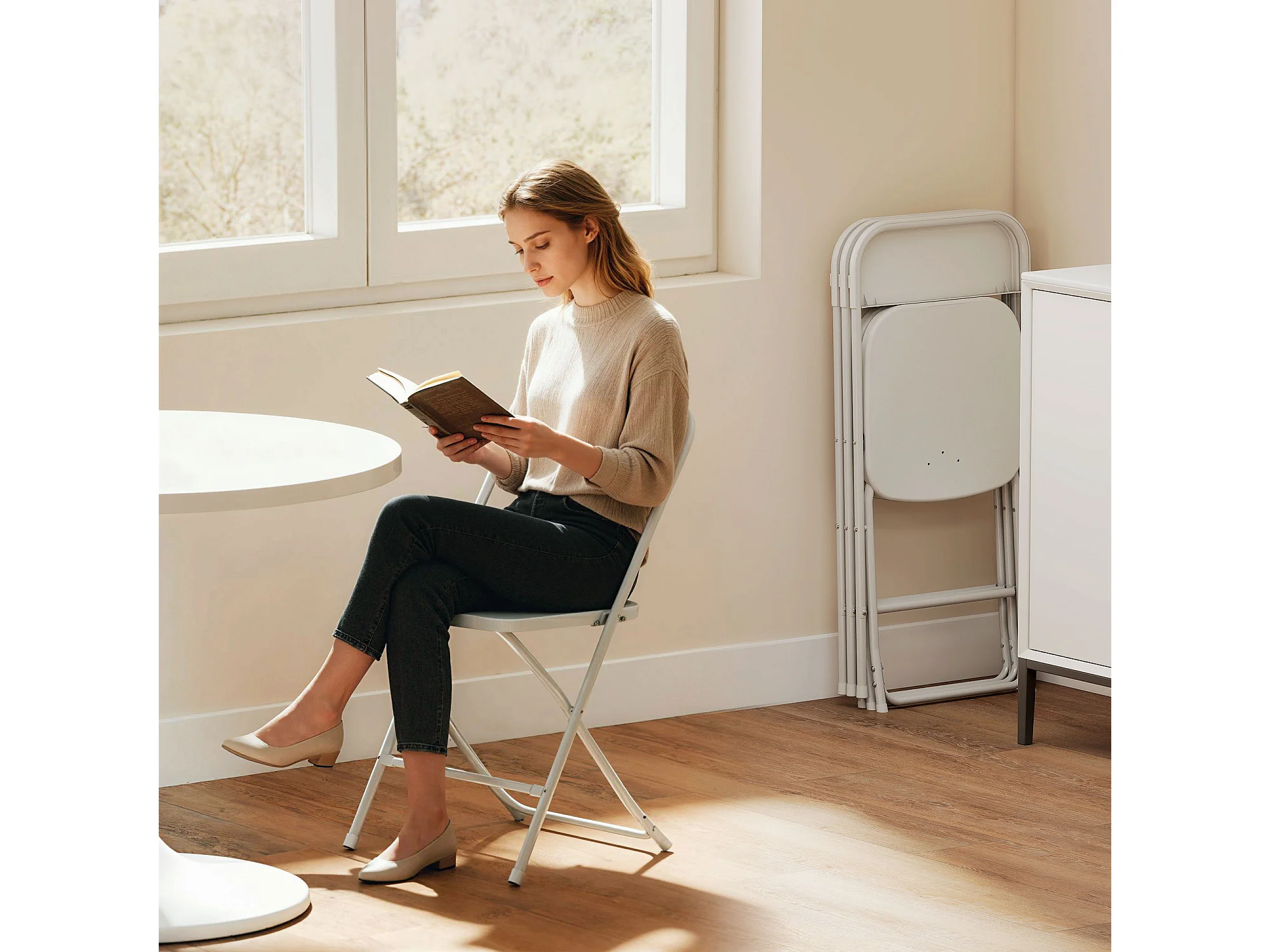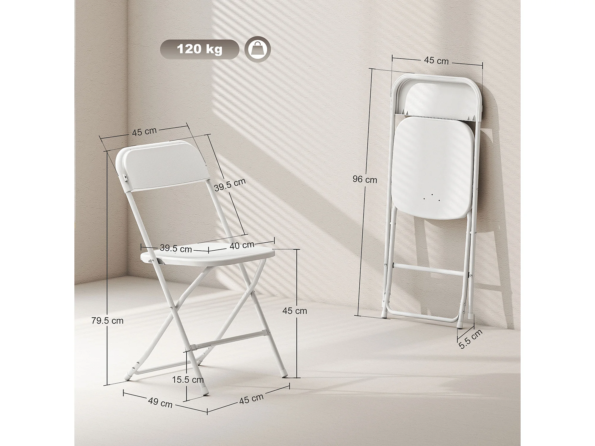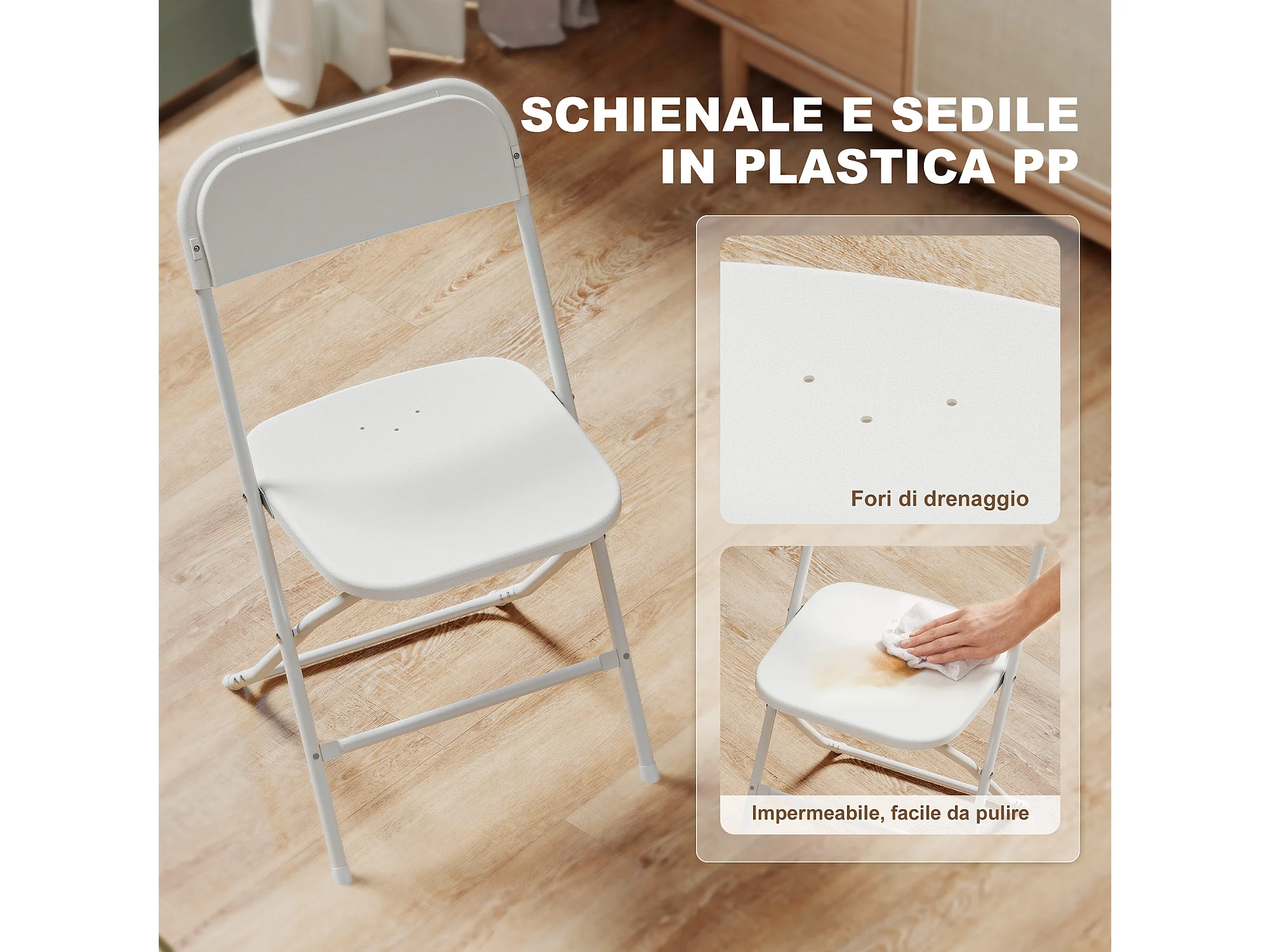 Set 4 sedie pieghevoli con fori di drenaggio 45x49x79.5 cm bianco