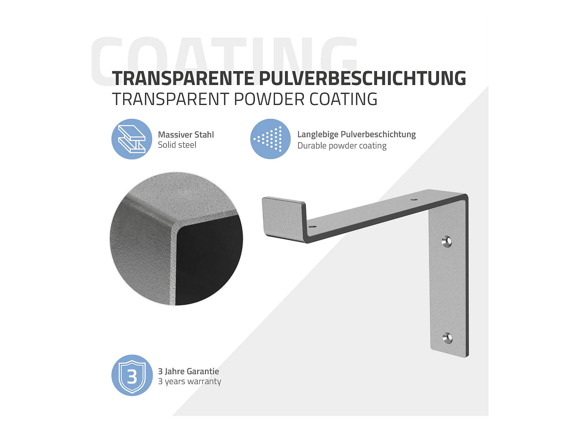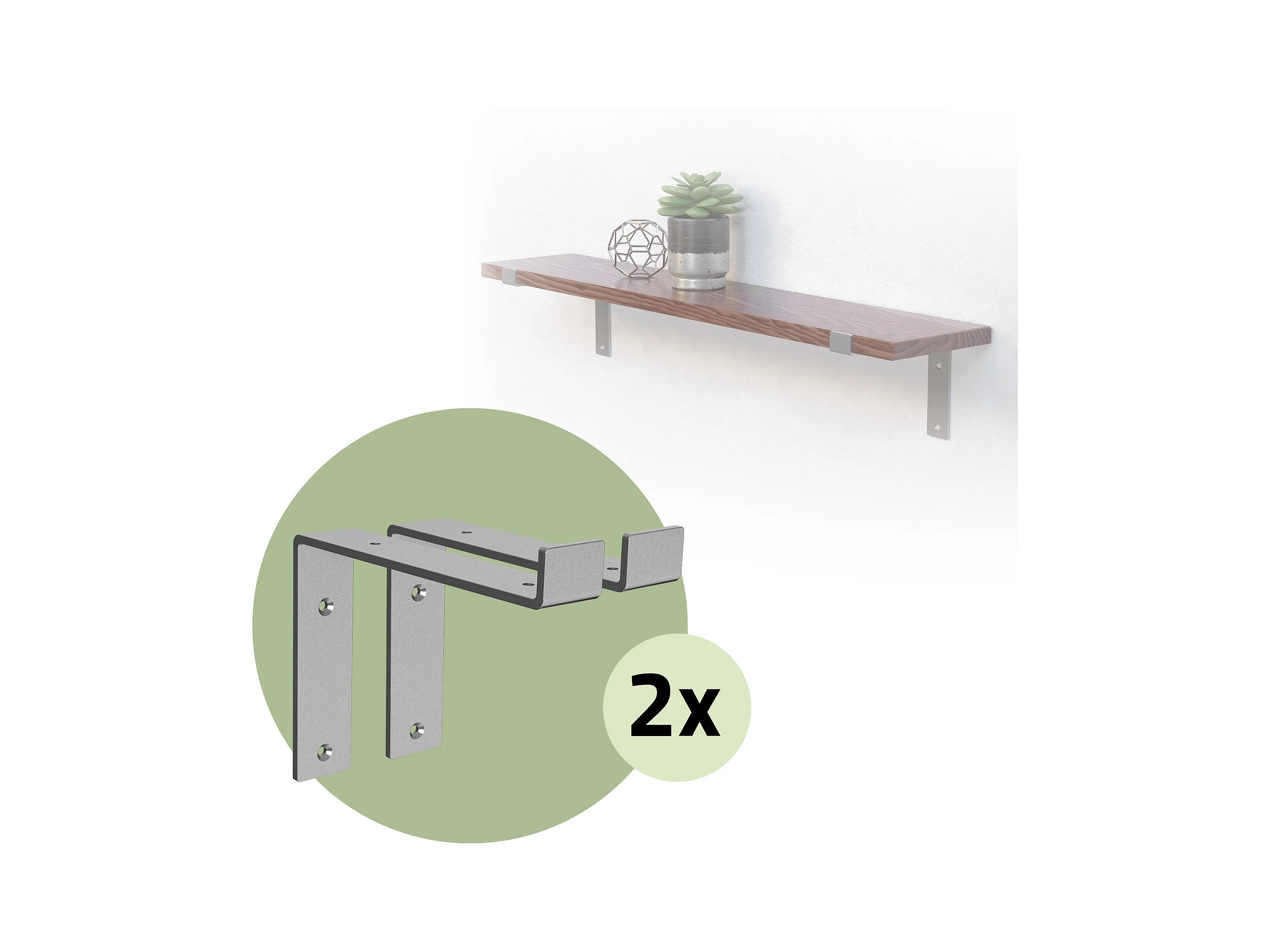 Set 4 supporti per scaffale staffe per ripiano mensola metallo grigio 200x145 mm