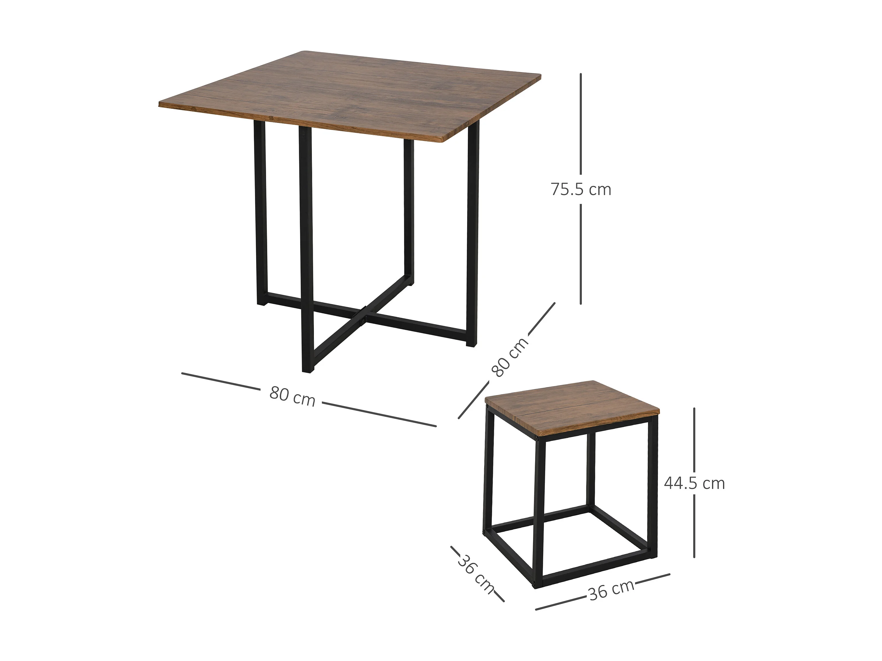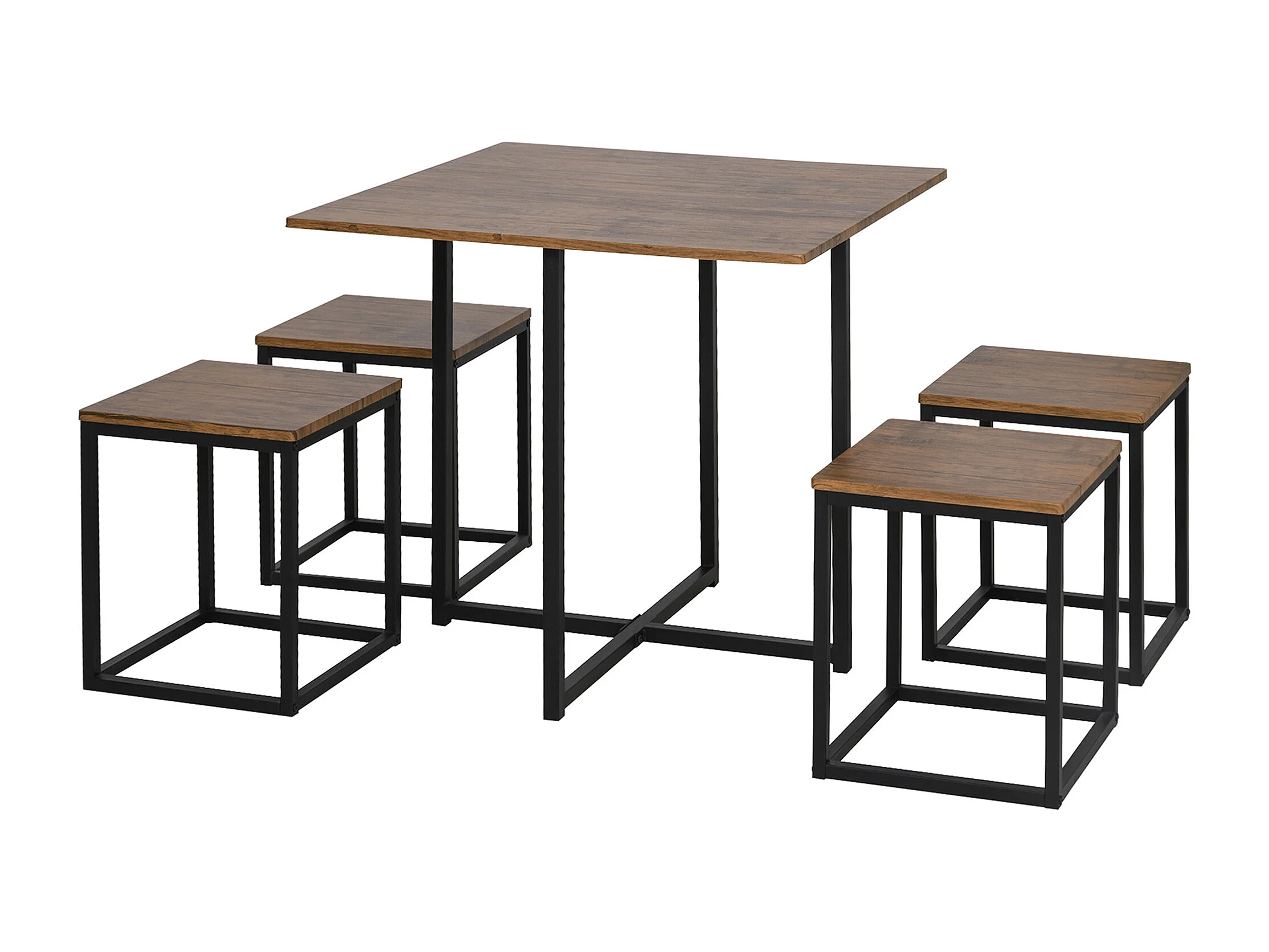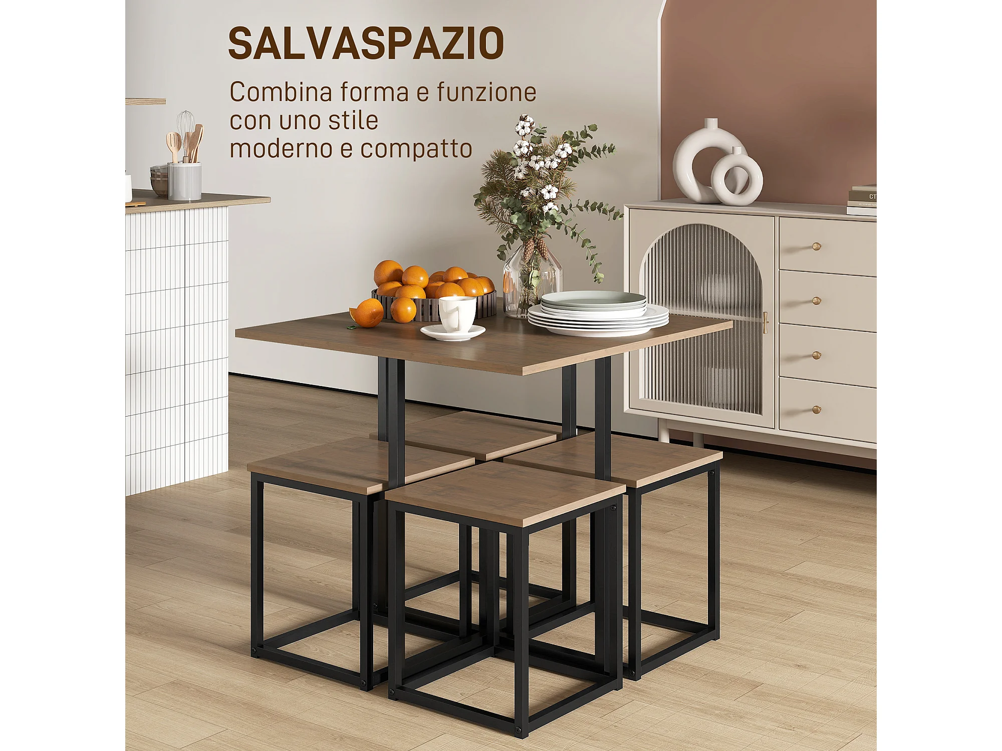 Set 5 pezzi tavolo con sgabelli da pranzo nero e color legno