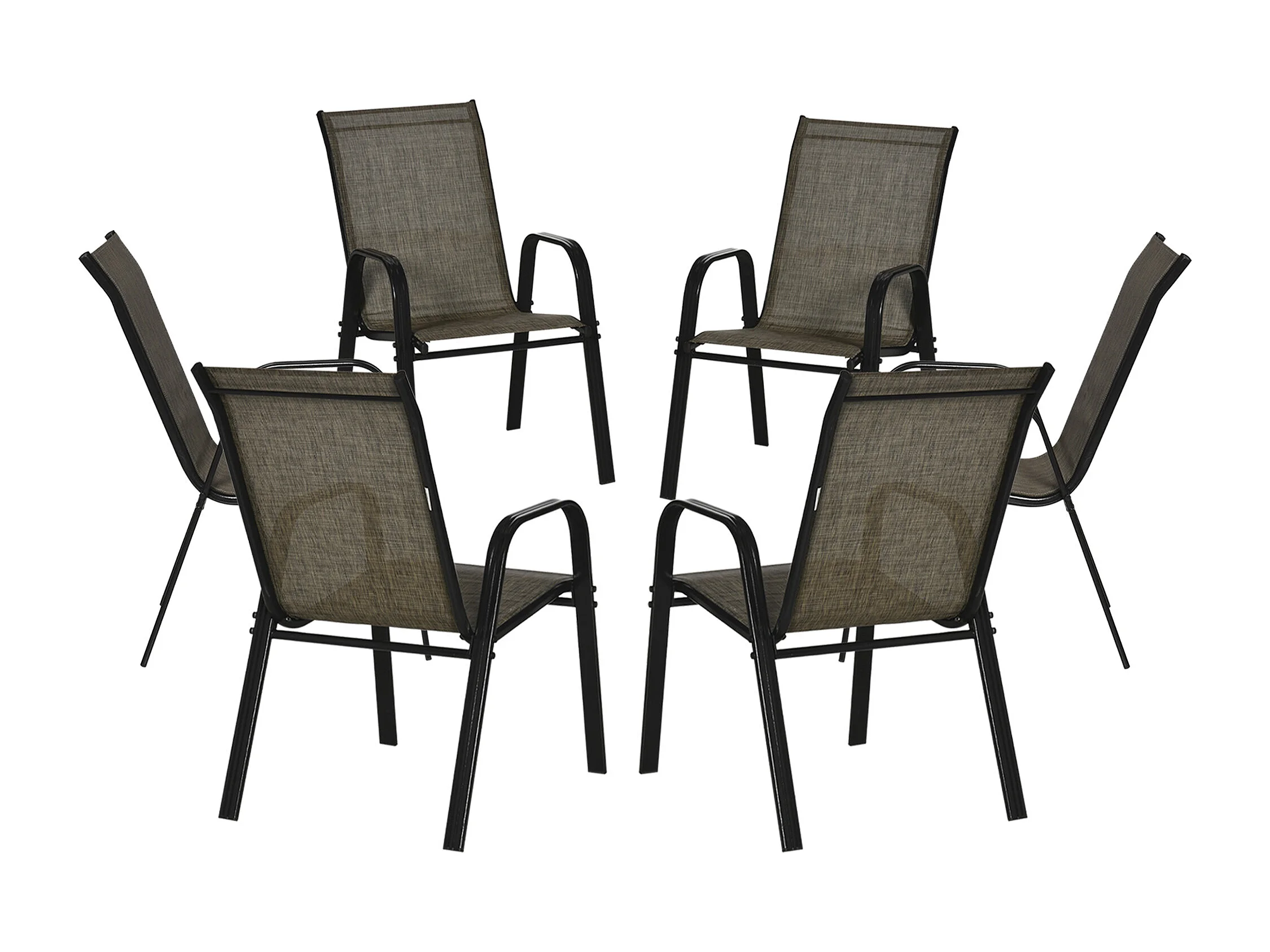 Set 6 pz sedie da giardino impilabili con braccioli marrone